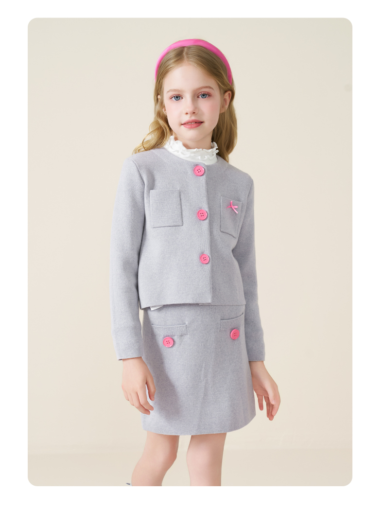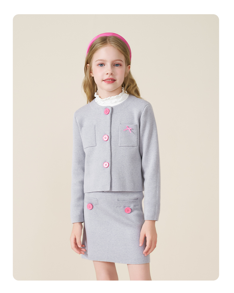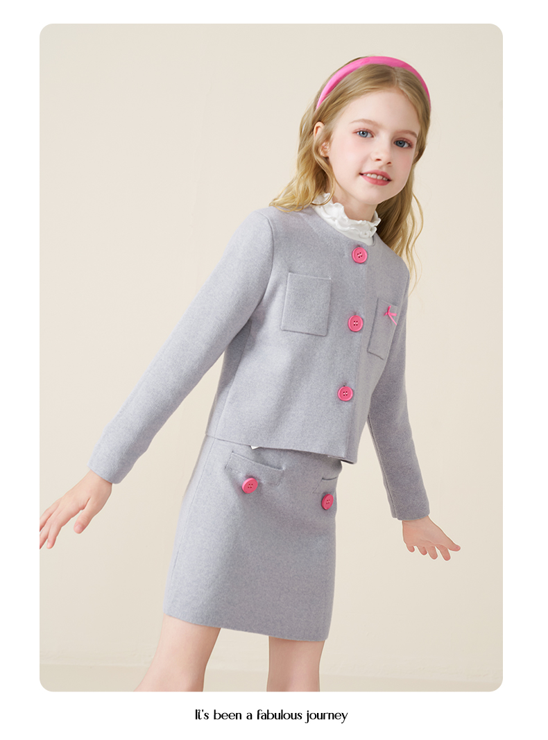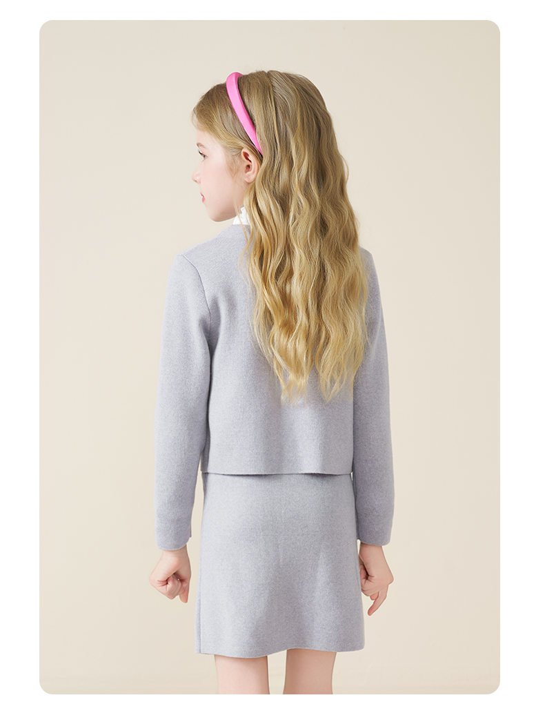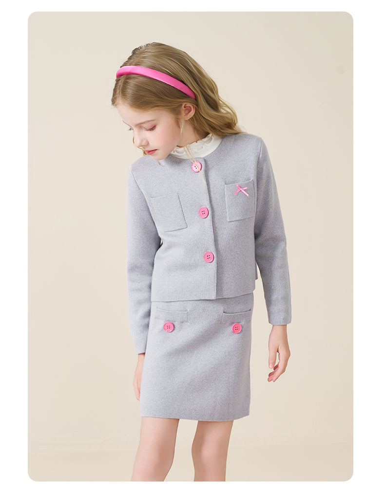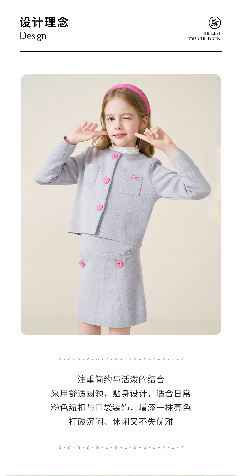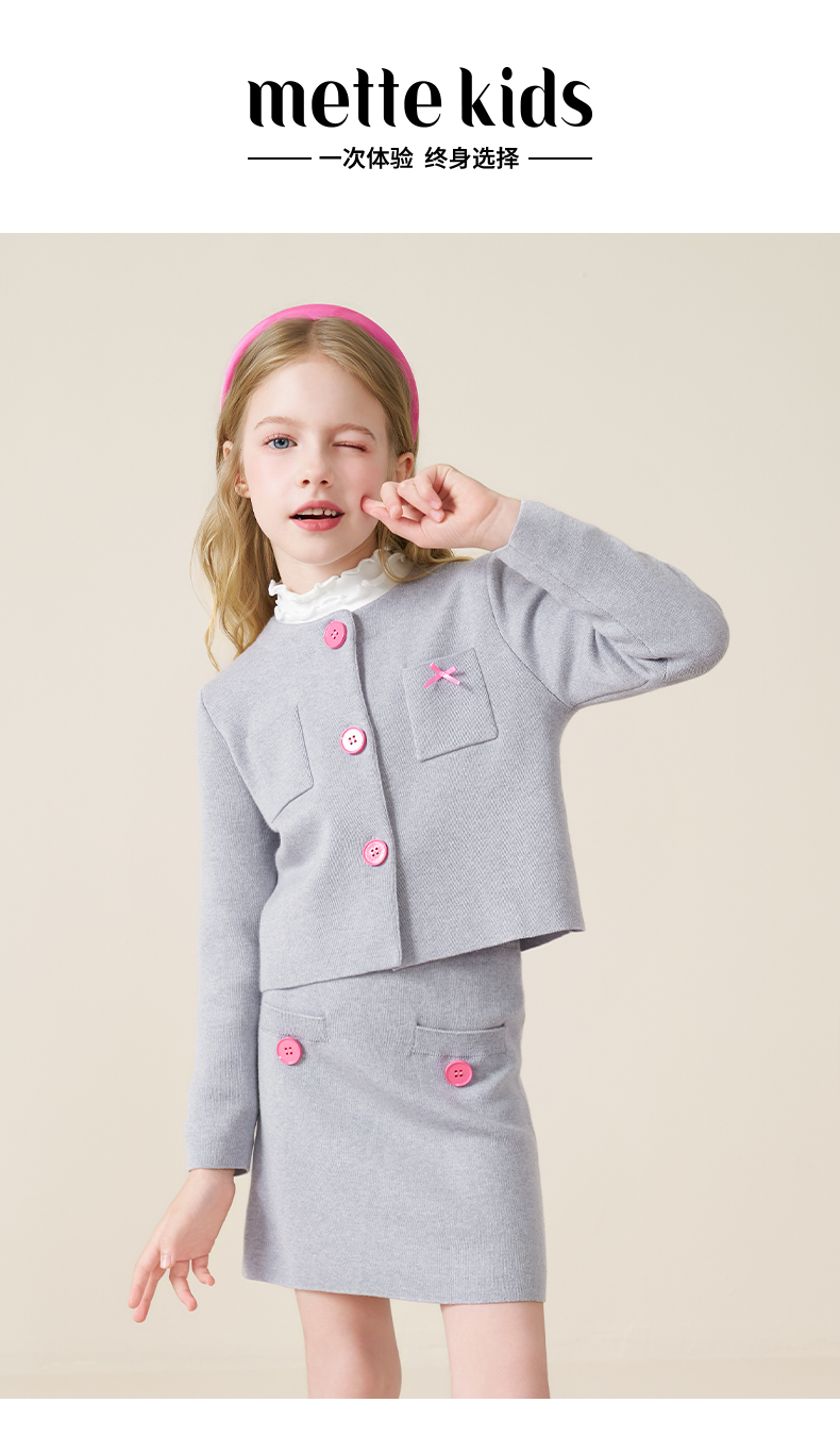 mettekids儿童100%羊毛衫2025秋冬小香风针织开衫女童短裙套装