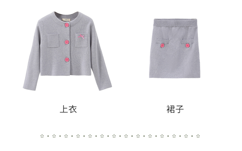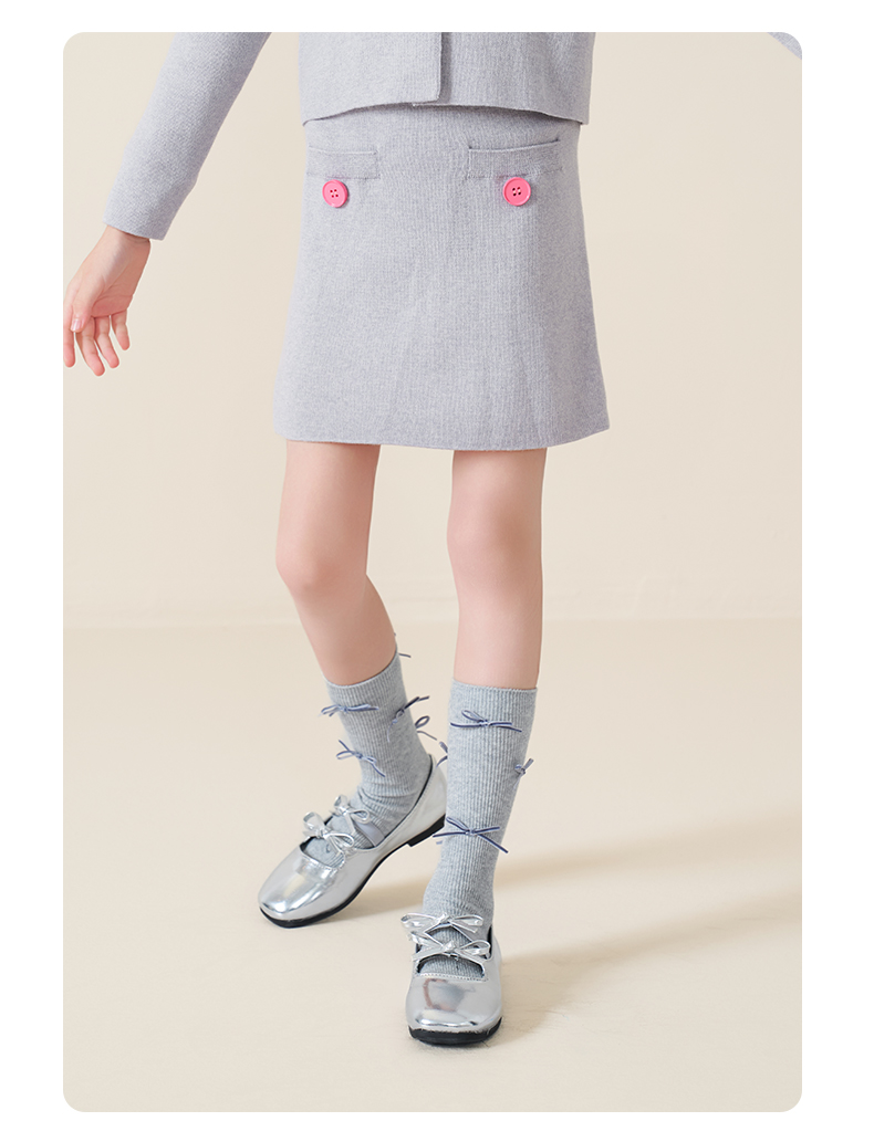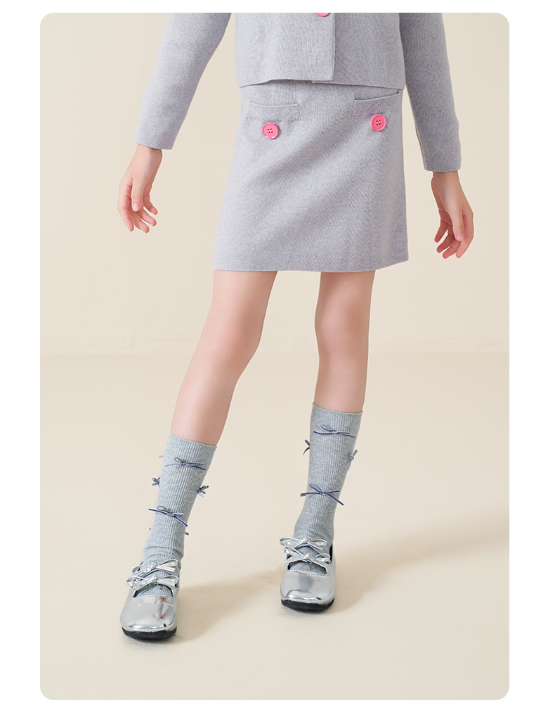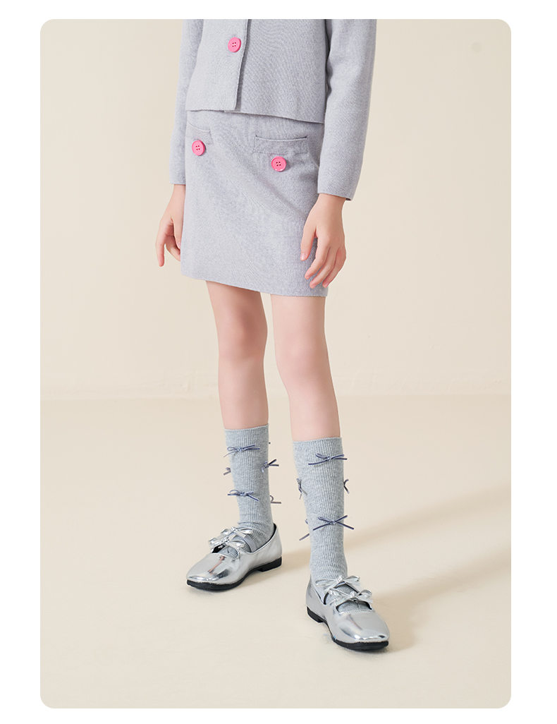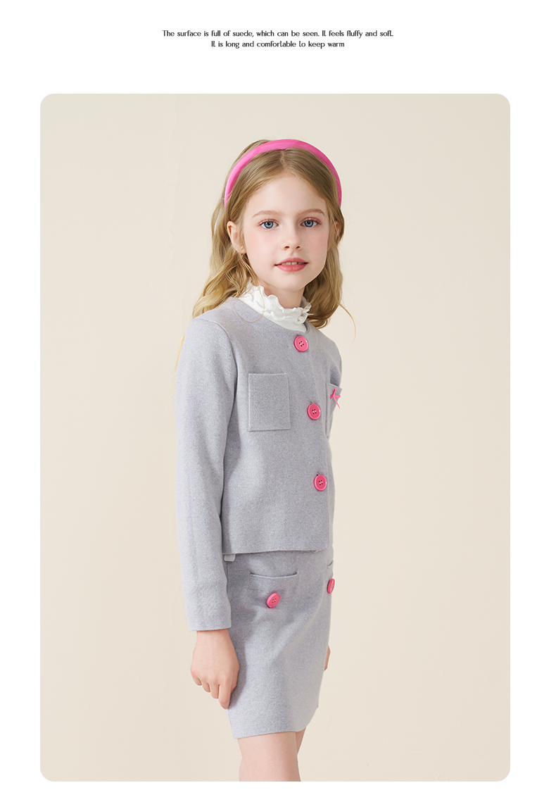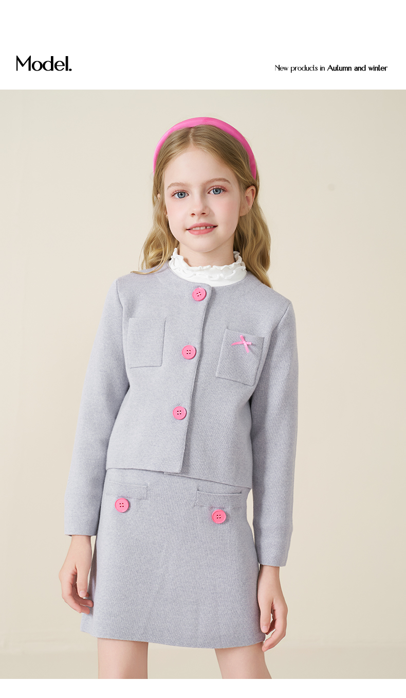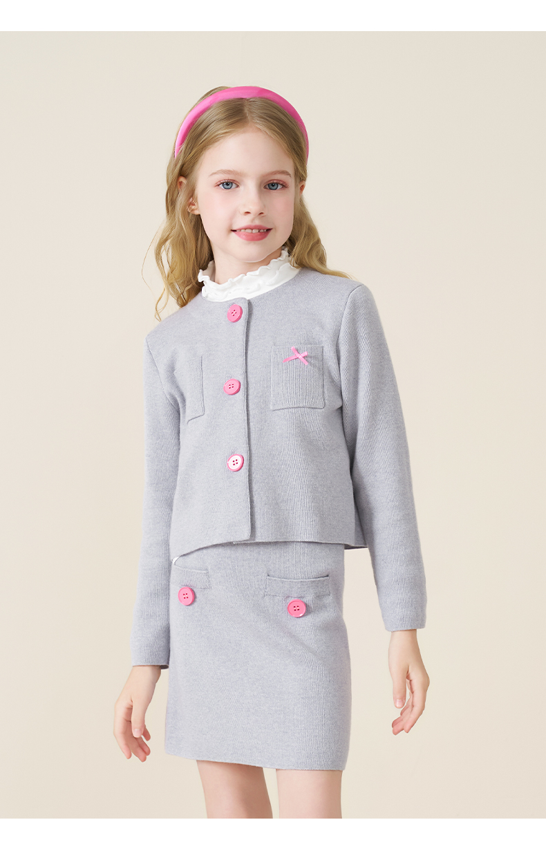 mettekids儿童100%羊毛衫2025秋冬小香风针织开衫女童短裙套装