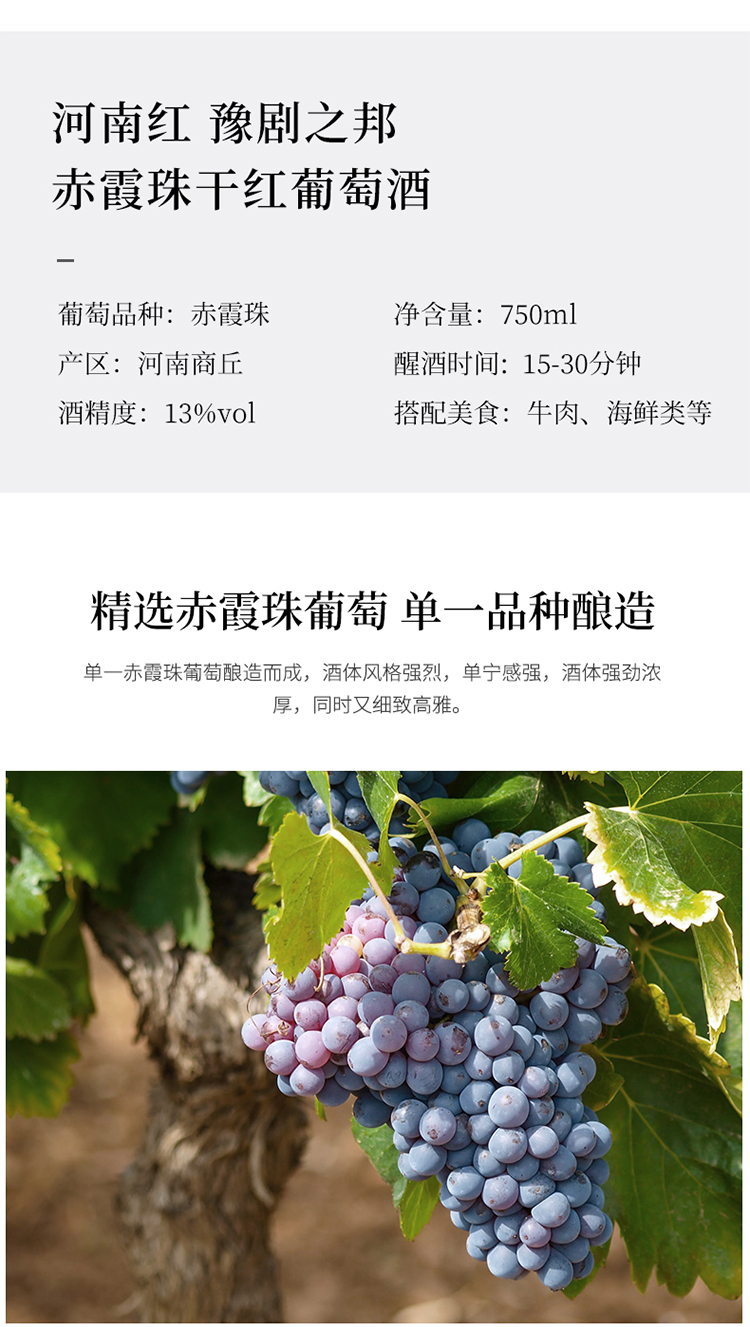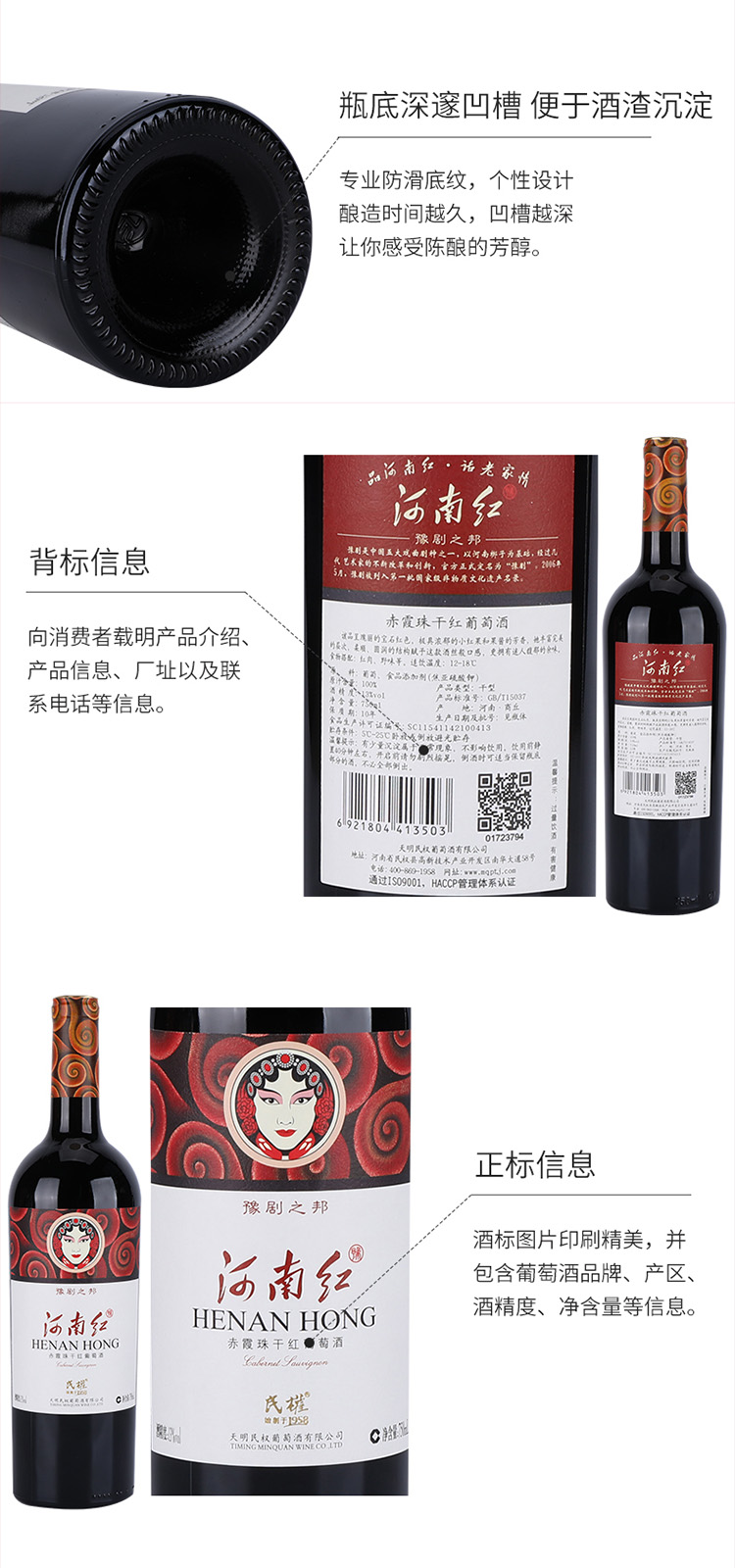 民权河南红·豫剧之邦赤霞珠干红 13度 750ml 干红葡萄酒【本商城规格1件即为1瓶】
