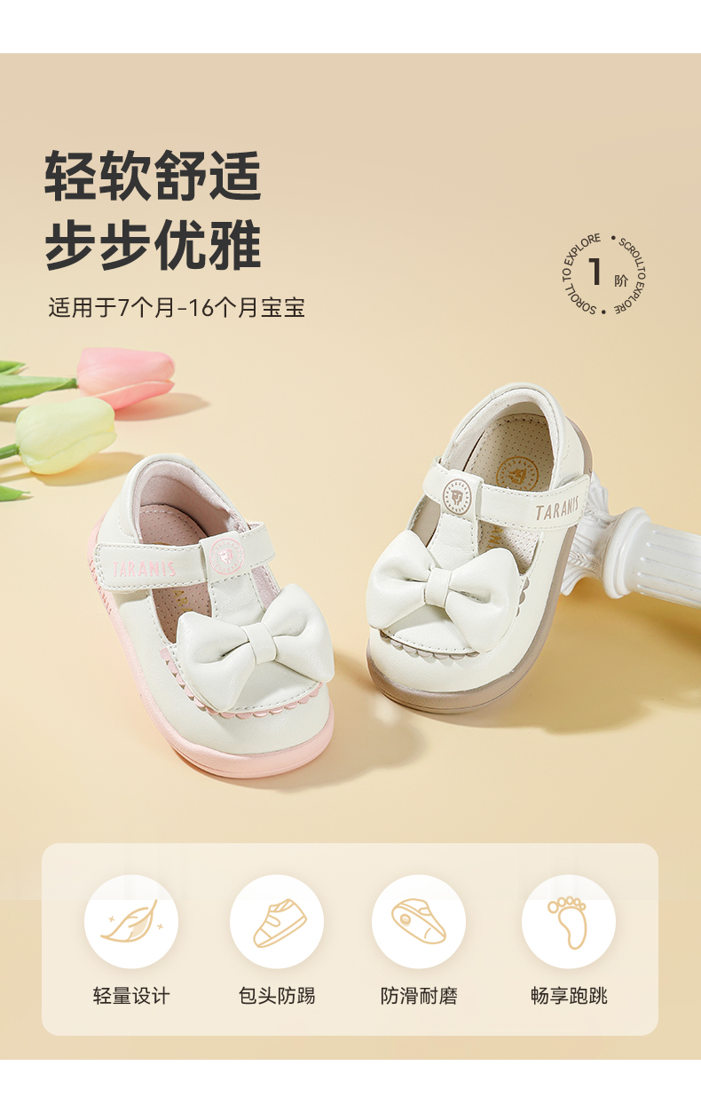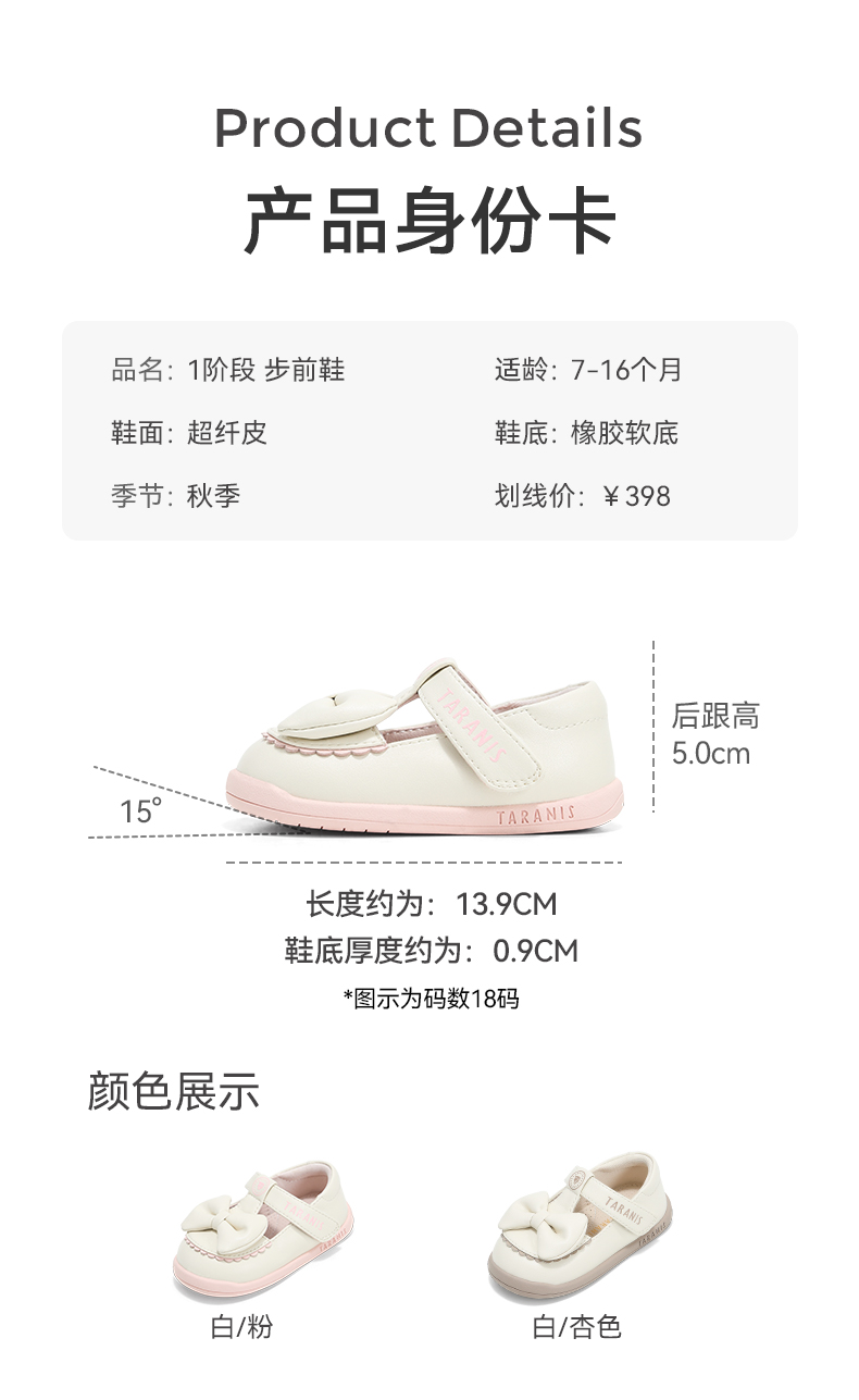 泰兰尼斯童鞋秋季新款步前鞋女童宝宝鞋婴幼儿赤足鞋单鞋公主皮鞋 T03B5C7978