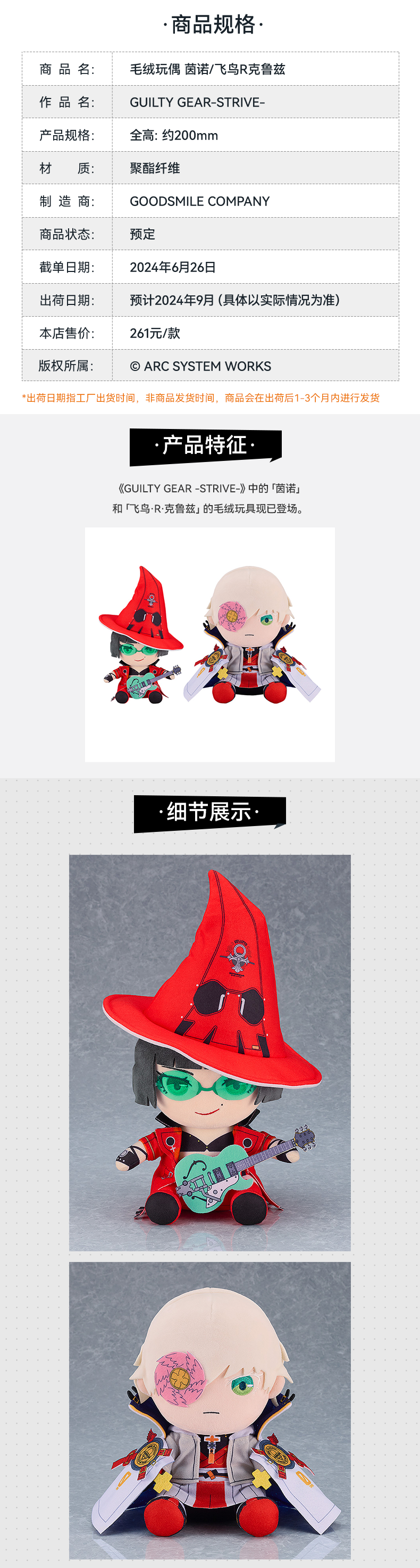 【GSC现货】毛绒玩偶 茵诺 飞鸟R克鲁兹 GUILTY GEAR-STRIVE-