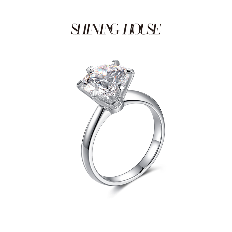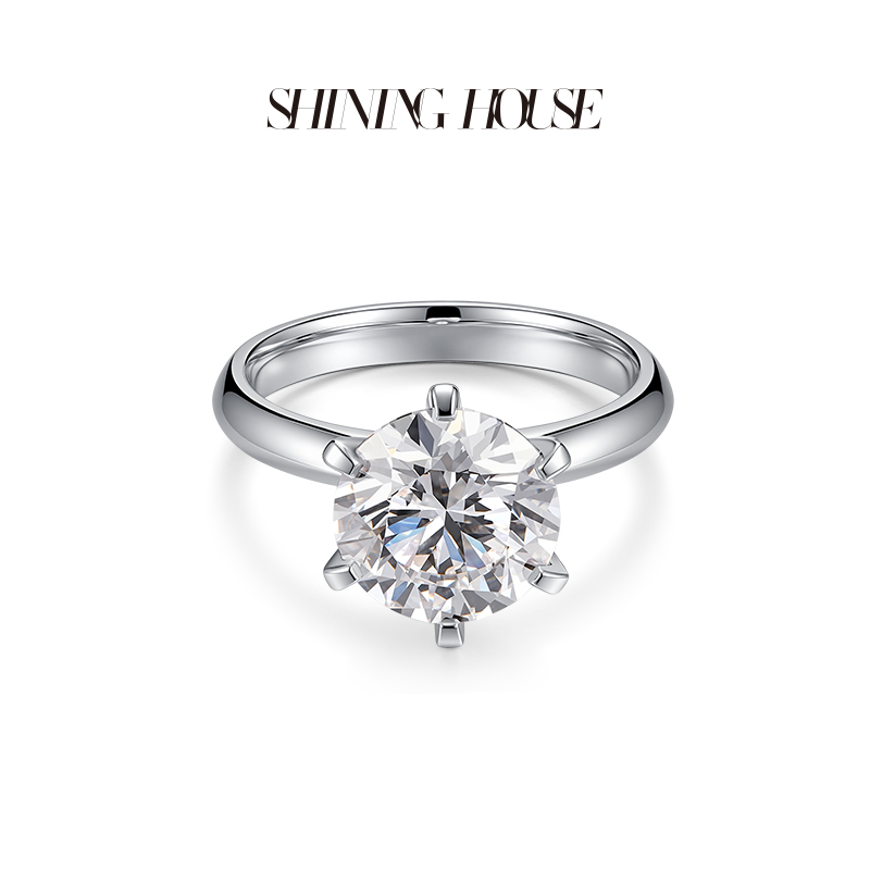 ShiningHouse[培育] 18k金钻石戒指 圆钻形3克拉钻人工真钻人造钻石K金戒指简约六爪钻石戒指悦己送礼臻选【此商品不支持7天无理由退货退款】