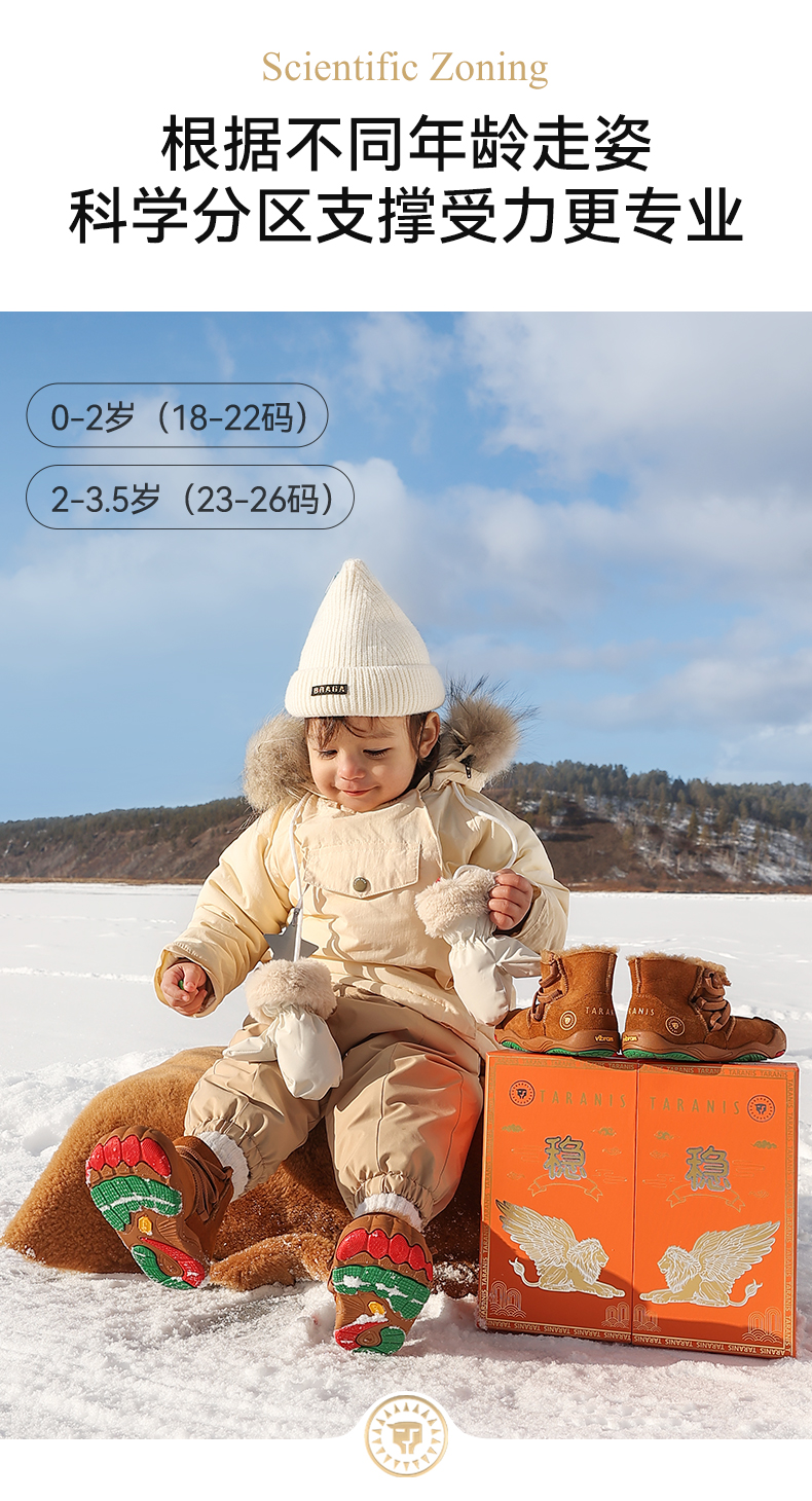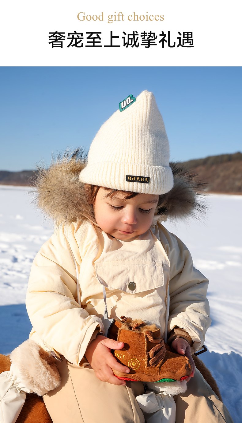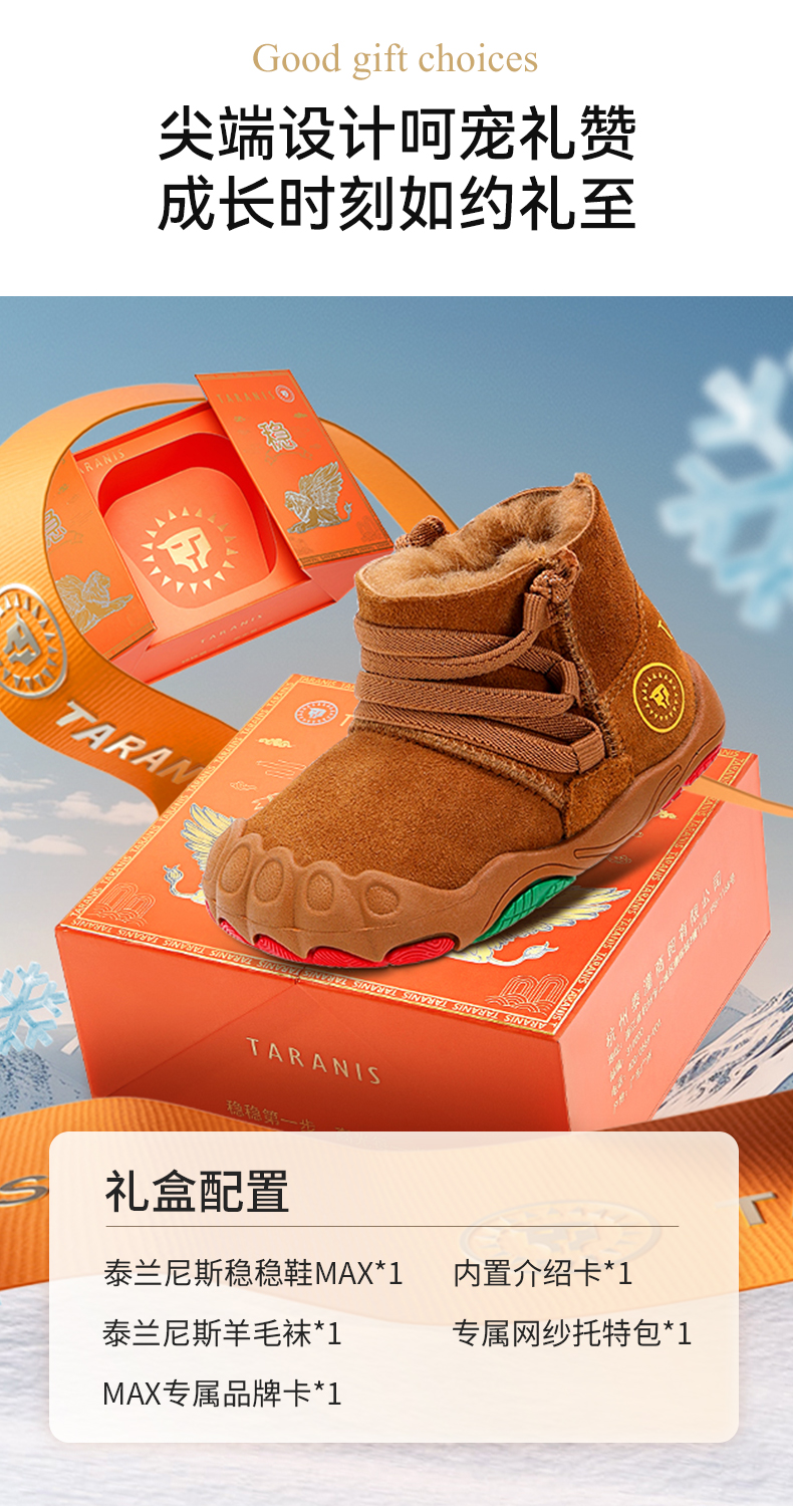 泰兰尼斯稳稳鞋MAX冬季新款童靴羊皮毛一体雪地靴真皮童鞋学步鞋 T26T4D6300