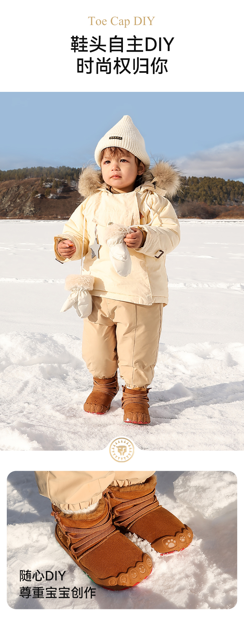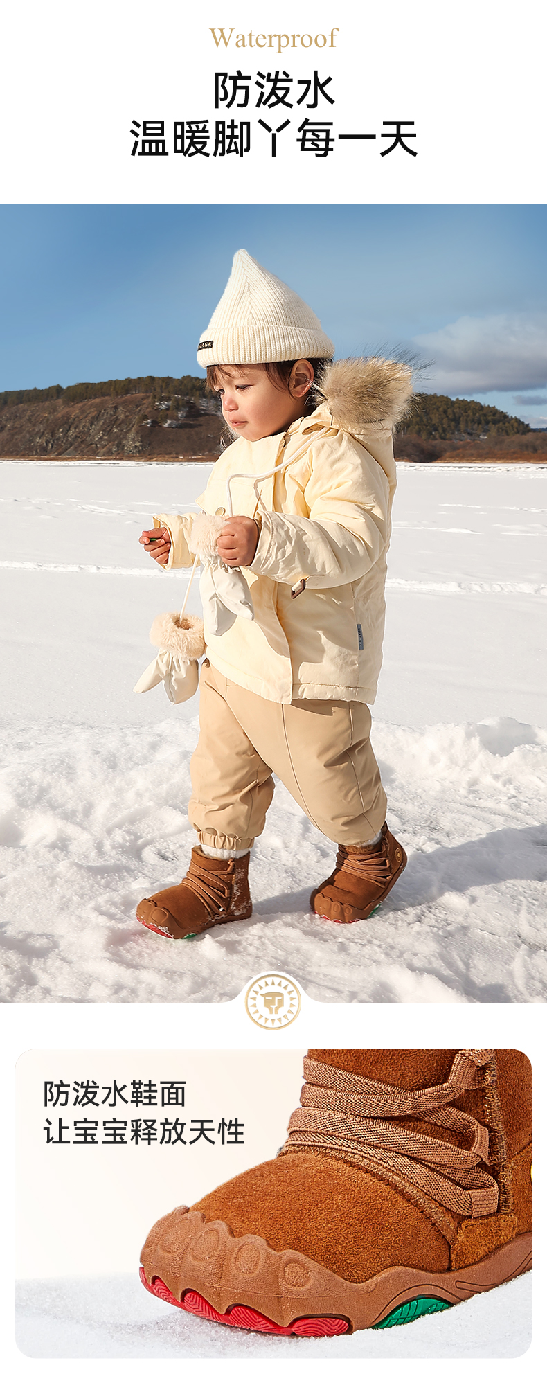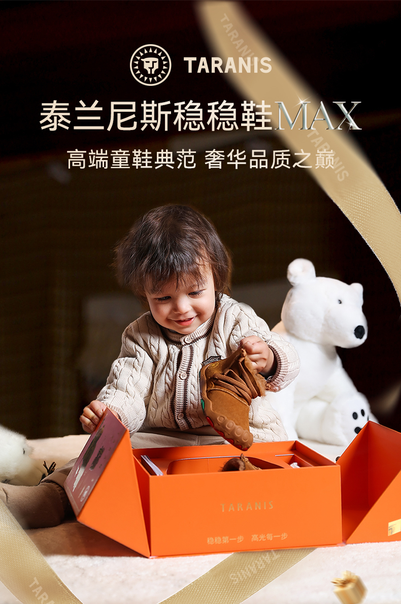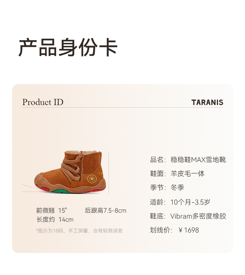 泰兰尼斯稳稳鞋MAX冬季新款童靴羊皮毛一体雪地靴真皮童鞋学步鞋 T26T4D6300