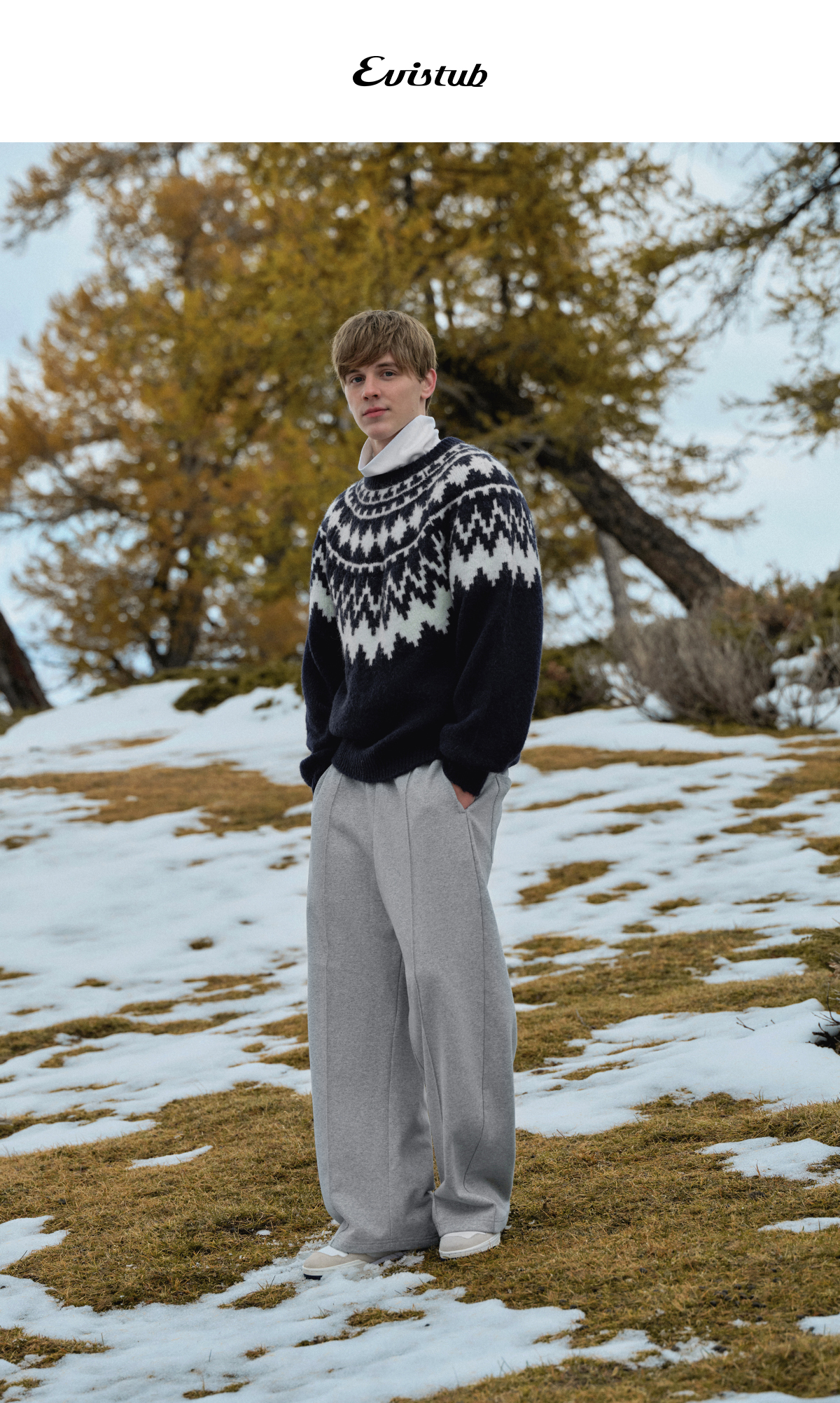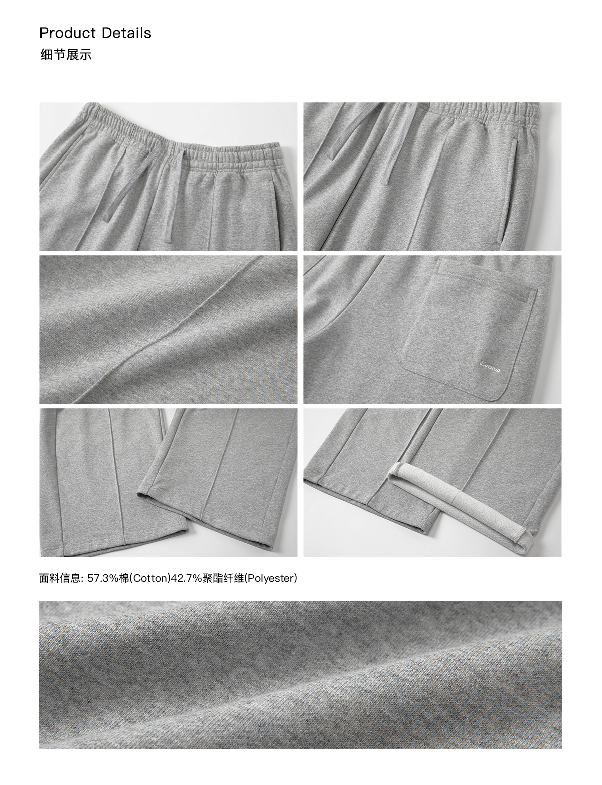 Evistub/E-4DCK811/重磅中缝阔腿弯刀休闲运动卫裤