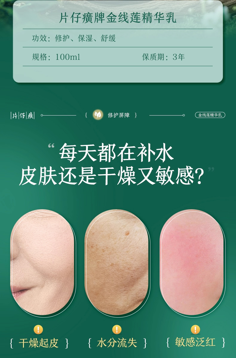 片仔癀牌金线莲屏障乳 28天安心舒缓 敏感泛红干燥晒后均合适 片仔癀牌金线莲精华乳100ml