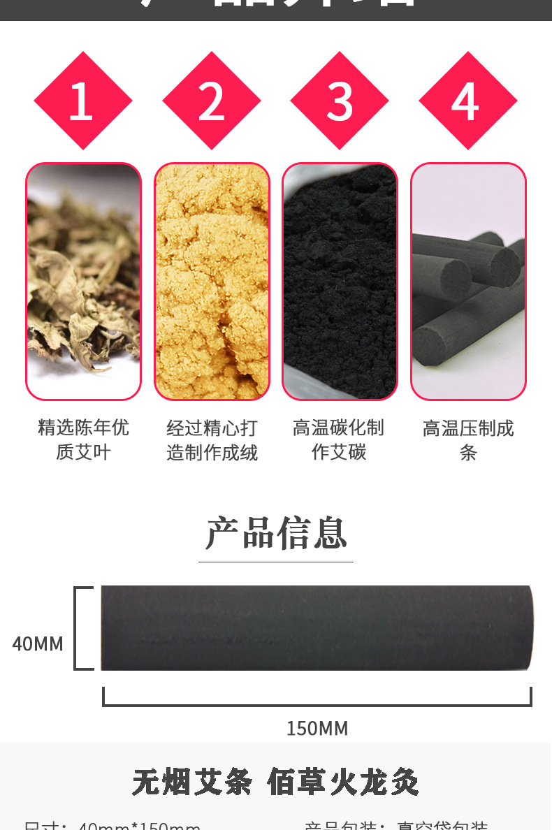 【佰草火龙灸】4cm无烟艾碳艾条5支装