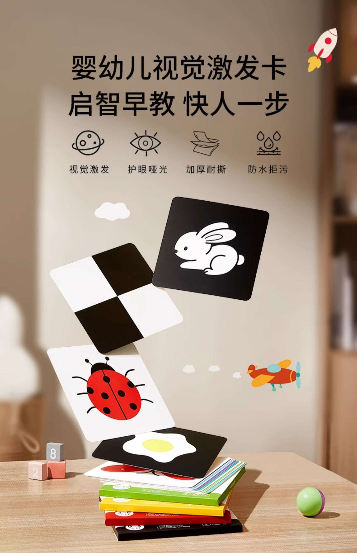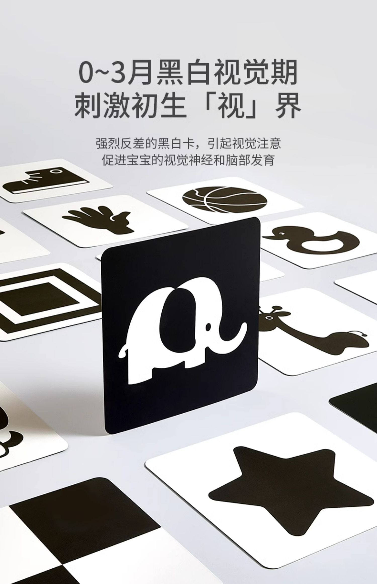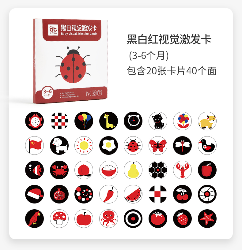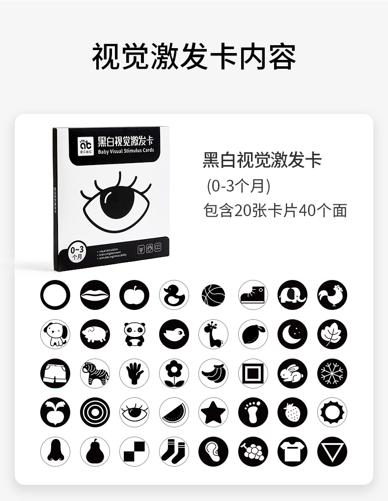 爱贝迪拉黑白卡片婴儿早教卡新生的儿0到3个月6宝宝1追视觉激发卡益智玩具