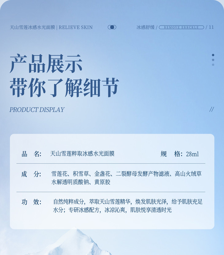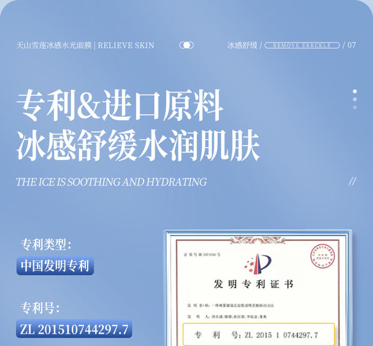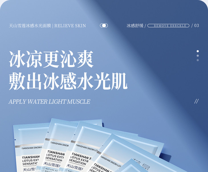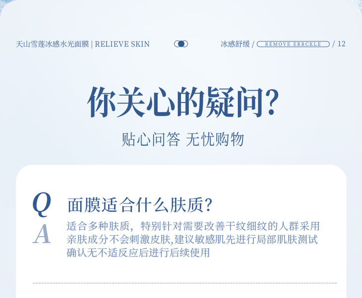 凡是购买荣晟天山雪莲粹取冰感水光面膜,即赠送一片试用装,建议使用试用装后在拆箱,面膜一旦拆箱后不可退,介意慎拍!