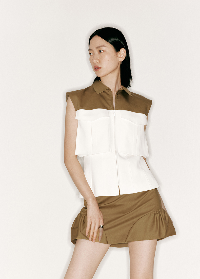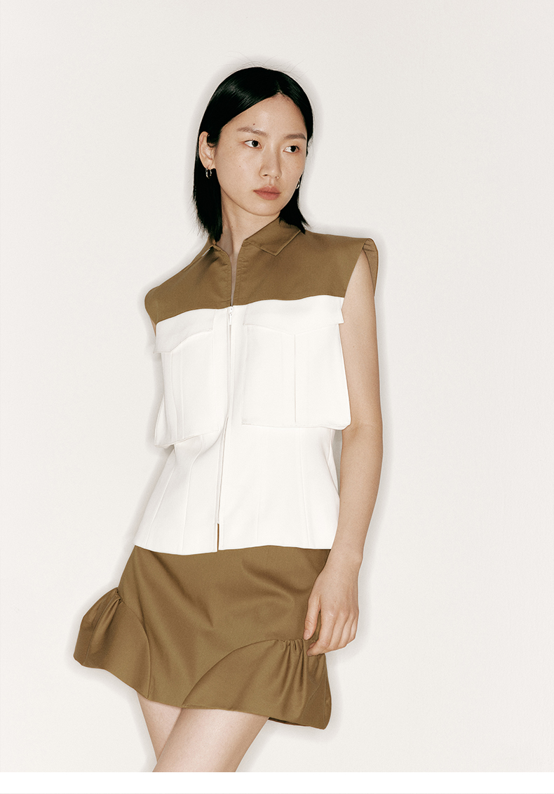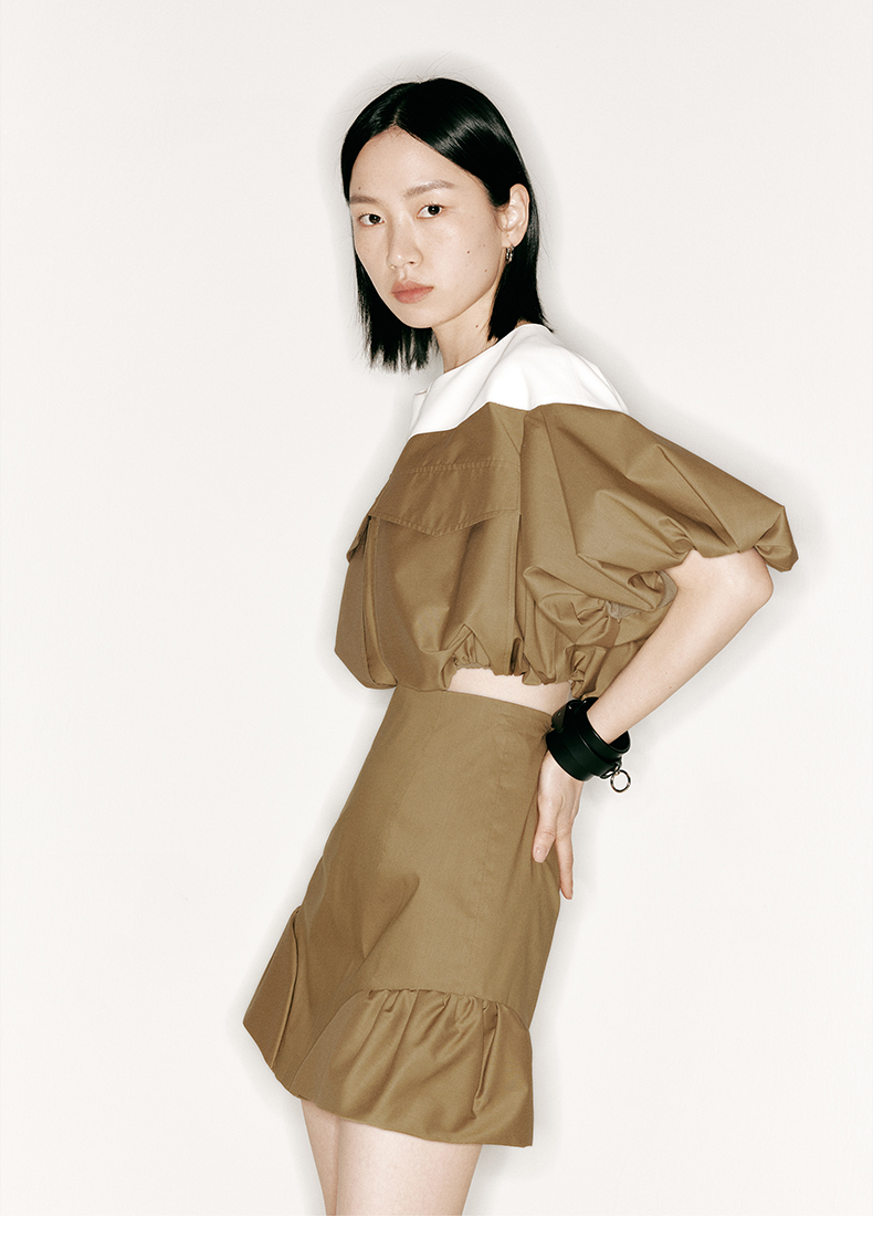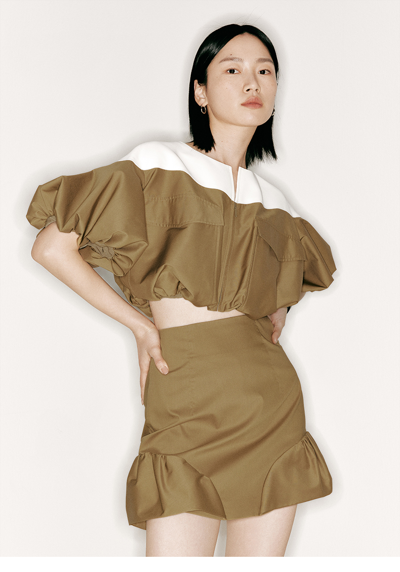 【青涩】弧形花苞装饰A字高腰短裙/2300019B