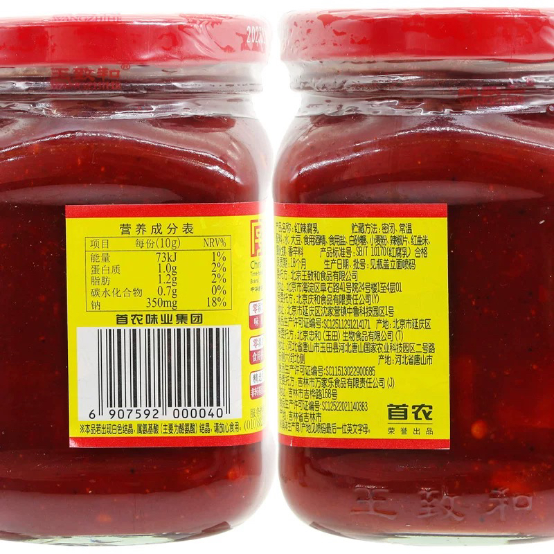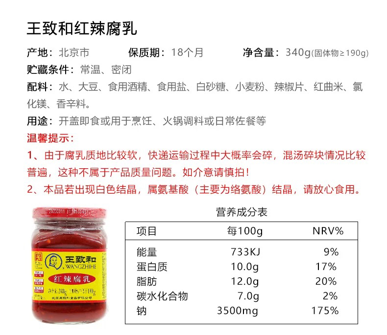 王致和红辣腐乳(340克/瓶)
