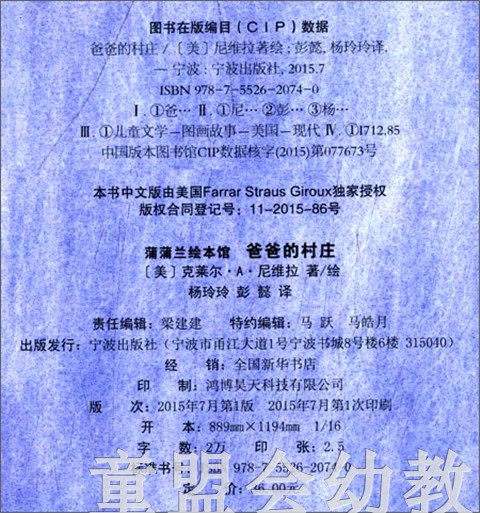 蒲蒲兰 爸爸的村庄 克莱尔·A·尼维拉 3-4-5-6岁 正版