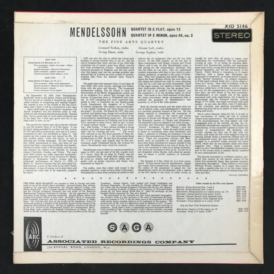 LP黑胶唱片 门德尔松《降E大调弦乐四重奏No.1, Op.12》《D大调弦乐四重奏Op. 44》 艺术家弦乐四重奏团演厂牌:Saga (5)
