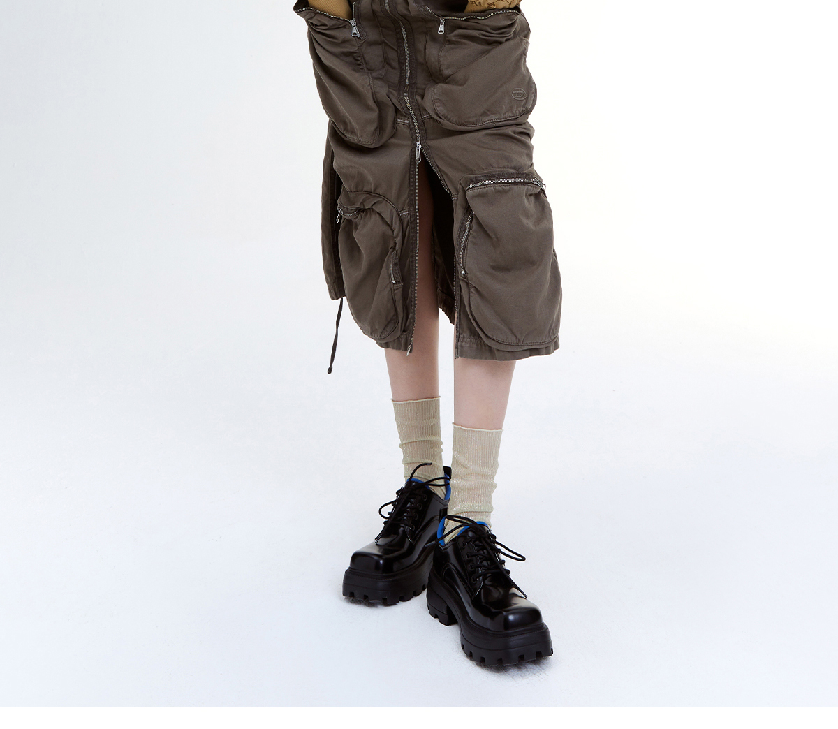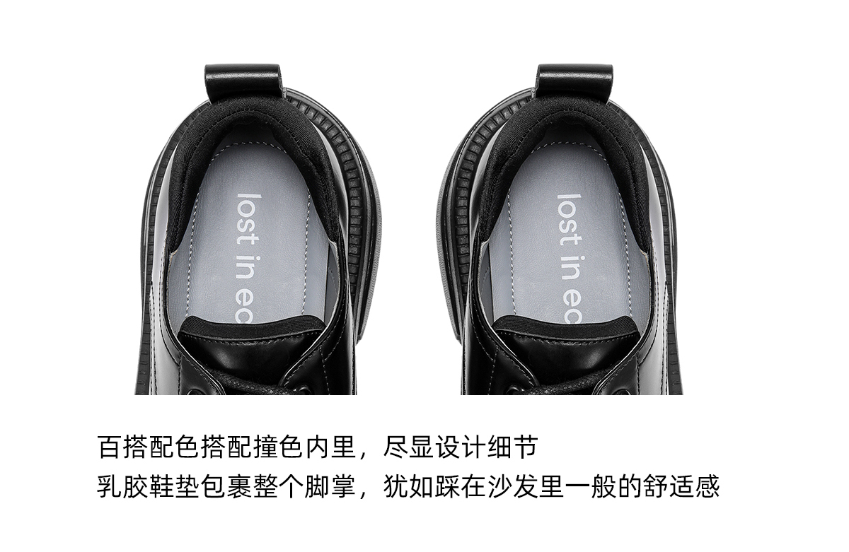 [断码]lost in echo 方头运动休闲脚踝中性皮鞋厚底增高西装鞋