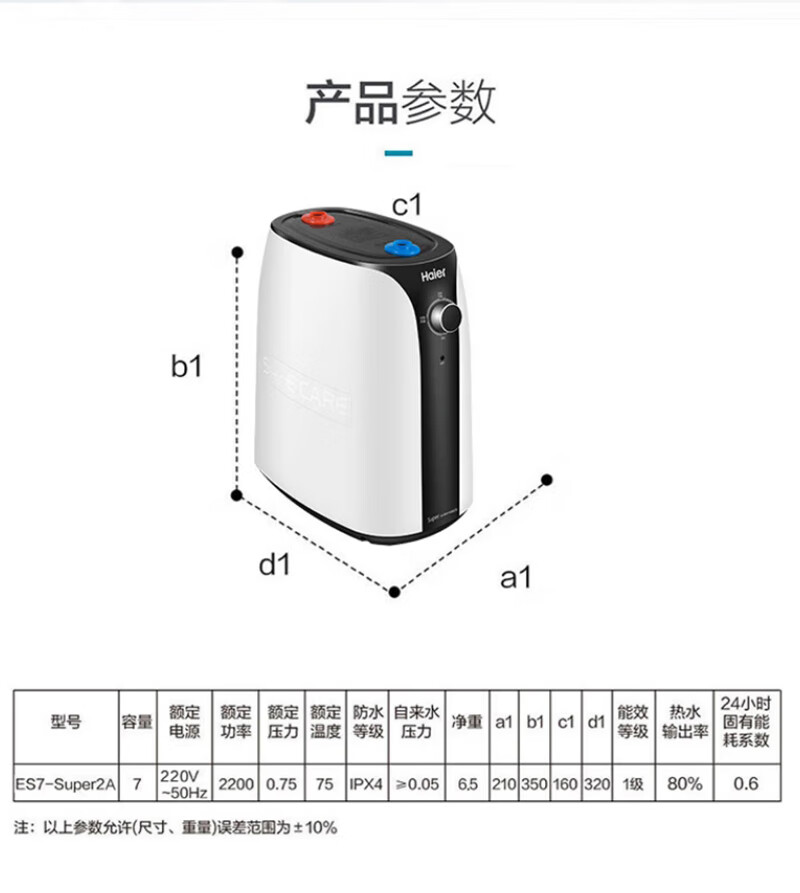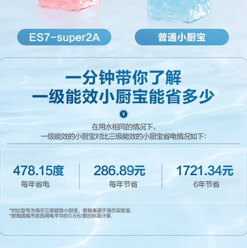 【海尔ES7-Super2A】海尔7升小厨宝 上出水 一级能效超薄小体积2200W大功率速热即热式电热水器 ES7-Super2A