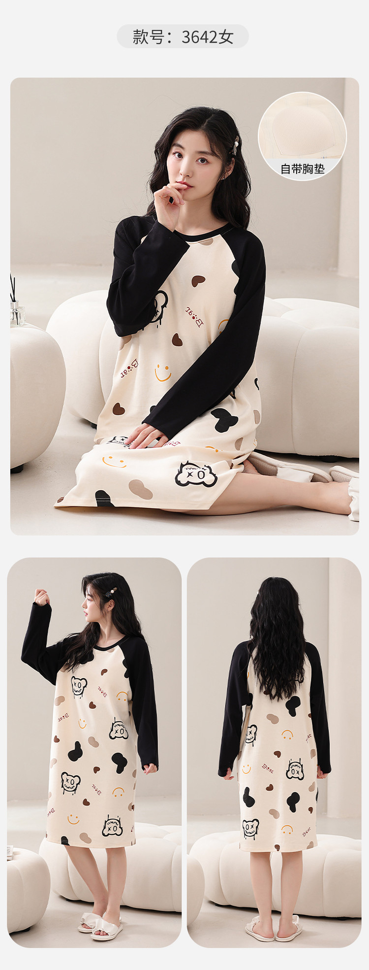康妮雅女式长袖睡裙