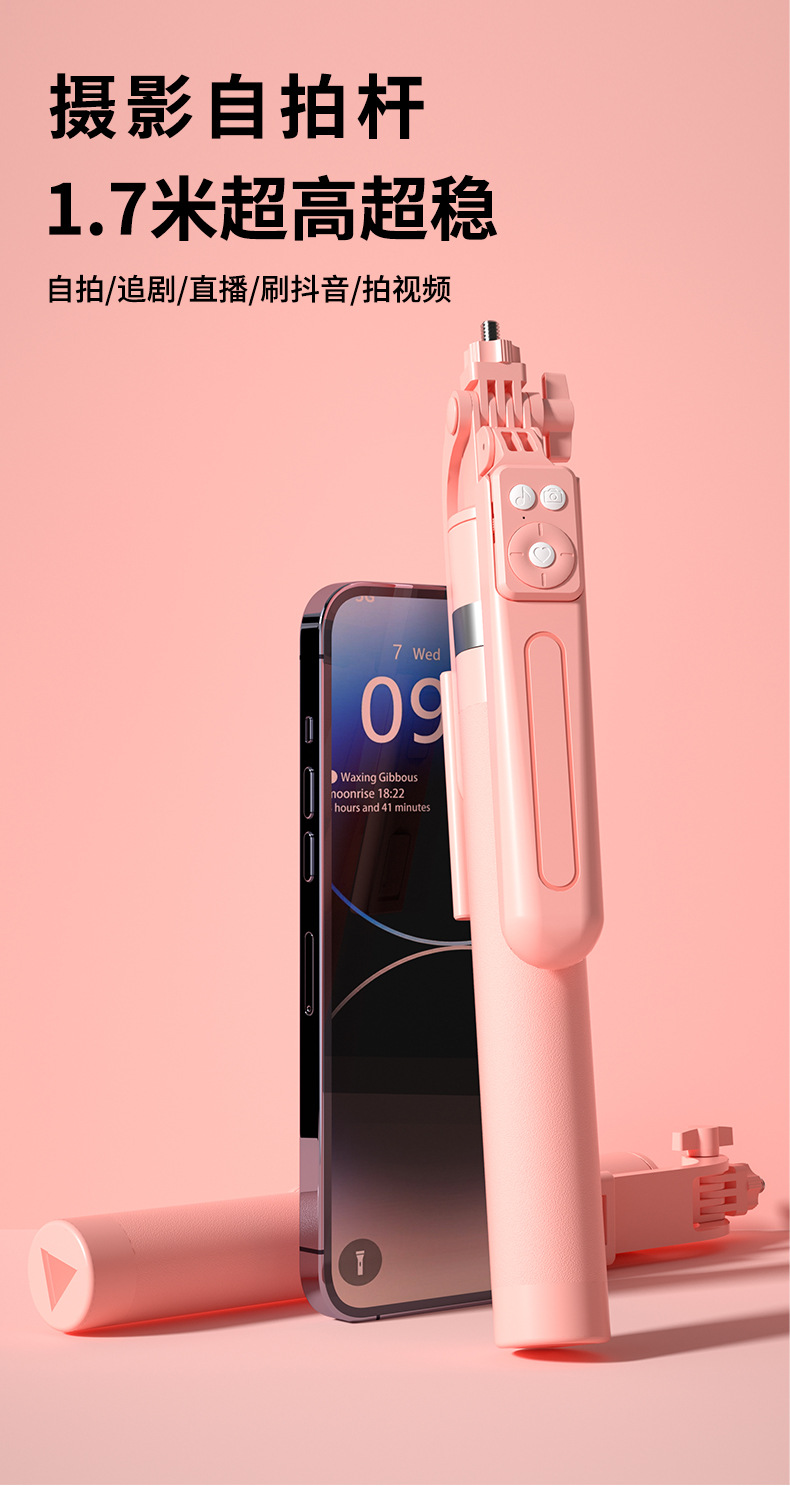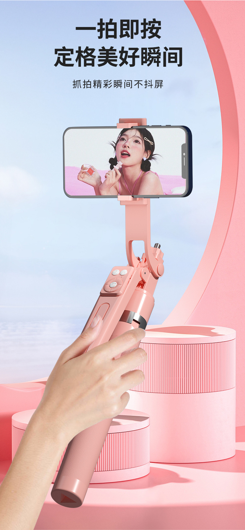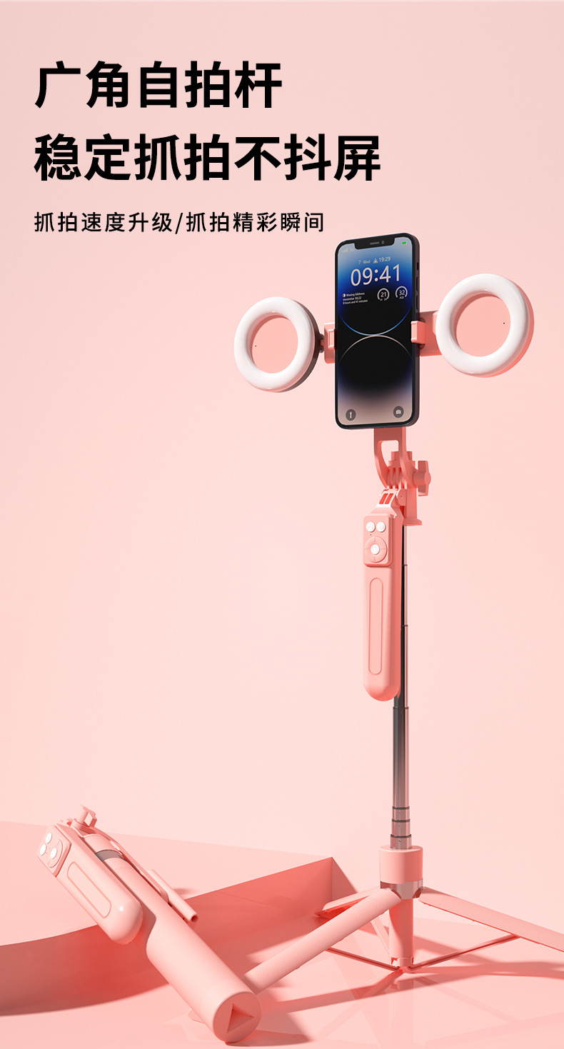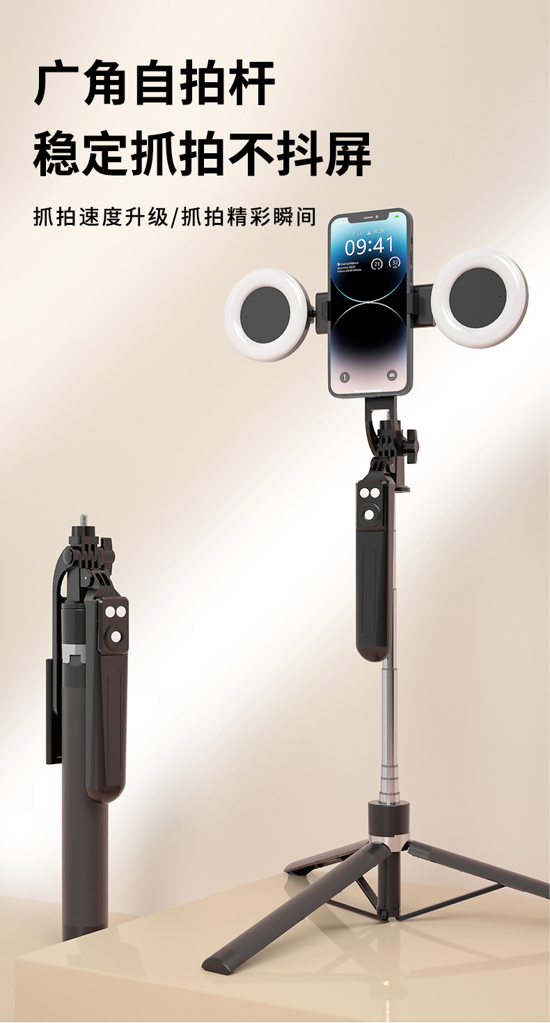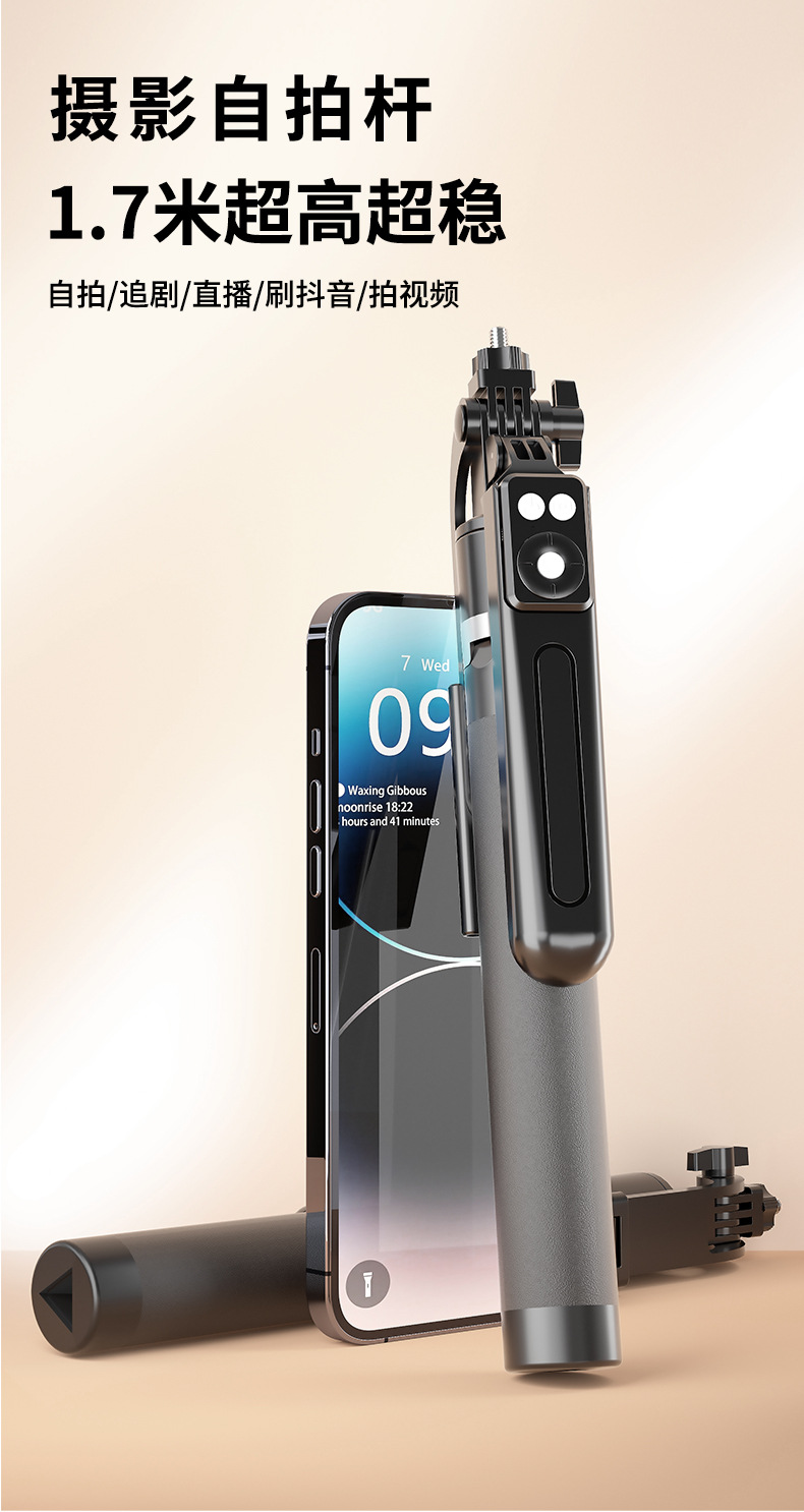 【广角自拍杆!稳定抓拍不抖屏】新款手机自拍杆云台防抖360°旋转直播美颜补光1.7米摄影支架。ry