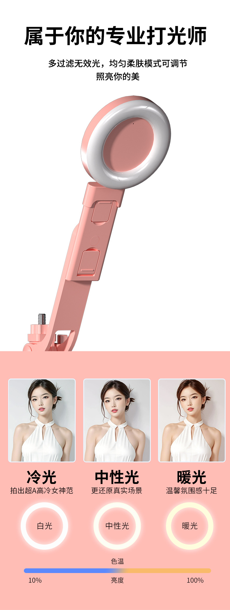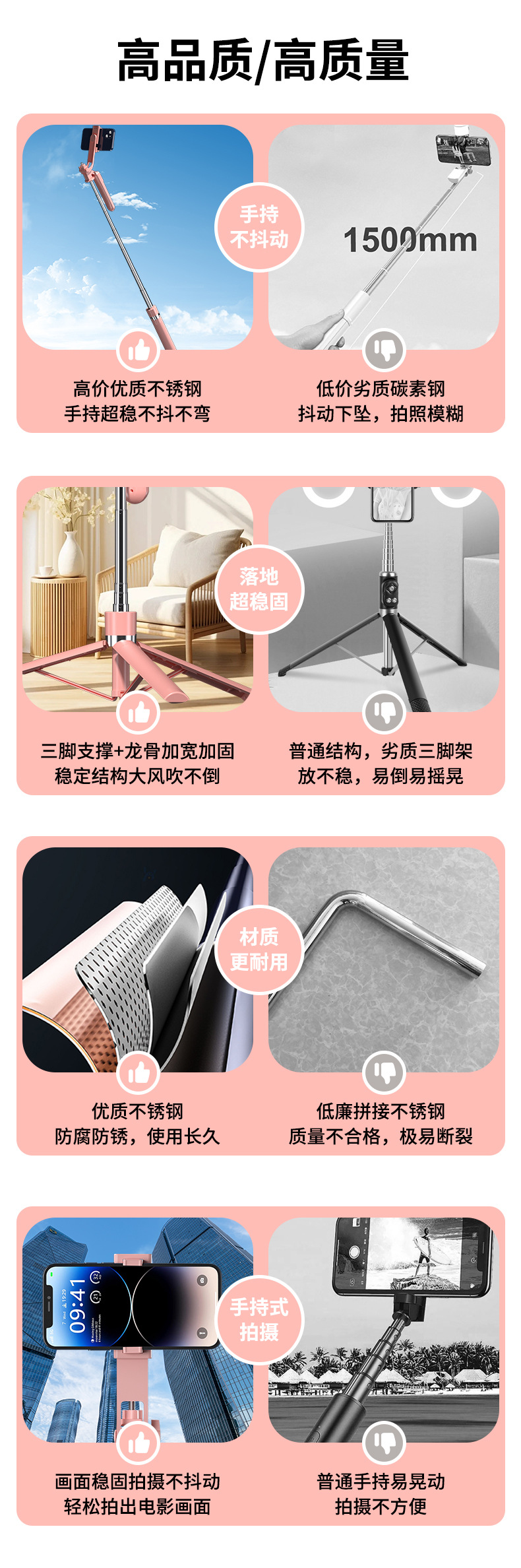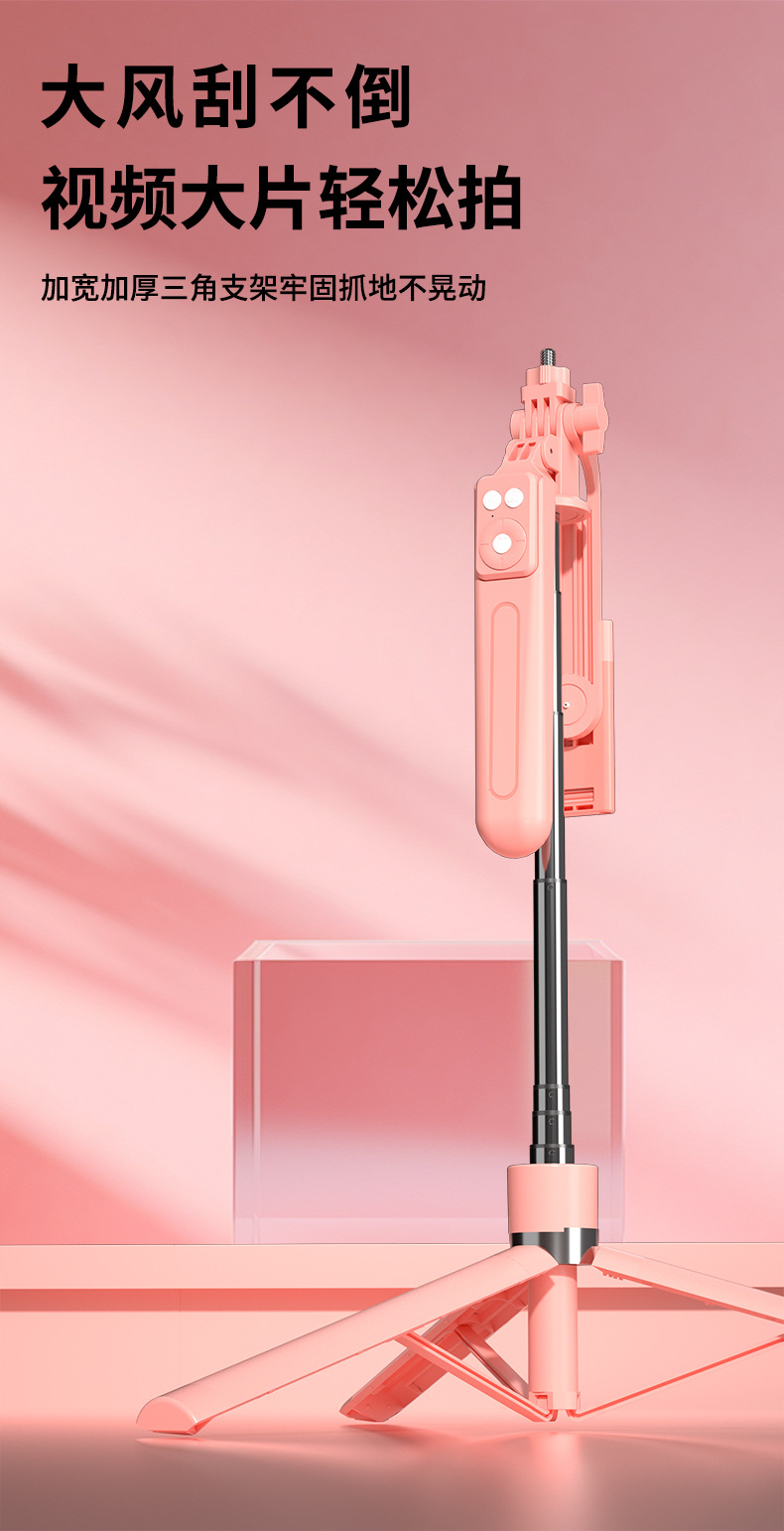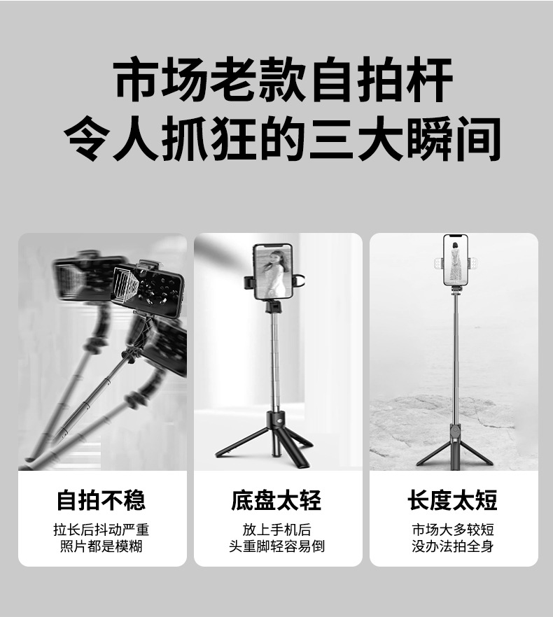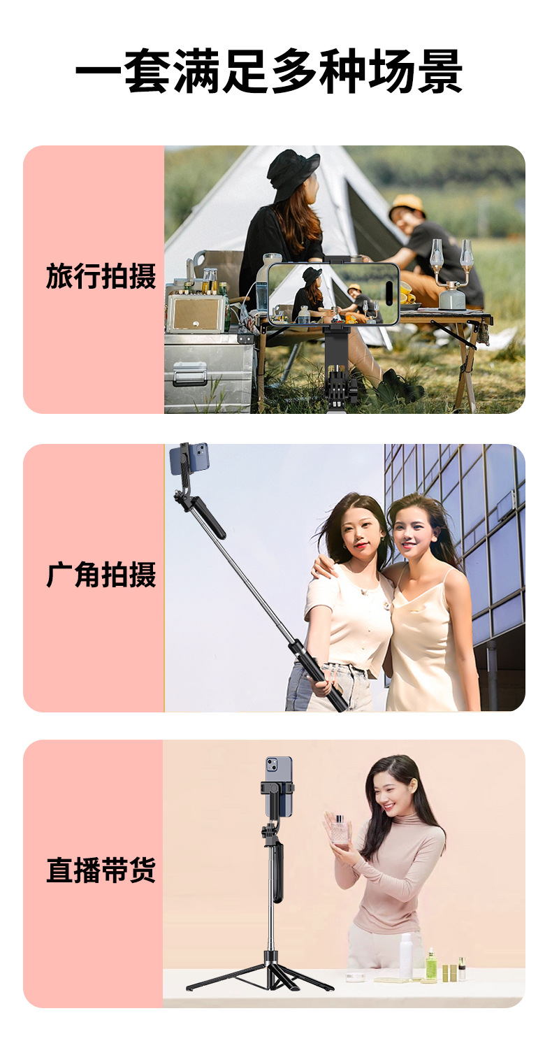 【广角自拍杆!稳定抓拍不抖屏】新款手机自拍杆云台防抖360°旋转直播美颜补光1.7米摄影支架。ry