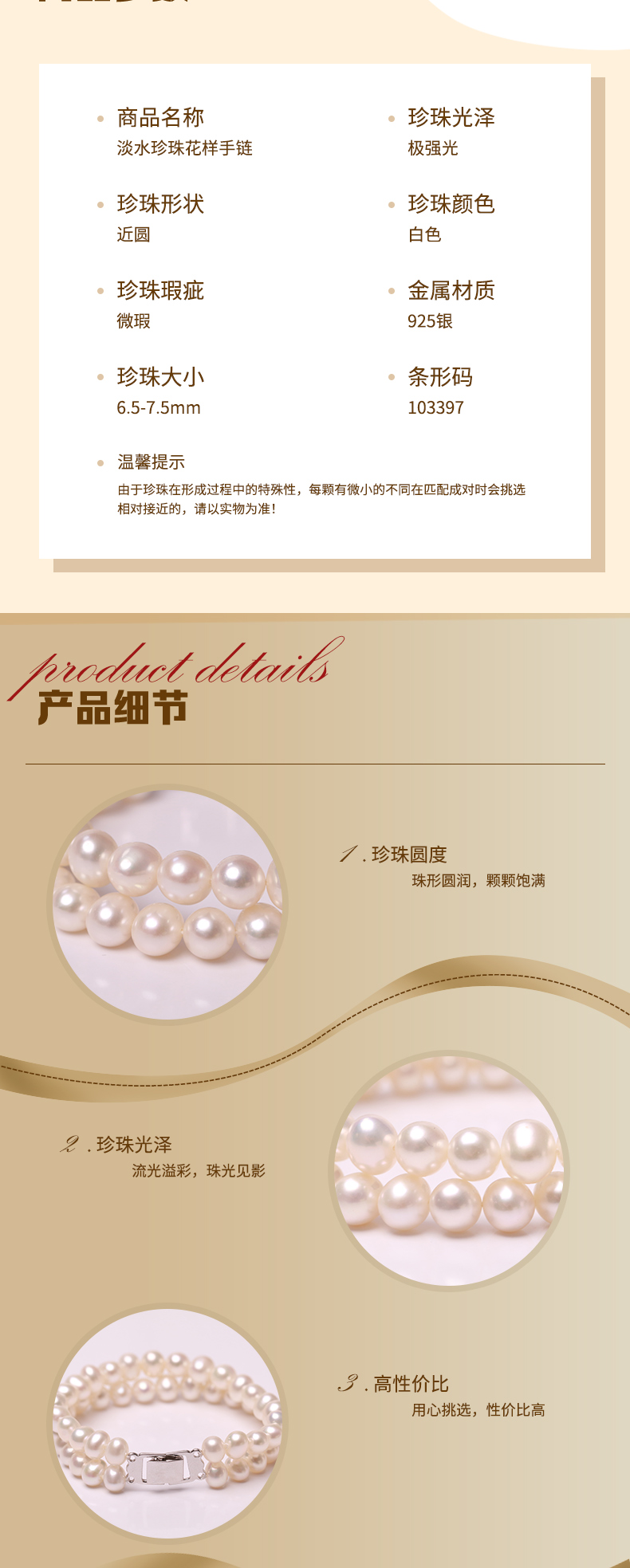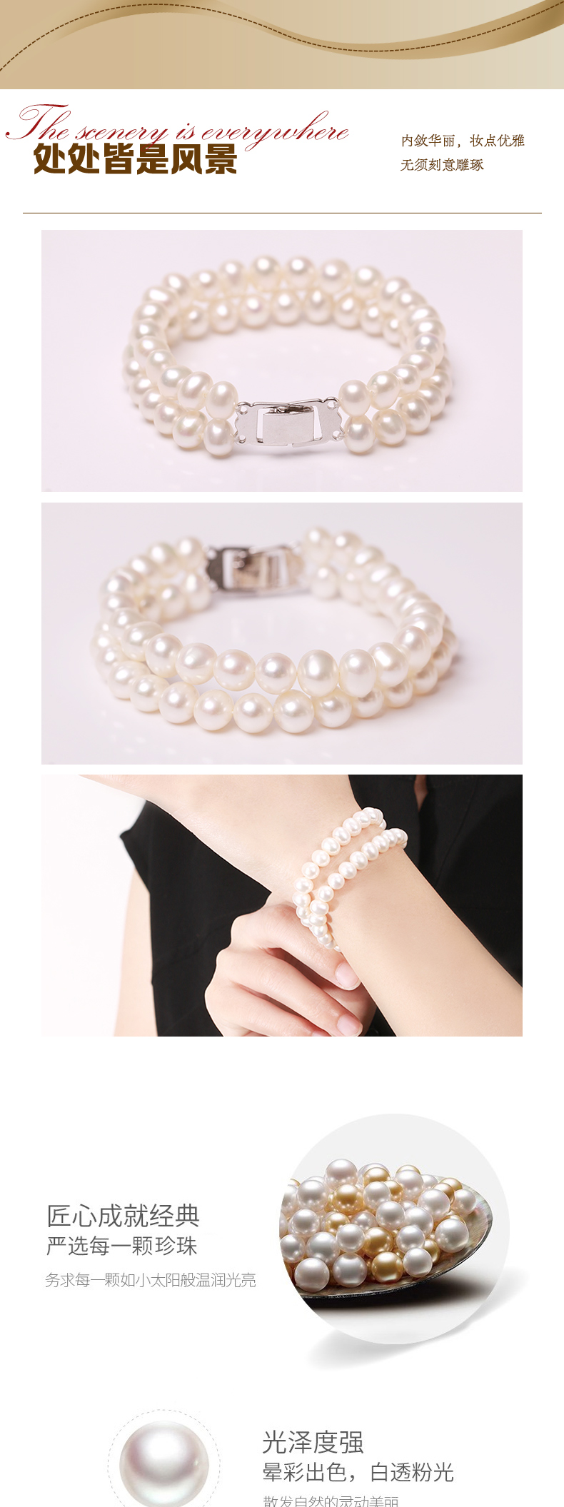 美裕 淡水珍珠花样手链 6.5-7.5mm白 双排 103397