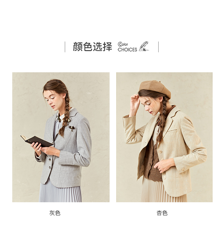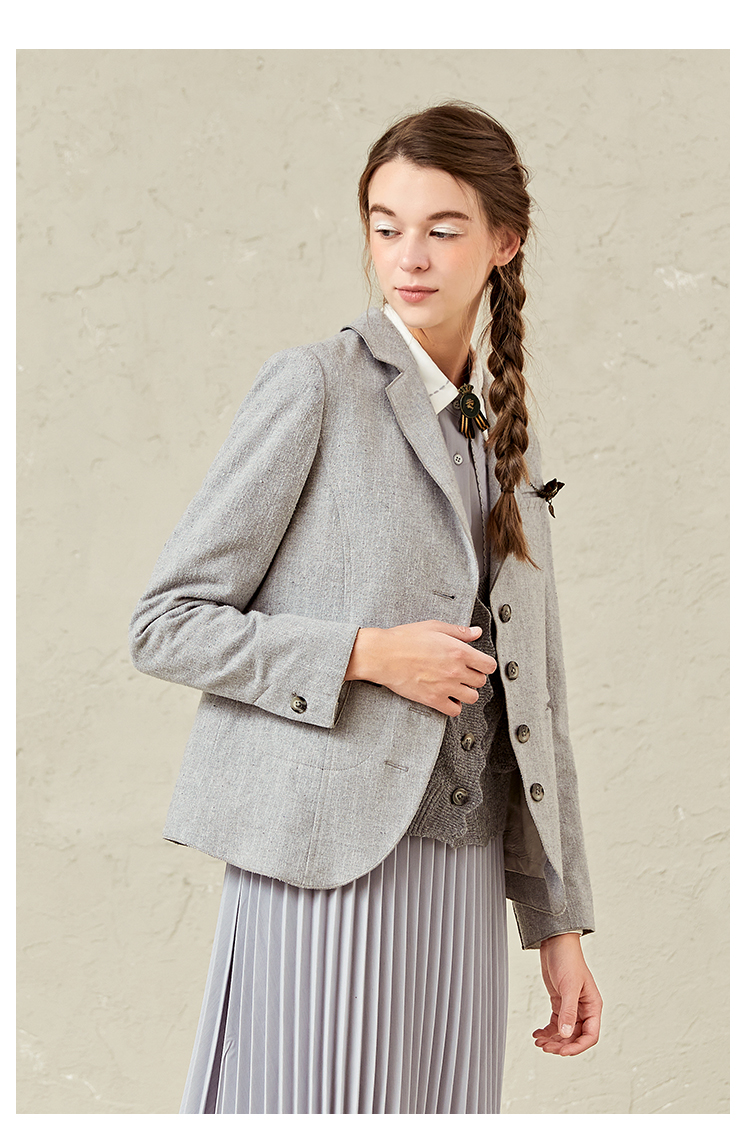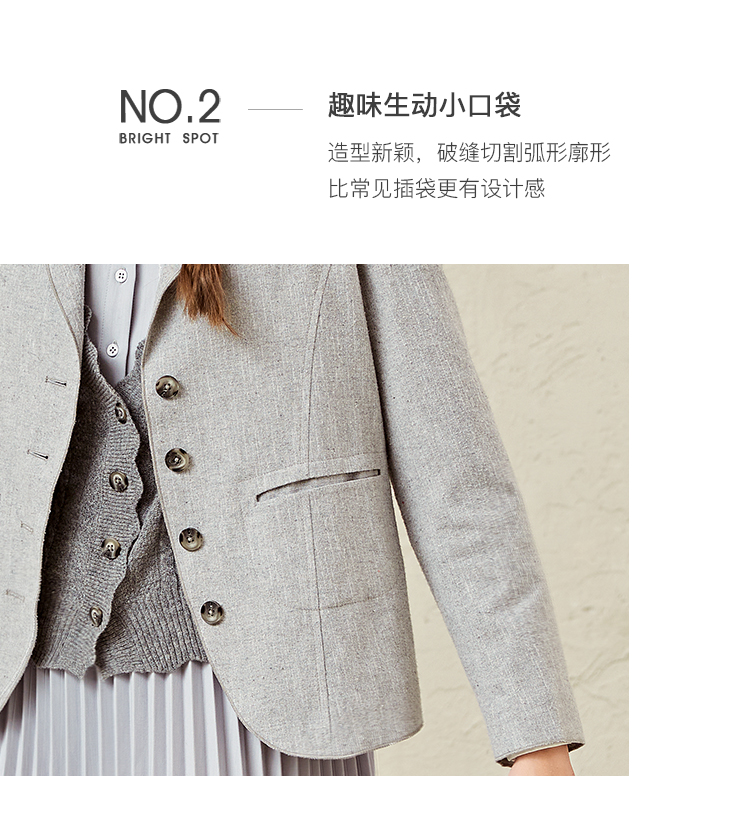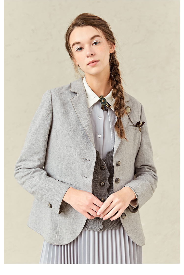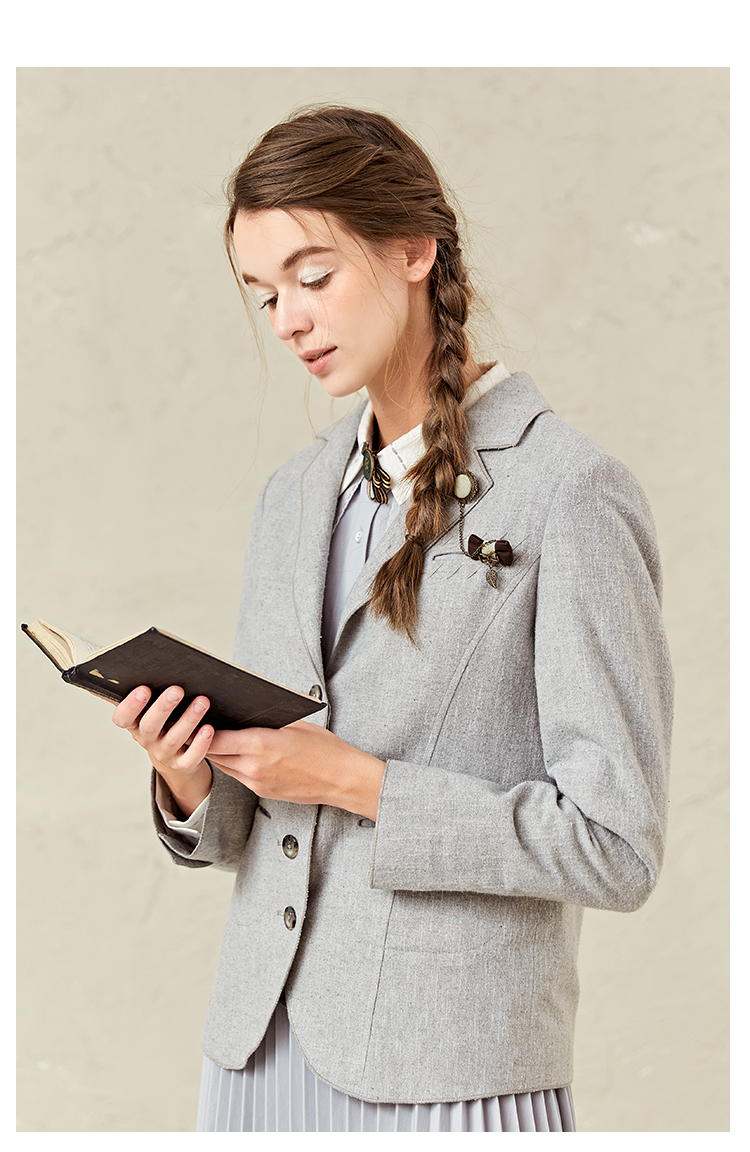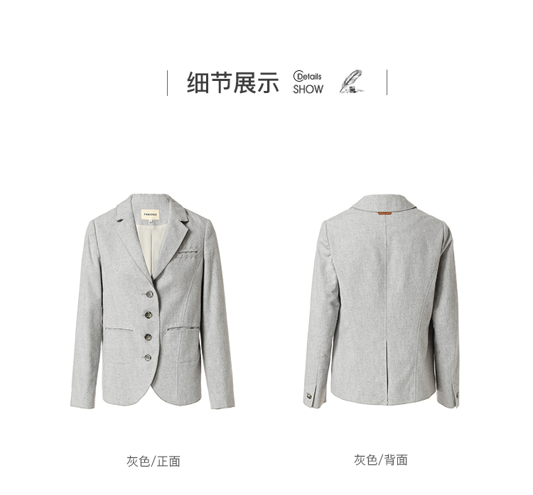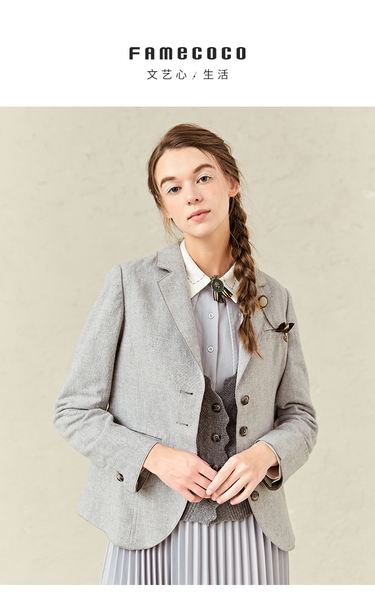 Famecoco范可儿灰色休闲西装外套女小个子春秋款西服F221AW004