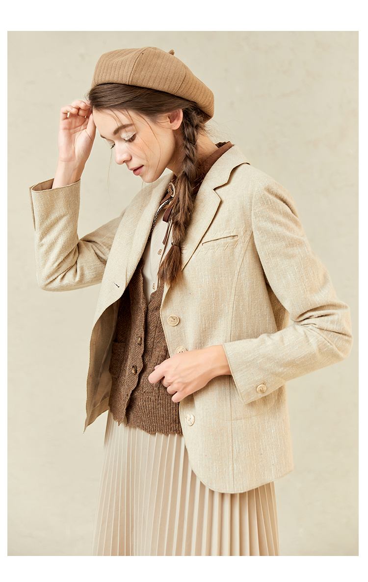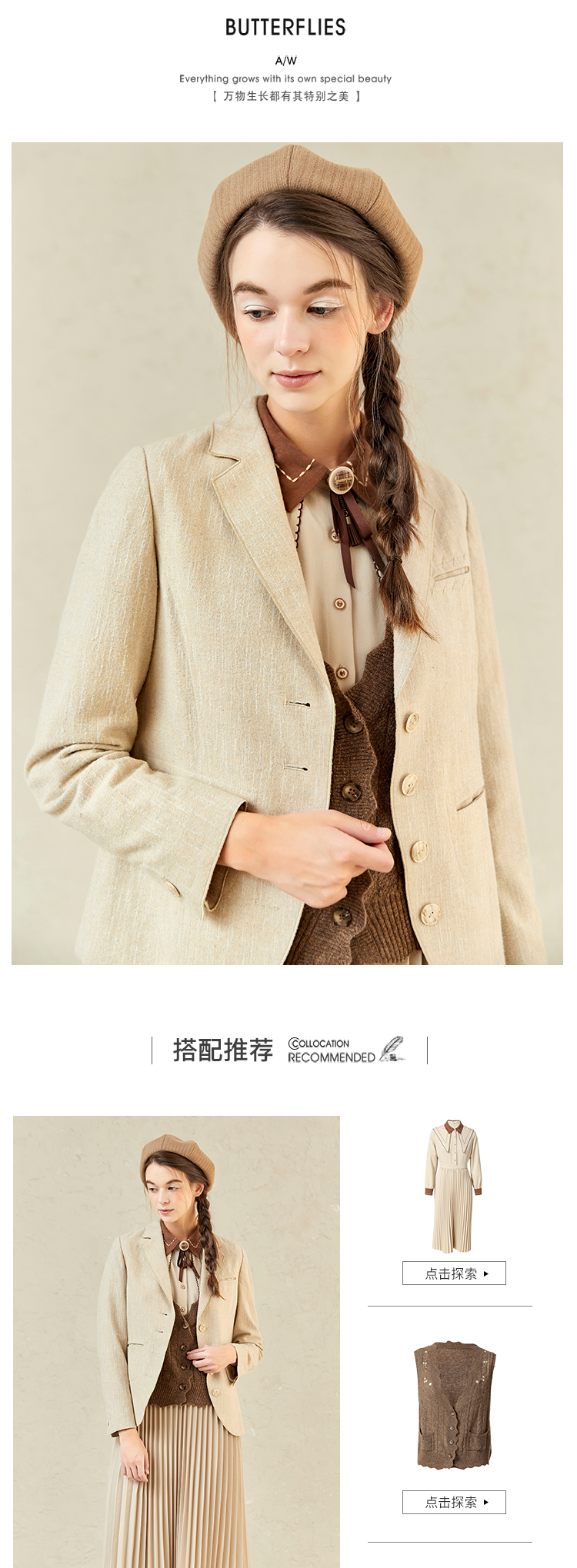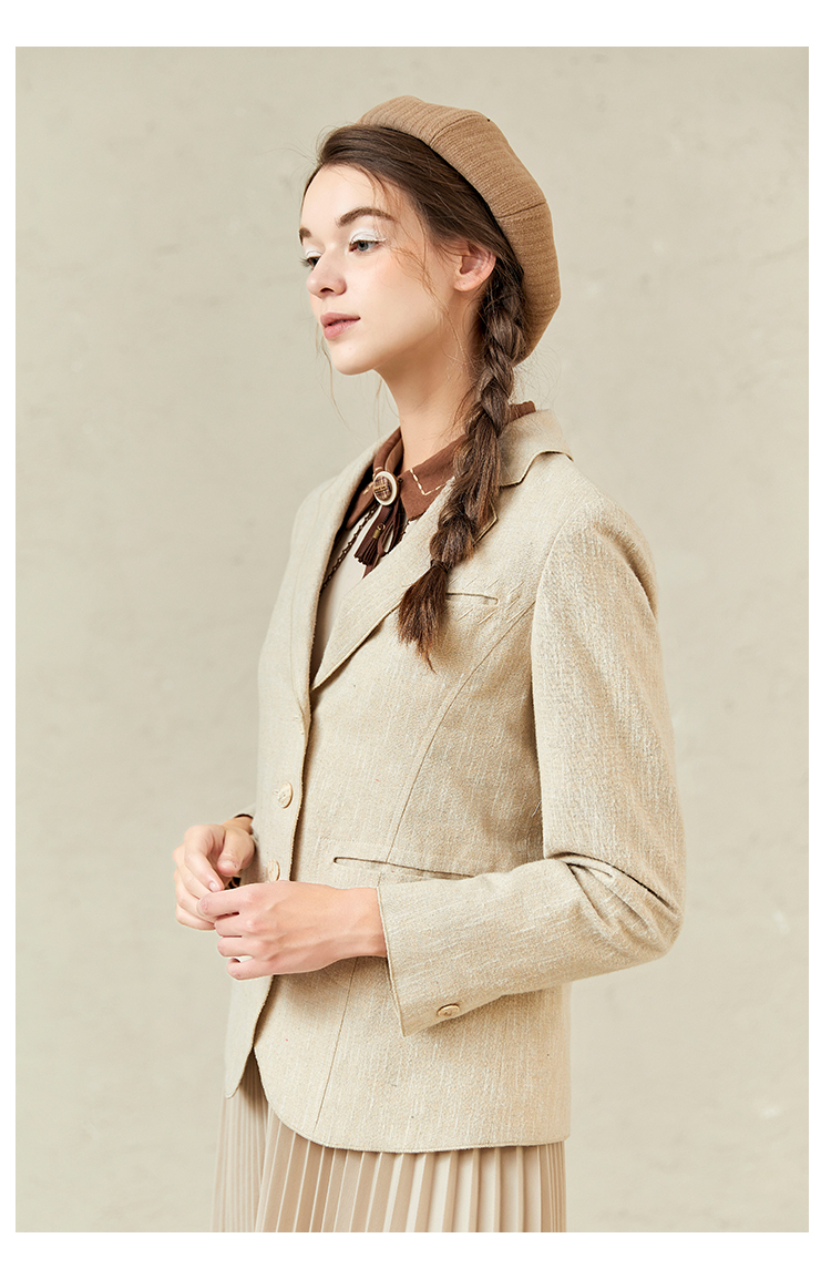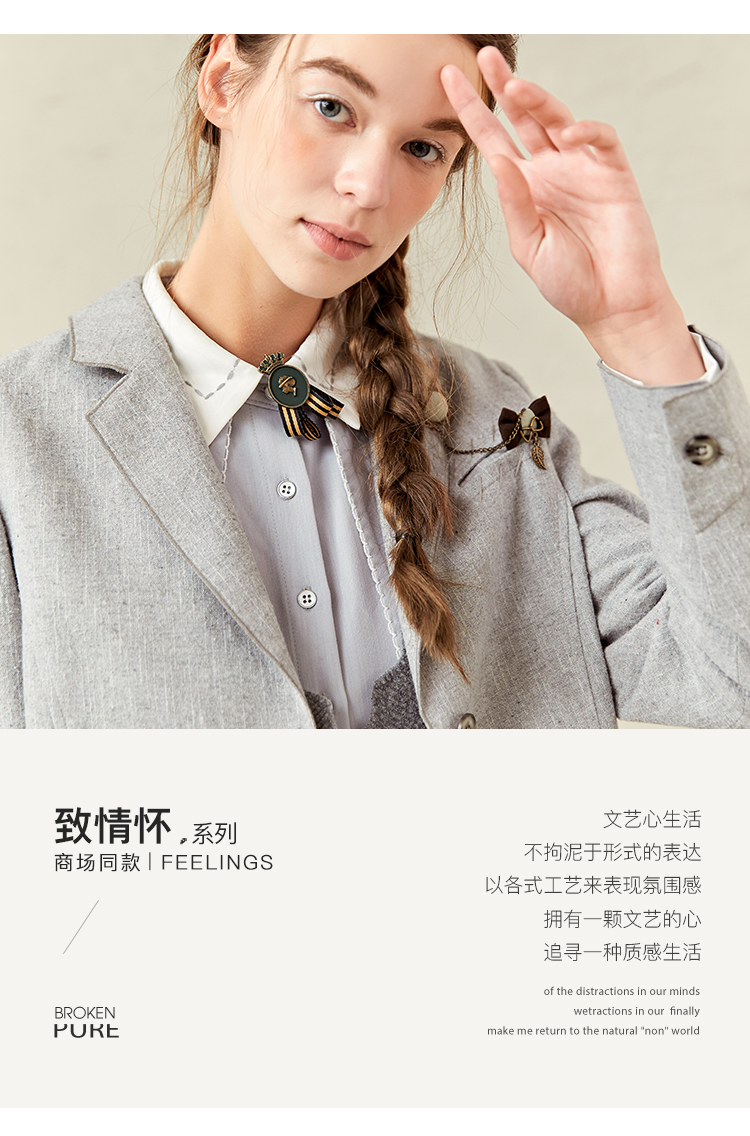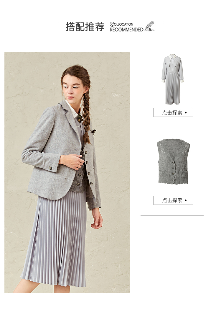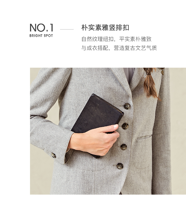 Famecoco范可儿灰色休闲西装外套女小个子春秋款西服F221AW004
