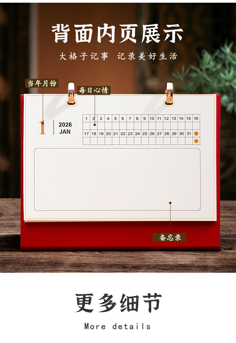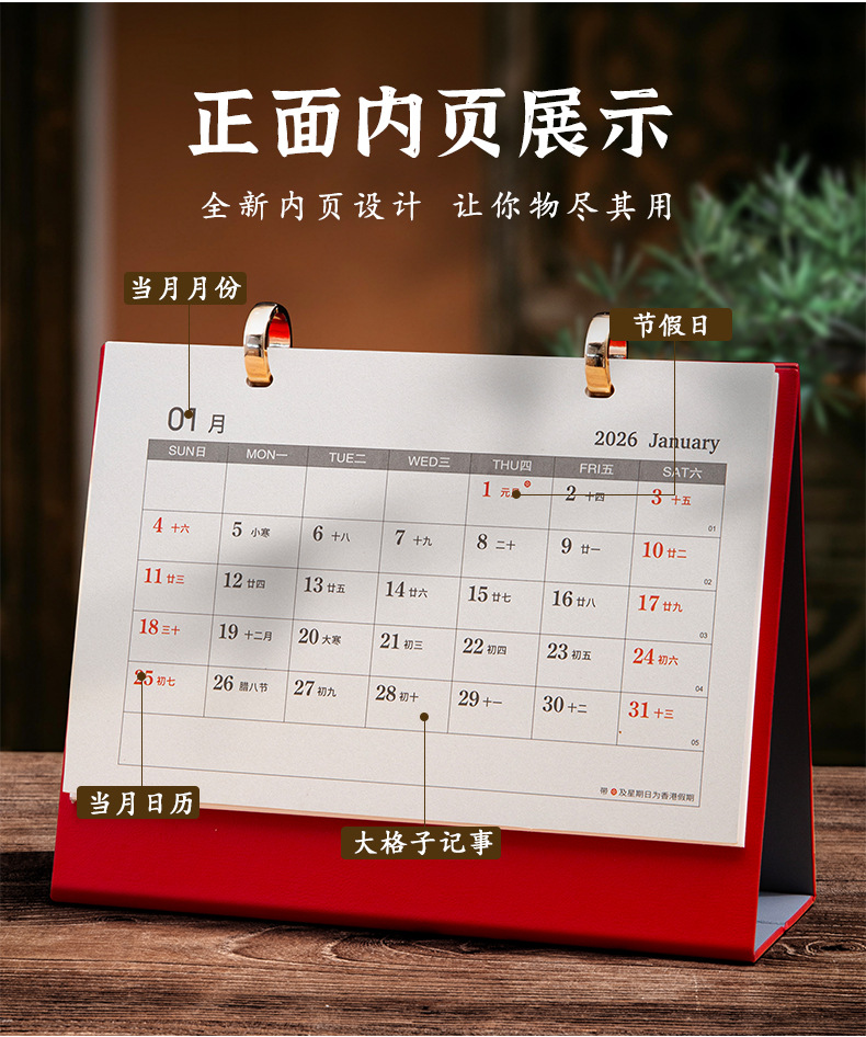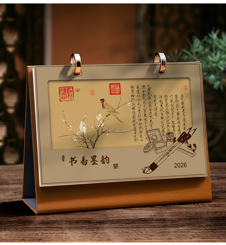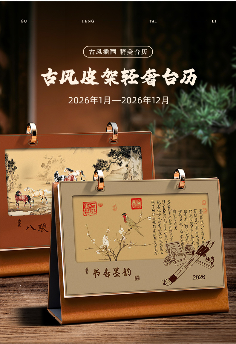 超值2本【古风皮架轻奢日历❗️活扣设计封面有质感】双圈皮架日历2026年商务礼品马年中国风台历。ja