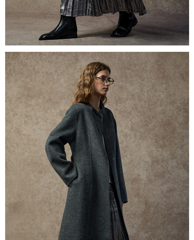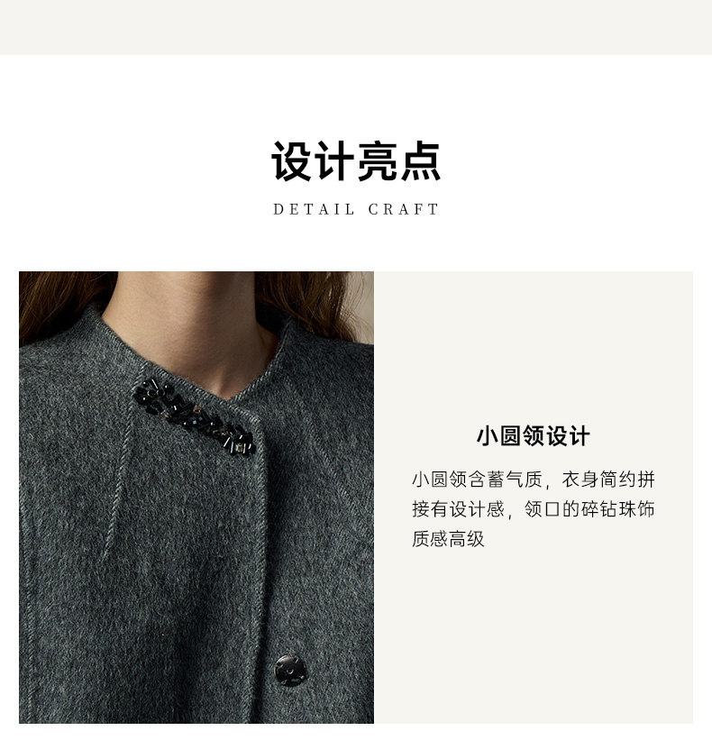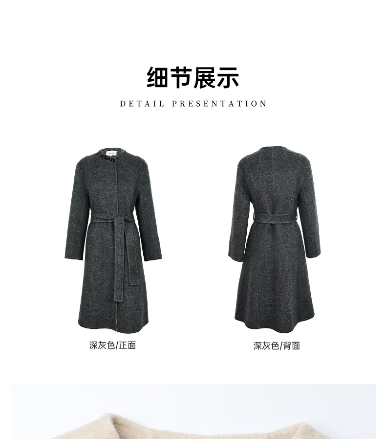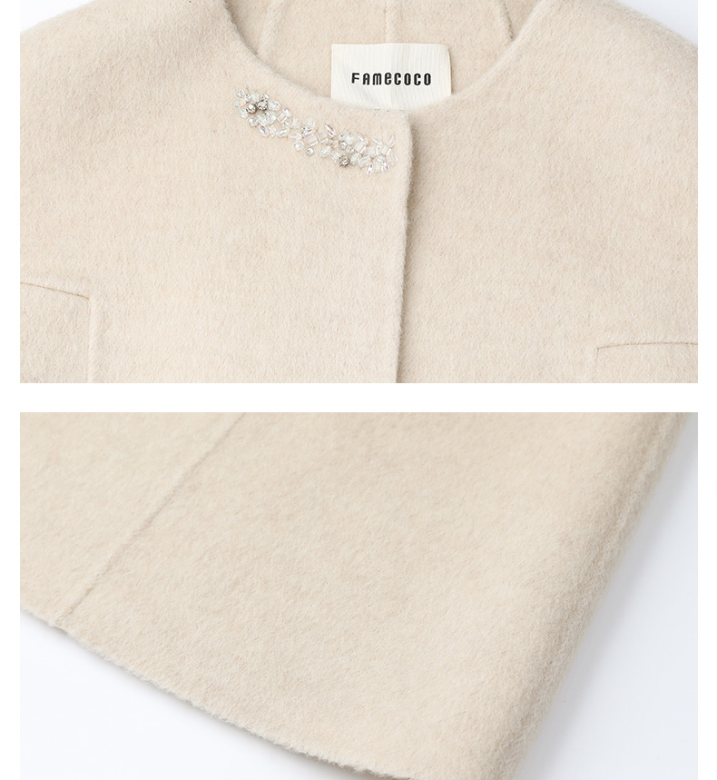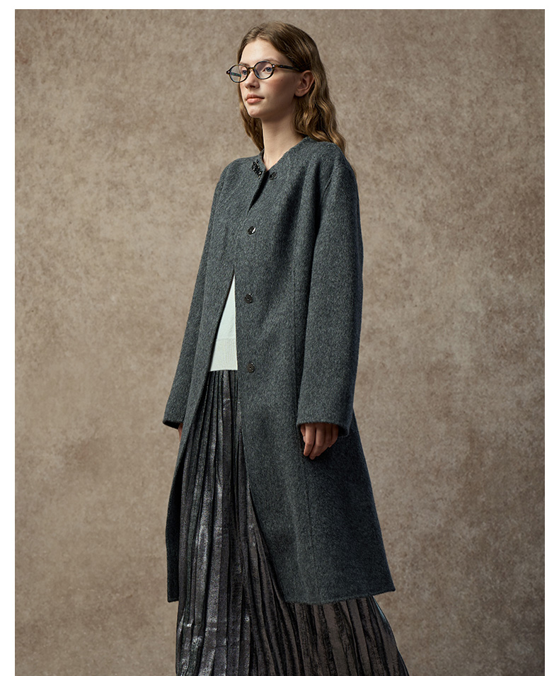 Famecoco范可儿文艺气质高级羊驼毛无领大衣FAC8AQ005