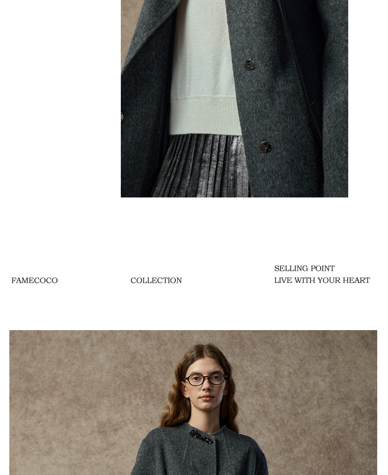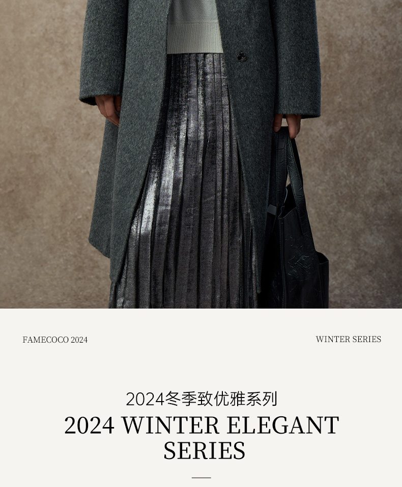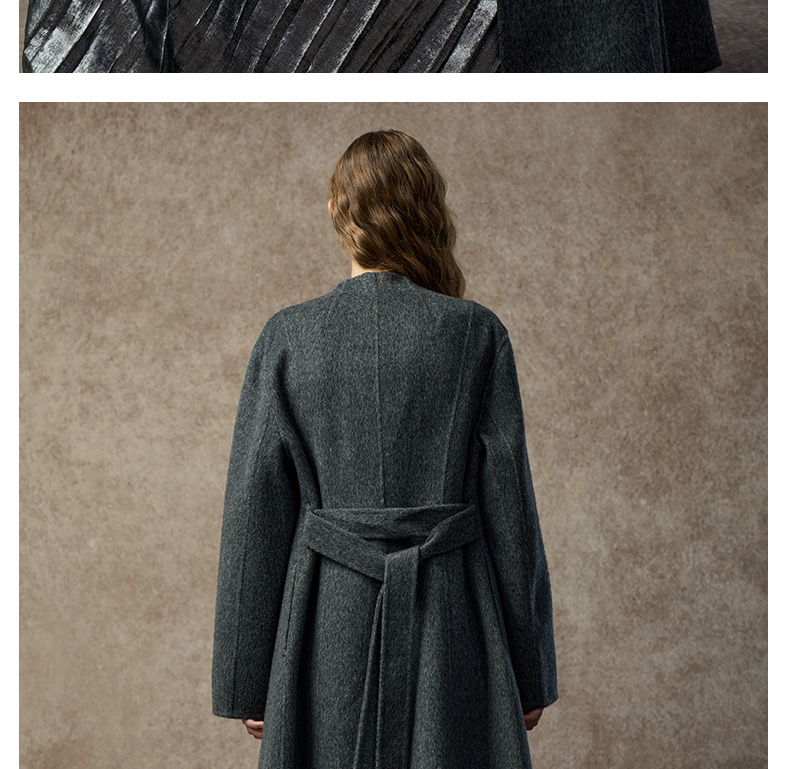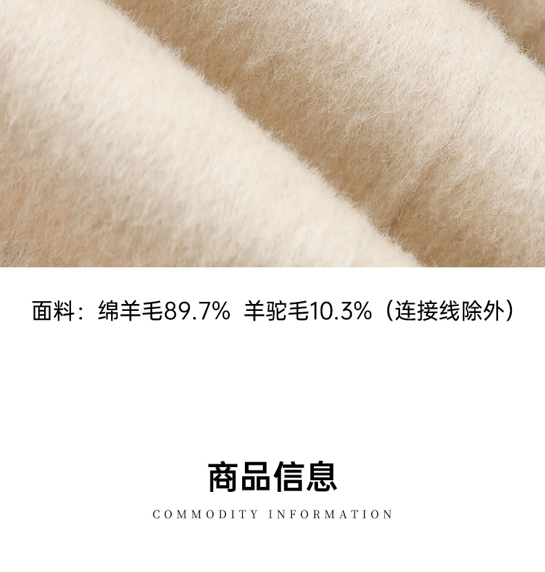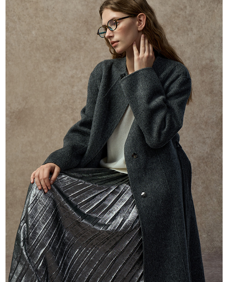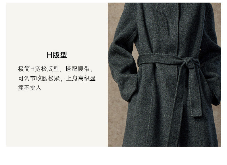 Famecoco范可儿文艺气质高级羊驼毛无领大衣FAC8AQ005