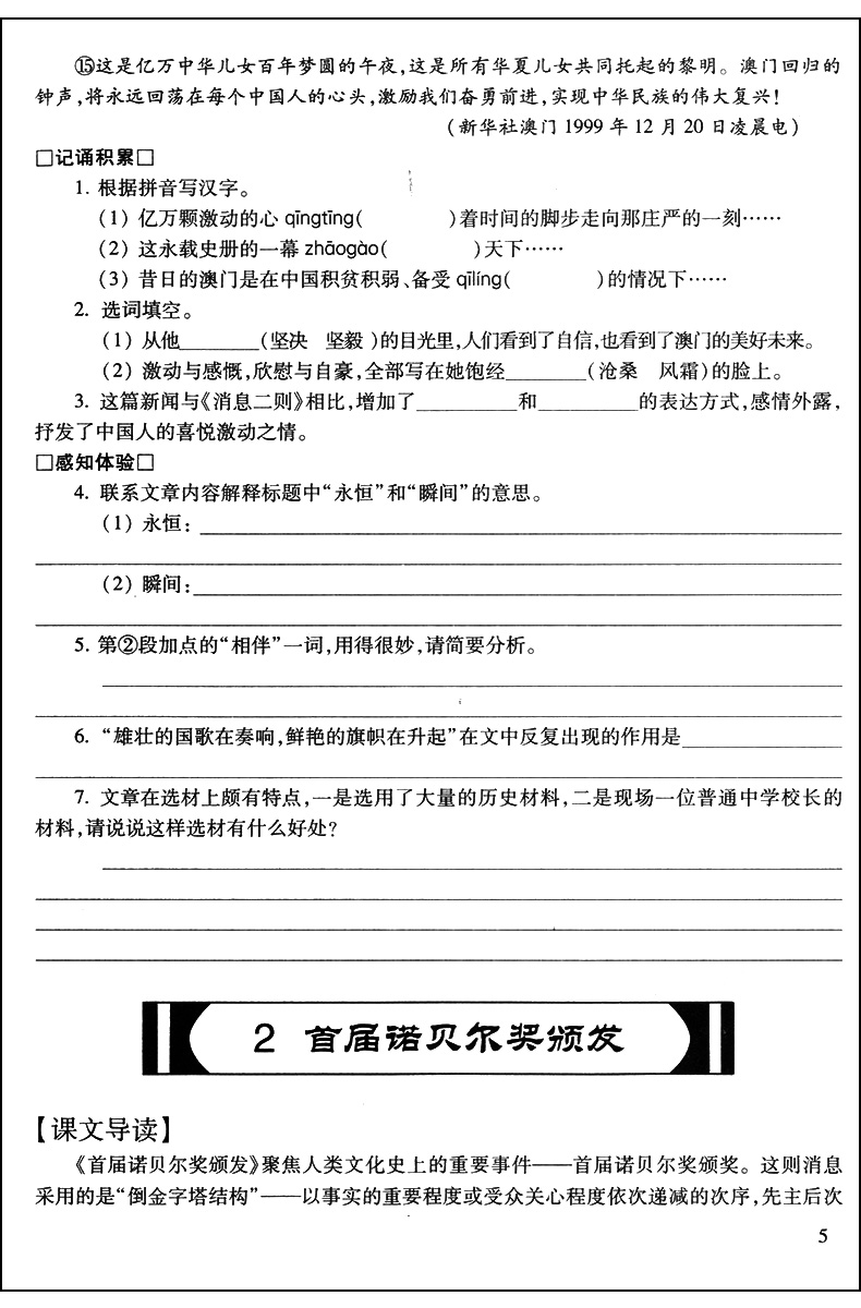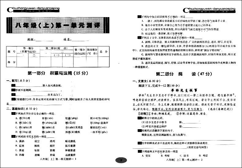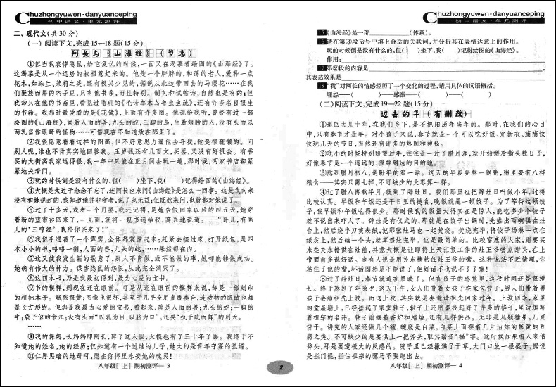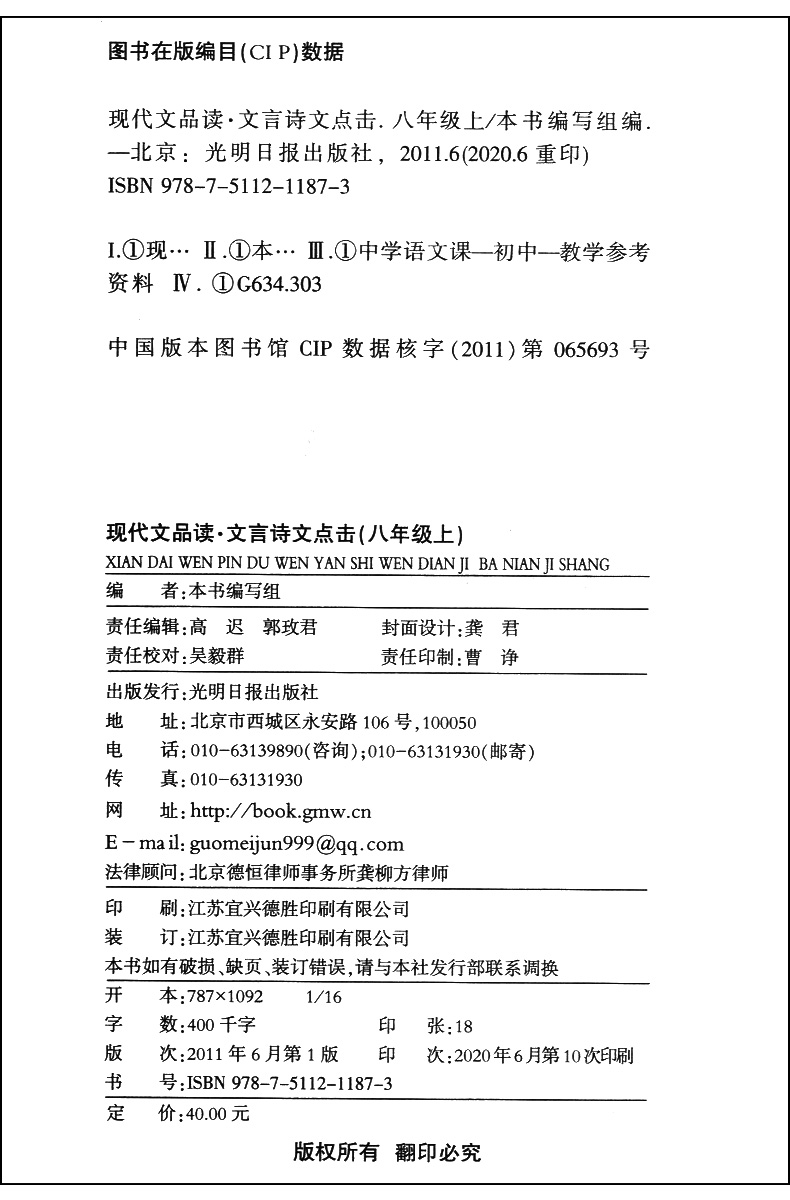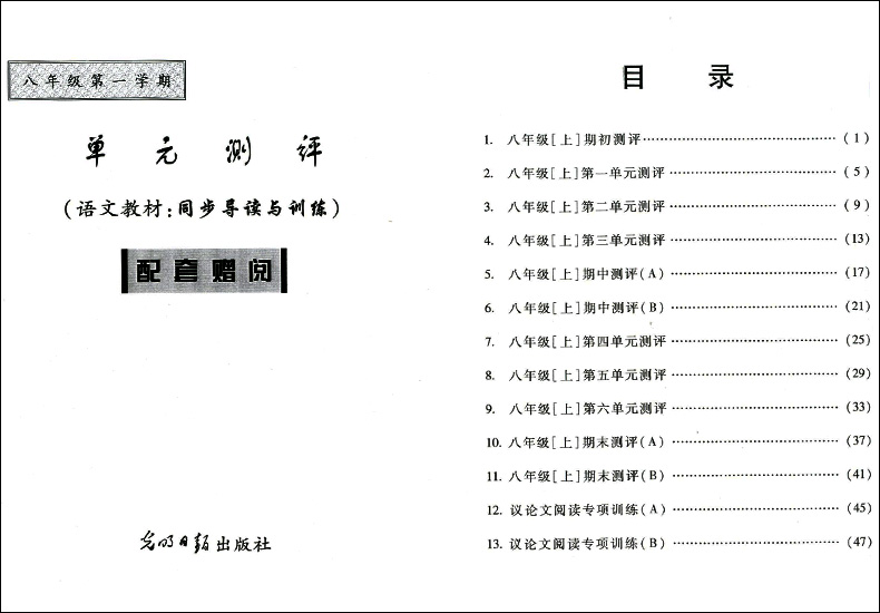 2020年新版 现代文品读文言诗文点击 8年级上册/八年级第一学期 配套赠阅单元测评 语文教材同步导读与训练 光明日报