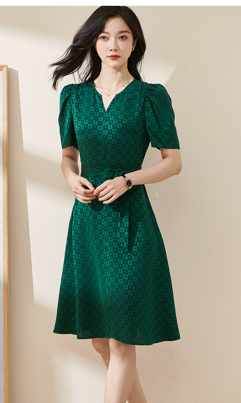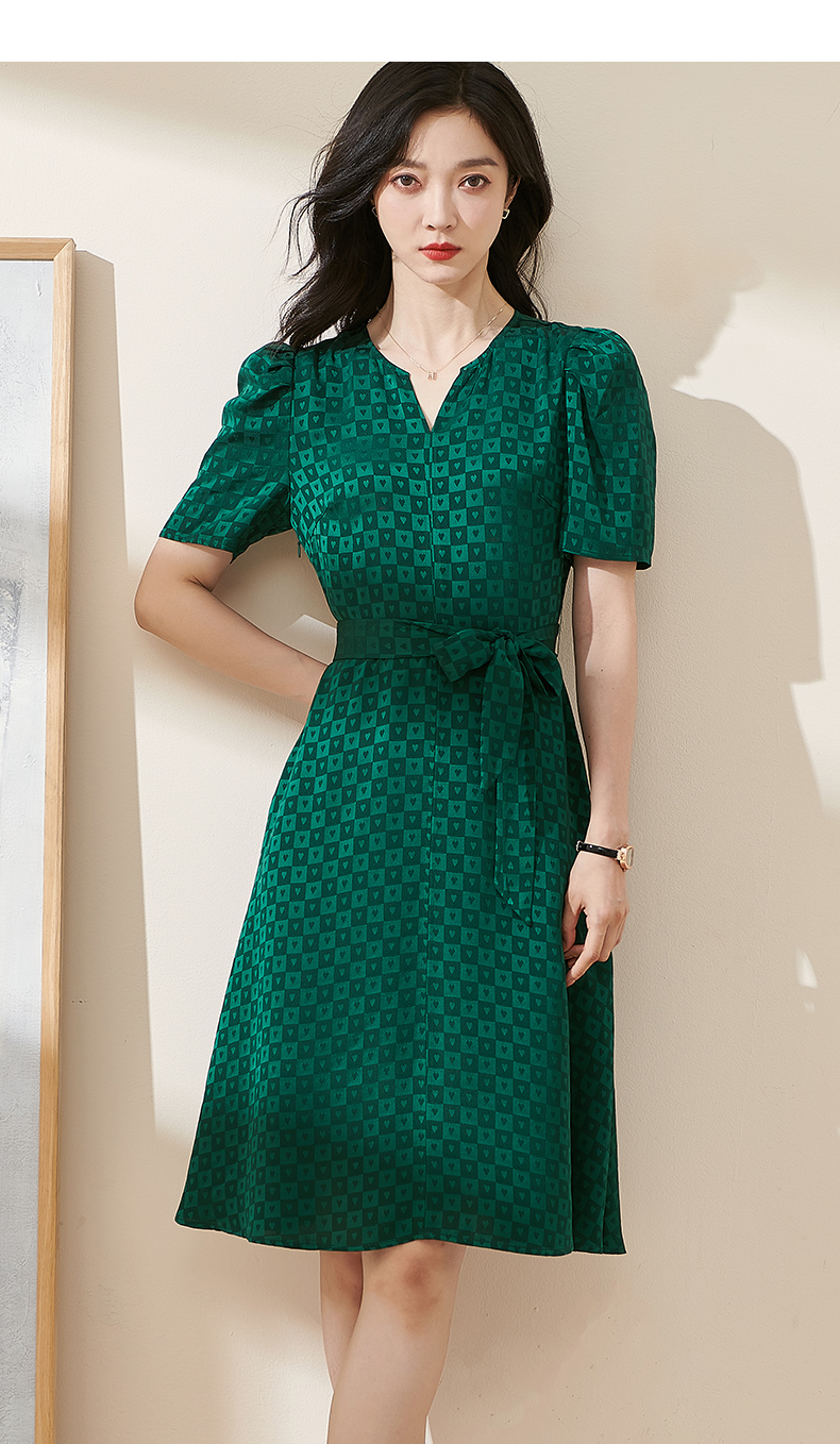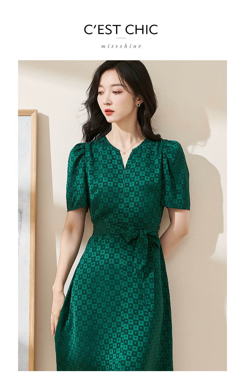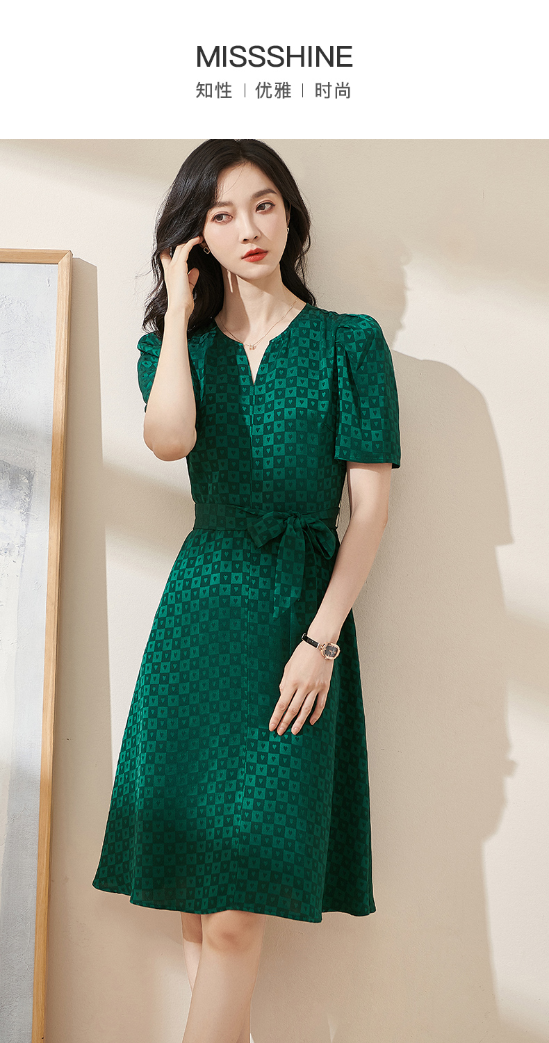剩S/M 米思阳2025夏季新款知性优雅醋酸提花裙子修身显瘦格子连衣裙1806