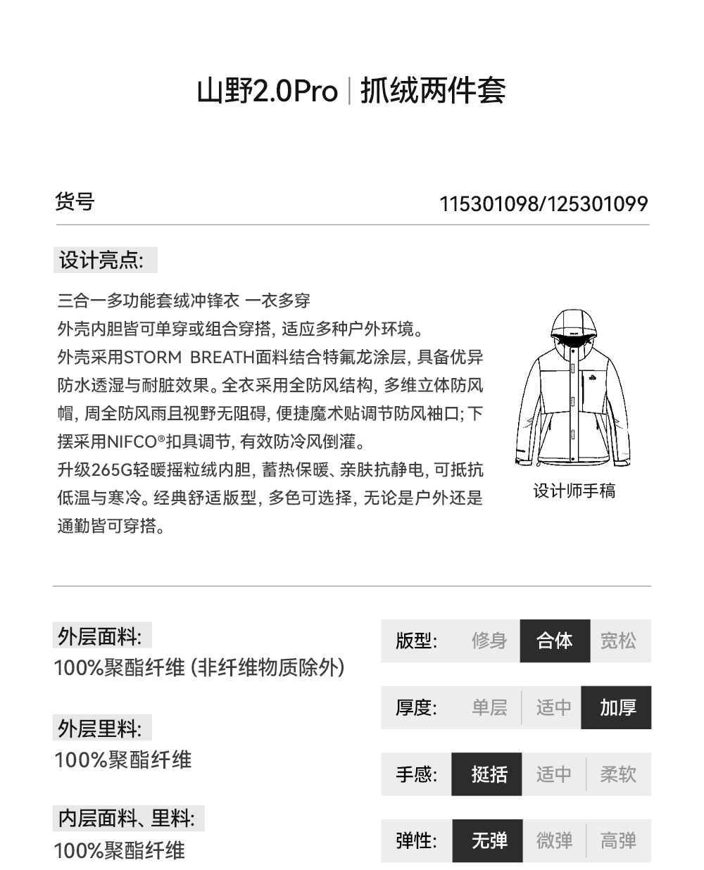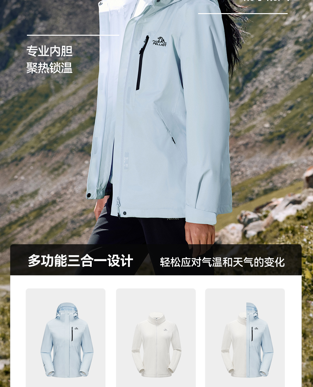 【经典2.0 Pro】伯希和户外三合一冲锋衣25新款保暖防水登山外套
