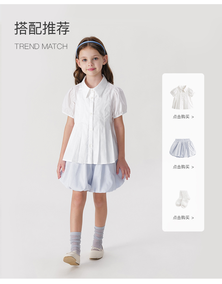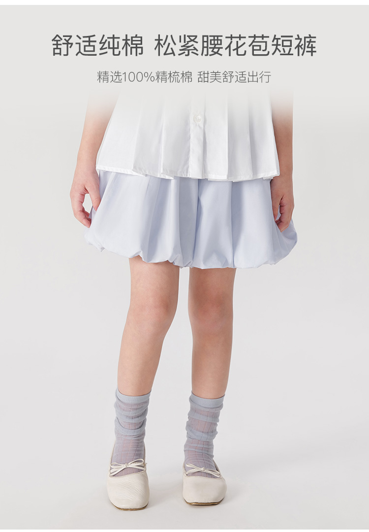 马克珍妮女童松紧腰纯棉花苞短裤儿童裤子2024年夏装新款240713