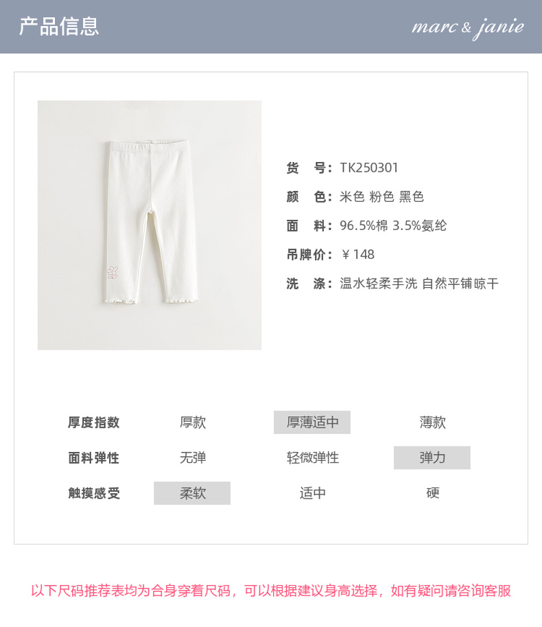马克珍妮女童可爱印花弹力打底裤 宝宝裤子2025年春装新款250301