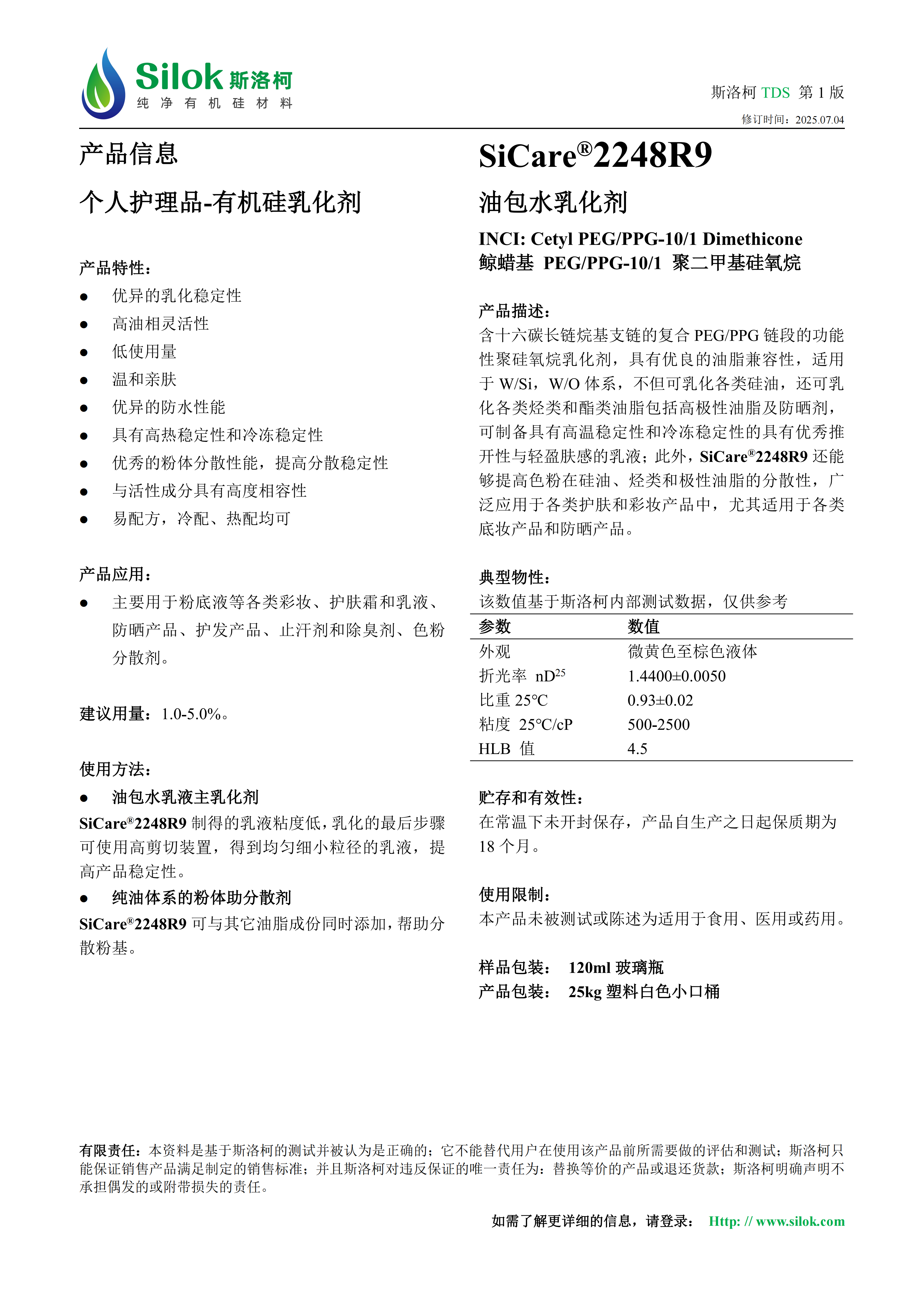 SiCare®2248R9 油包水乳化剂