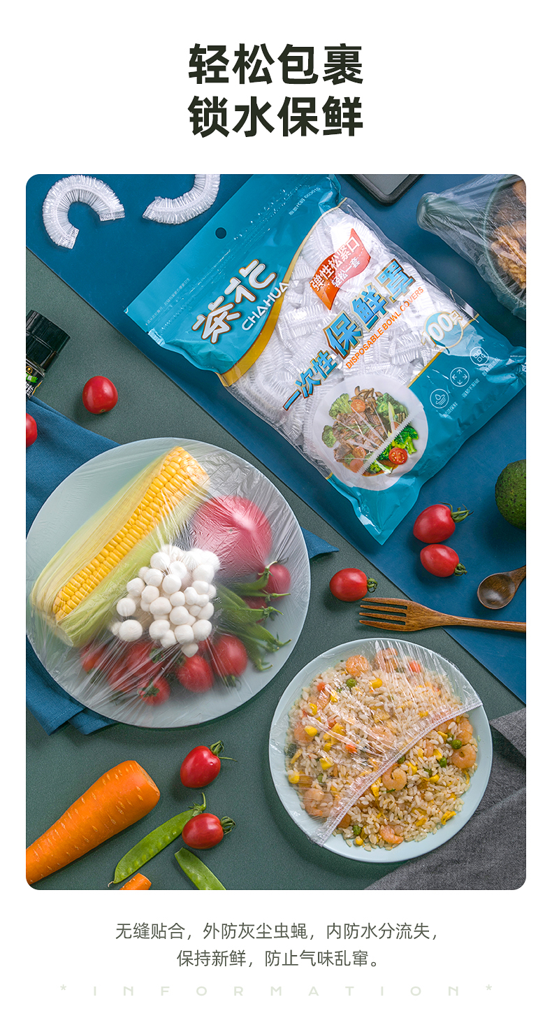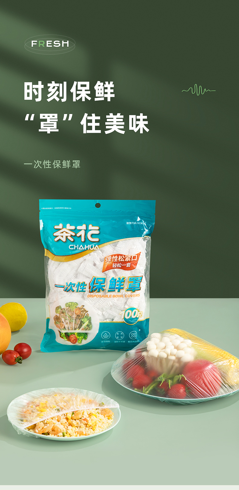 茶花一次性保鲜膜套罩带松紧食品家用冰箱专用保鲜袋套盘子100只