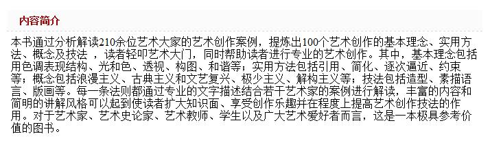 引言 . . . . . . . . . . . . .. . 8 1 抽象. . . . . . . . . . . . . . 10 2 寓言作品 . . . . . . . . . . 12 3 暧昧性 . . . . . . . . . . . . 14 4 挪用艺术 . . . . . . . . . . 16 5 能力领域 . . . . . . . . . . 18 6 真实性和局外人艺术 . . . . . . . . . . . . . 20 7 自画像 . . . . . . . . . . . . 22 8 平衡 . . . . . . . . . . . . . 24 9 美 . . . . . . . . . . . . . . . 26 10 边界 . . . . . . . . . . . . . 28 11 笔法 . . . . . . . . . . . . . 30 12 偶然性 . . . . . . . . . . . . 32 13 古典主义和文艺复兴 . . . . . . . . . . 34 14 拼贴艺术和装配艺术 . . . . . . . . . . 36 15 光和色 . . . . . . . . . . . . 38 16 颜色限制 . . . . . . . . . . 40 17 色彩理论 . . . . . . . . . . 42 18 构图. . . . . . . . . . . . . . 44 19 概念艺术 . . . . . . . . . . 46 20 视觉语言的一致性 . . . . 48 21 工艺 . . . . . . . . . . . . . . 50 22 创造性思维 . . . . . . . . 52 23 跨文化交融 . . . . . . . . 54 24 立体主义 . . . . . . . . . . 56 25 达达主义 . . . . . . . . . . 58 26 装饰 . . . . . . . . . . . . . 60 27 变形 . . . . . . . . . . . . . 62 28 疏密分布 . . . . . . . . . . 64 29 素描语言 . . . . . . . . . . 66 30 表达情感之物 . . . . . . 68 31 艺术 . . . . . . . . . . 70 32 抽象表现 . . . . . . . . . . 72 33 奇幻艺术和虚构艺术 . . . . . . . . . . 74 34 光滑处理 . . . . . . . . . . 76 35 形式创新 . . . . . . . . . . 78 36 造型 . . . . . . . . . . . . . 80 37 性别 . . . . . . . . . . . . . 82 38 和谐 . . . . . . . . . . . . . 84 39 等级比例 . . . . . . . . . . 86 40 想象力 . . . . . . . . . . . . 88 41 装置艺术 . . . . . . . . . . 90 42 意图性 . . . . . . . . . . . . 92 43 交互艺术 . . . . . . . . . . 94 44 并置 . . . . . . . . . . . . . . 96 45 动态艺术 . . . . . . . . . . 98 46 大地艺术 . . . . . . . . . 100 47 色层 . . . . . . . . . . . . 102 48 线的基本知识 . . . . . 104 49 矫饰主义 . . . . . . . . . 106 50 重量感 . . . . . . . . . . . 108 51 材料的艺术性 . . . . . .110 52 极简主义 . . . . . . . . . .112 53 综合媒介和 多媒体艺术 . . . . . . . .114 54 单位纹样 . . . . . . . . . .116 55 动感. . . . . . . . . . . . . .118 56 叙述 . . . . . . . . . . . . 120 57 光效应艺术 . . . . . . . 122 58 过量信息 . . . . . . . . . 124 59 行为艺术 . . . . . . . . . 126 60 透视 . . . . . . . . . . . . 128 61 可塑性 . . . . . . . . . . . 130 62 政治和辩论 . . . . . . . 132 63 准备和制作 . . . . . . . 134 64 版画 . . . . . . . . . . . . 136 65 过程传递含义 . . . . . 138 66 比例和比率 . . . . . . . 140 67 品质 . . . . . . . . . . . . 142 68 引用 . . . . . . . . . . . . . 144 69 现成品艺术 . . . . . . . 146 70 写实主义 . . . . . . . . . 148 71 宗教信仰 . . . . . . . . . 150 72 重复 . . . . . . . . . . . . 152 73 具象艺术 . . . . . . . . . 154 74 约束. . . . . . . . . . . . . 156 75 节奏. . . . . . . . . . . . . 158 76 浪漫主义 . . . . . . . . . 160 77 规模. . . . . . . . . . . . . 162 78 符号学 . . . . . . . . . . . 164 79 符号学之解构主义 . . . 165 80 敏感和感悟 . . . . . . . 166 81 形 . . . . . . . . . . . . . . 168 82 轰动 . . . . . . . . . . . . 170 83 简化 . . . . . . . . . . . . . 172 84 空间和体积 . . . . . . . .174 85 壮观 . . . . . . . . . . . . 176 86 风格和时尚 . . . . . . . 178 87 逐次逼近 . . . . . . . . . 180 88 精练而意繁 . . . . . . . 182 89 超现实主义 . . . . . . . 184 90 象征符号 . . . . . . . . . 186 91 对称 . . . . . . . . . . . . 187 92 临时艺术 . . . . . . . . . 188 93 肌理 . . . . . . . . . . . . 190 94 主题 . . . . . . . . . . . . 192 95 用色调表现结构 . . . 194 96 用笔触交流 . . . . . . . 196 97 部落艺术 . . . . . . . . . 198 98 视觉陷阱 . . . . . . . . . 200 99 单色起稿 . . . . . . . . . 202 100 影像艺术 . . . . . . . . 204 图片说明 . . . . . . . . 206 致谢 . . . . . . . . . . . 208 |