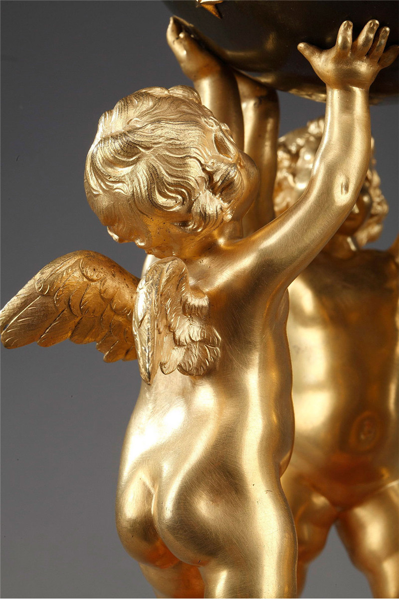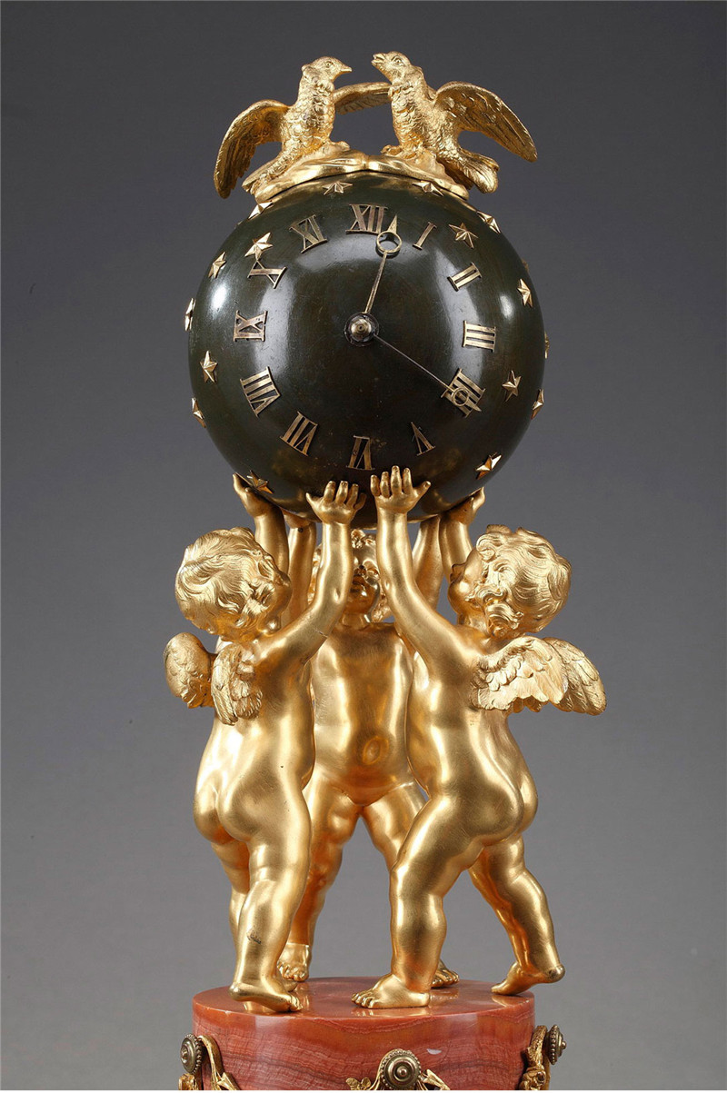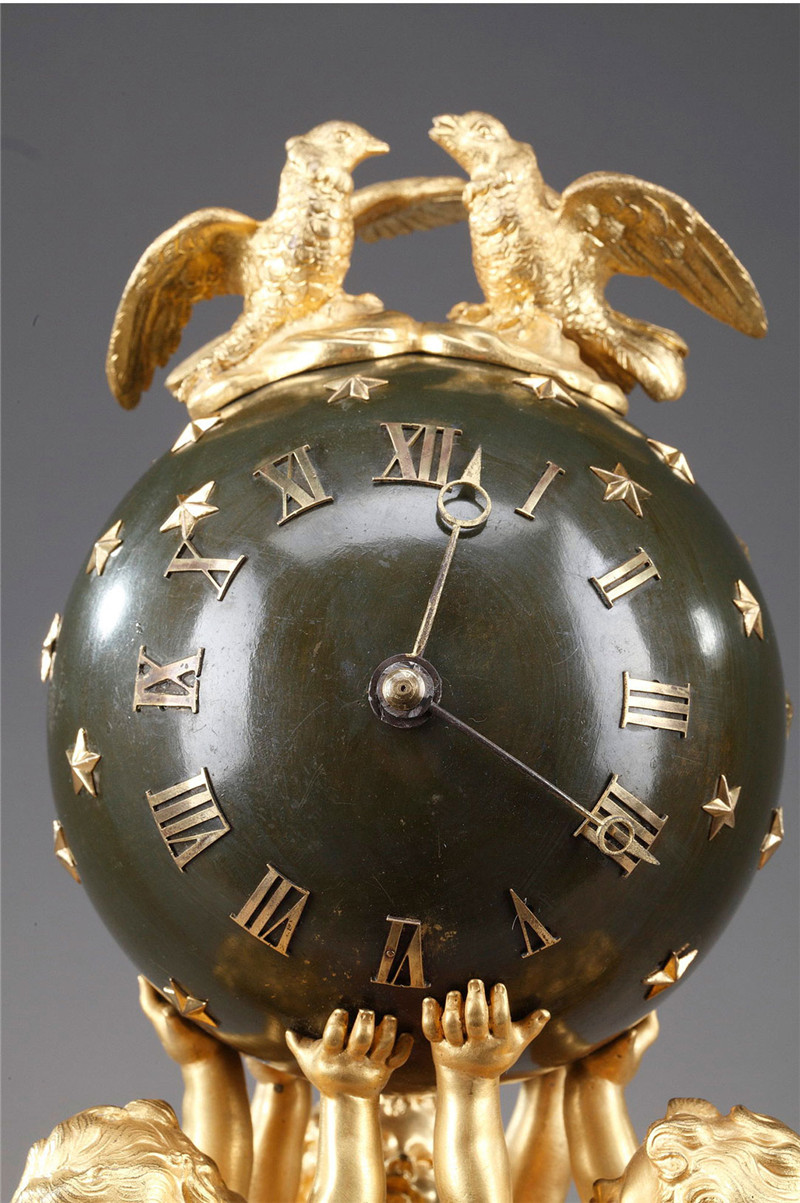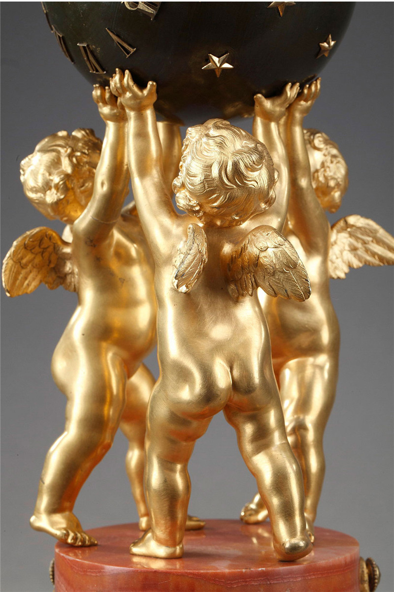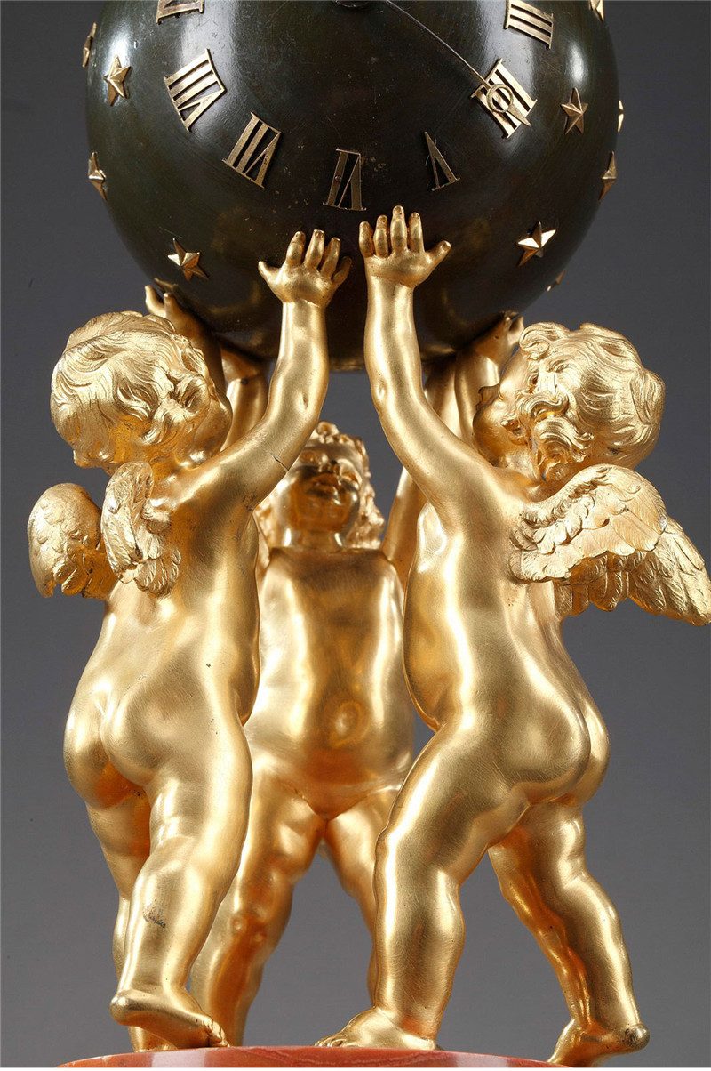 独角鹿西洋古董摆件法国青铜及铜鎏金小天使托举天球造型座钟