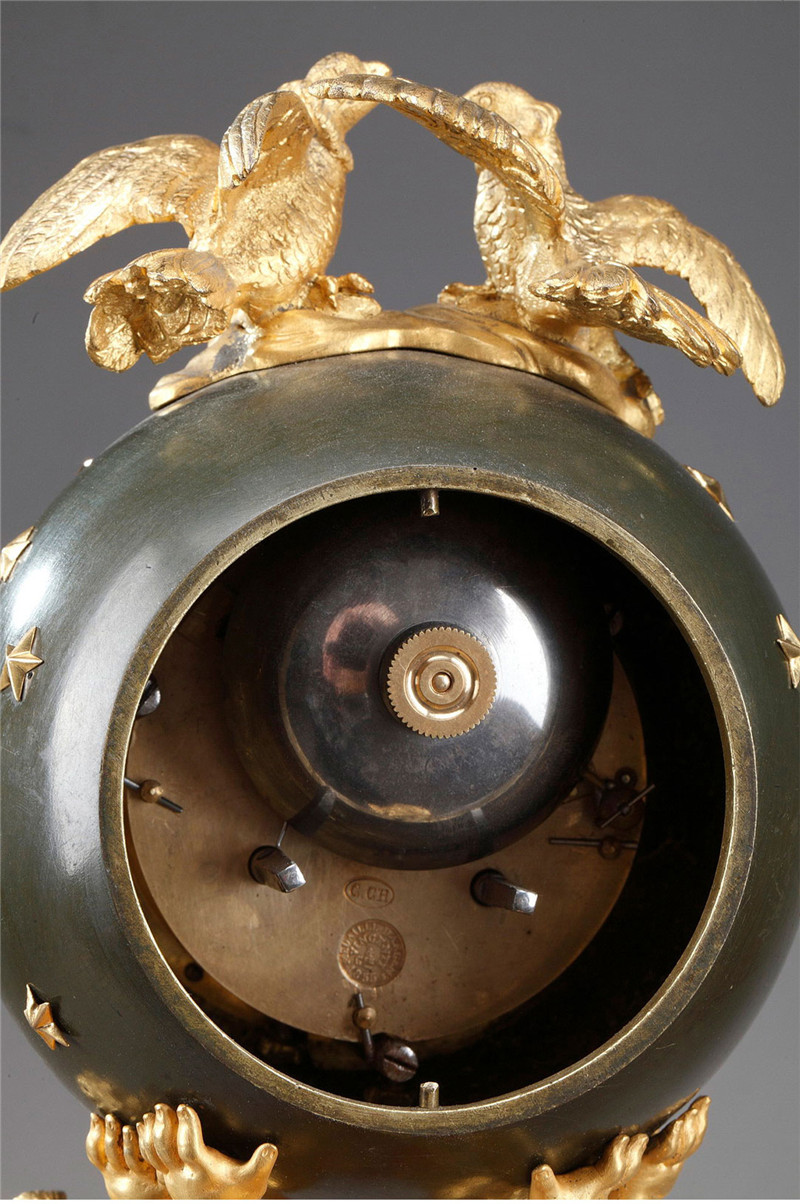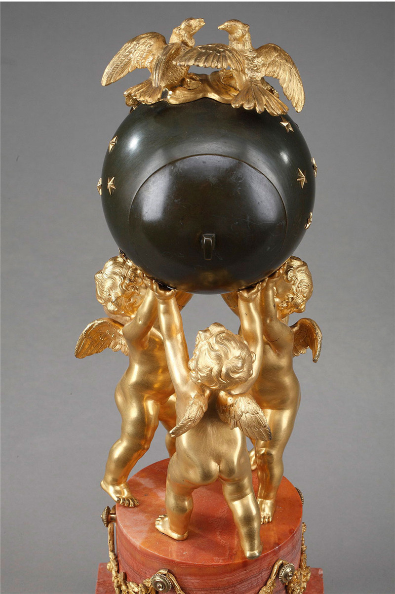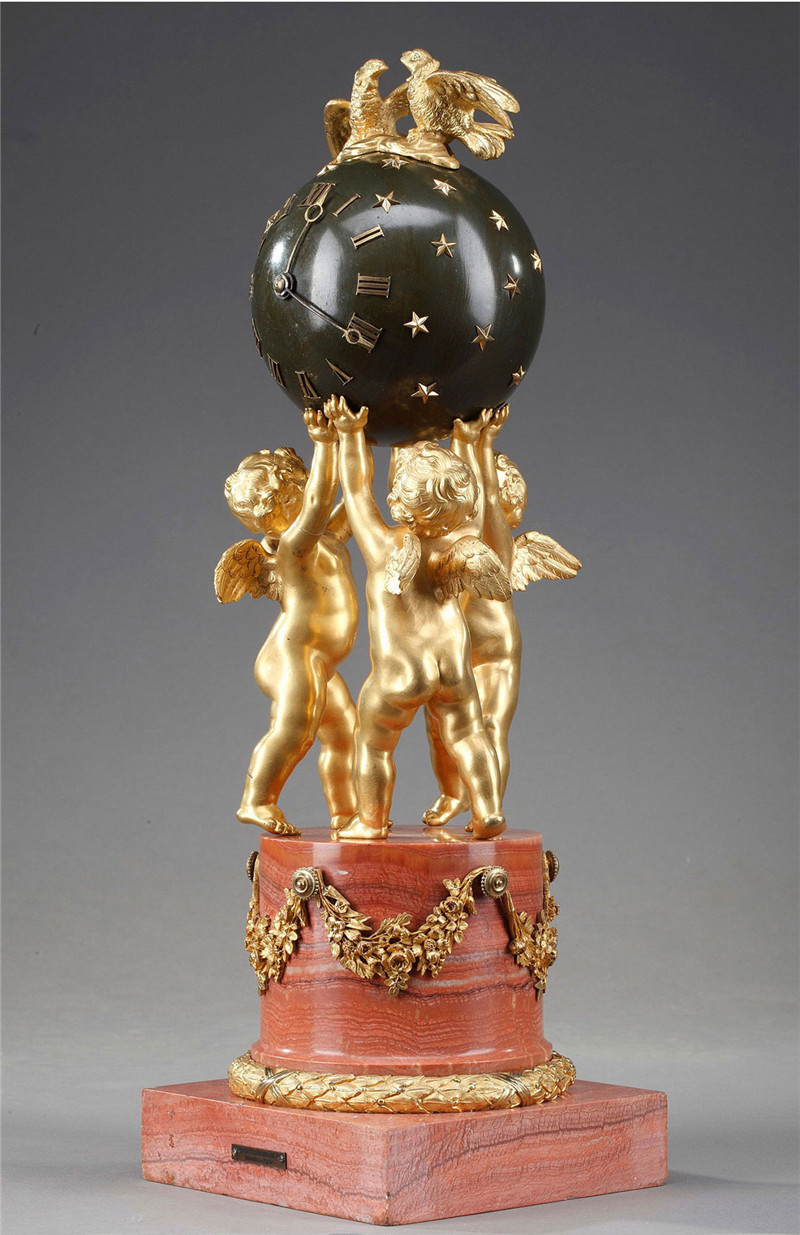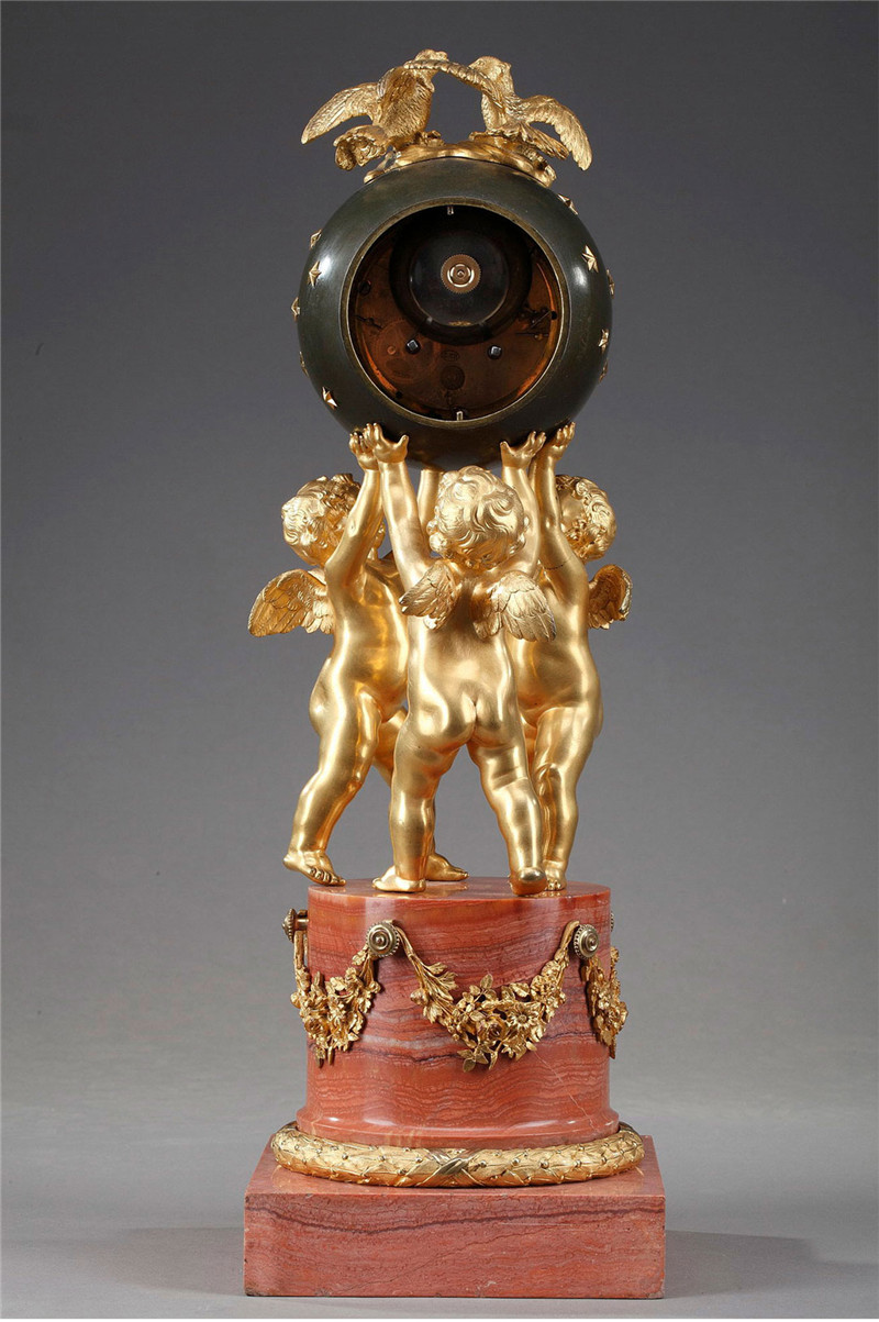 独角鹿西洋古董摆件法国青铜及铜鎏金小天使托举天球造型座钟