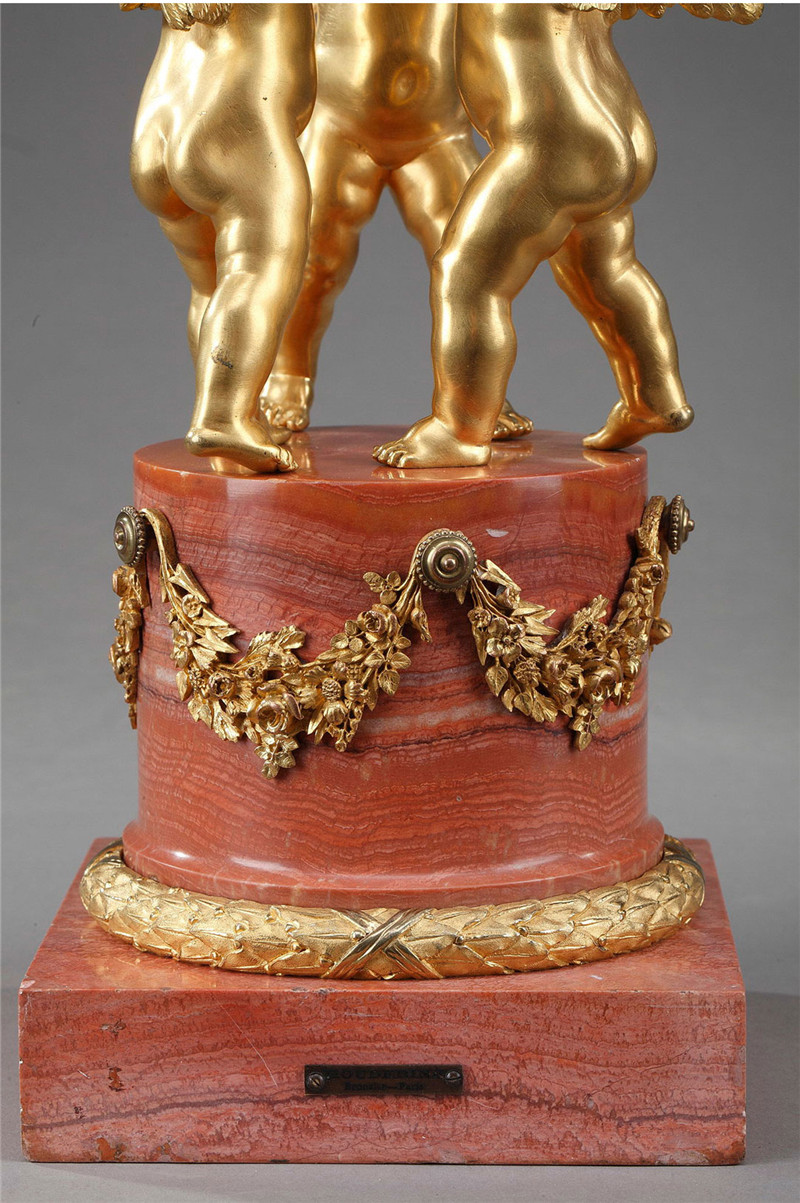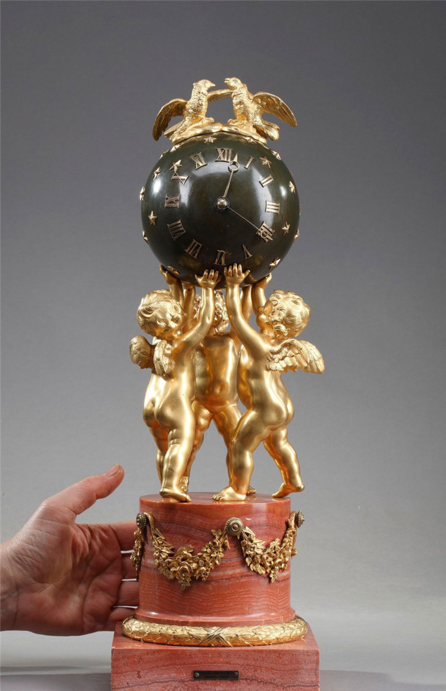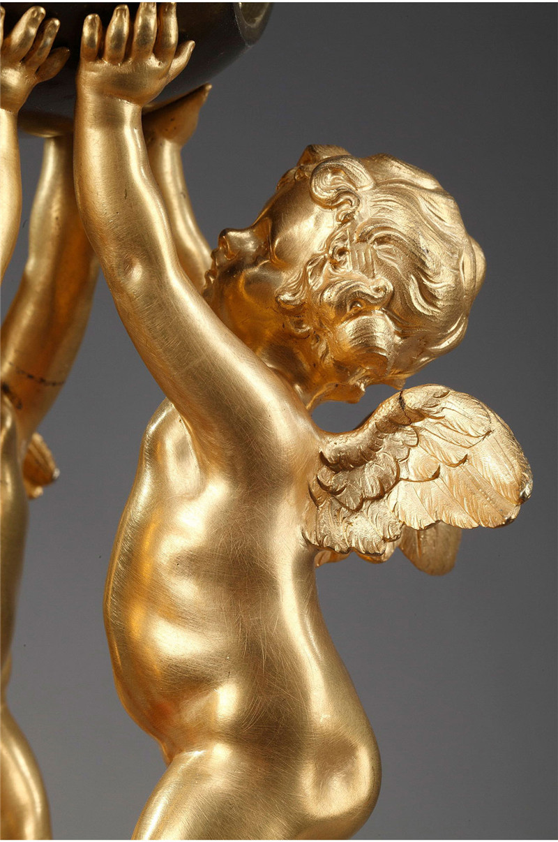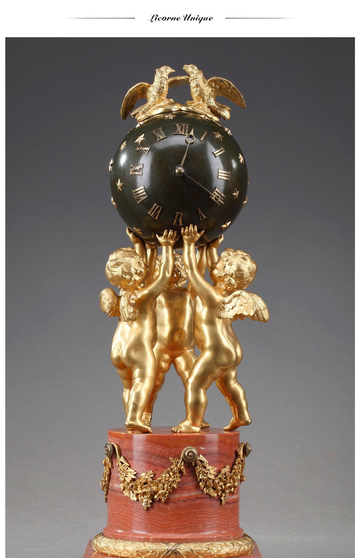 独角鹿西洋古董摆件法国青铜及铜鎏金小天使托举天球造型座钟