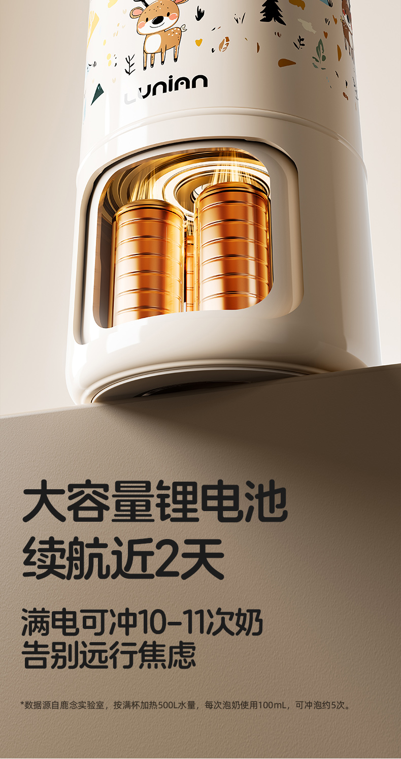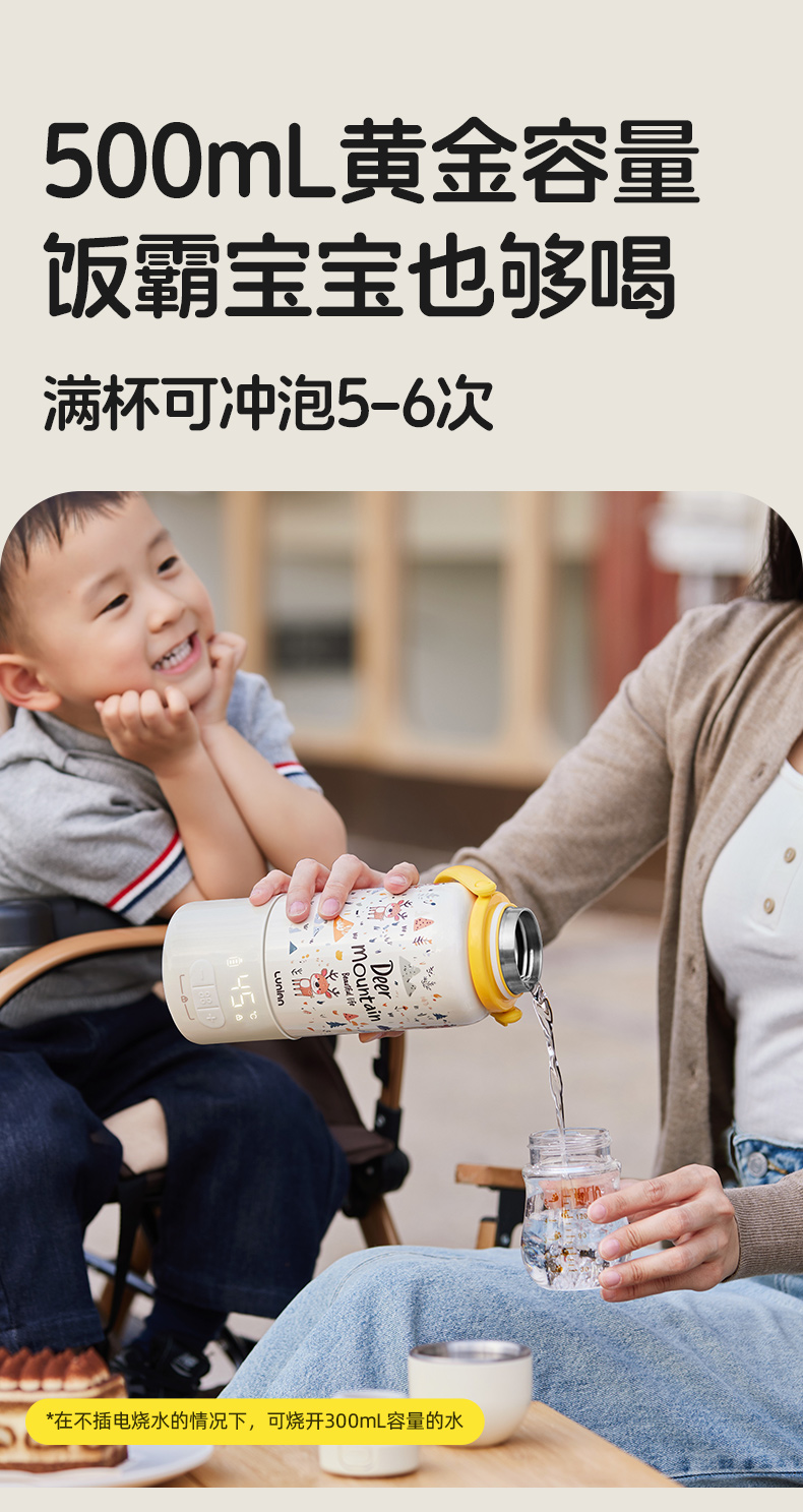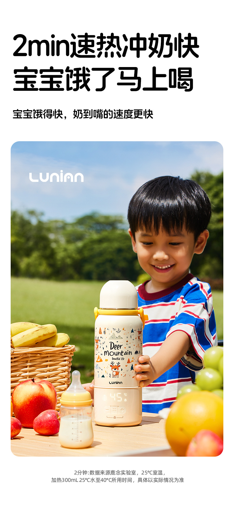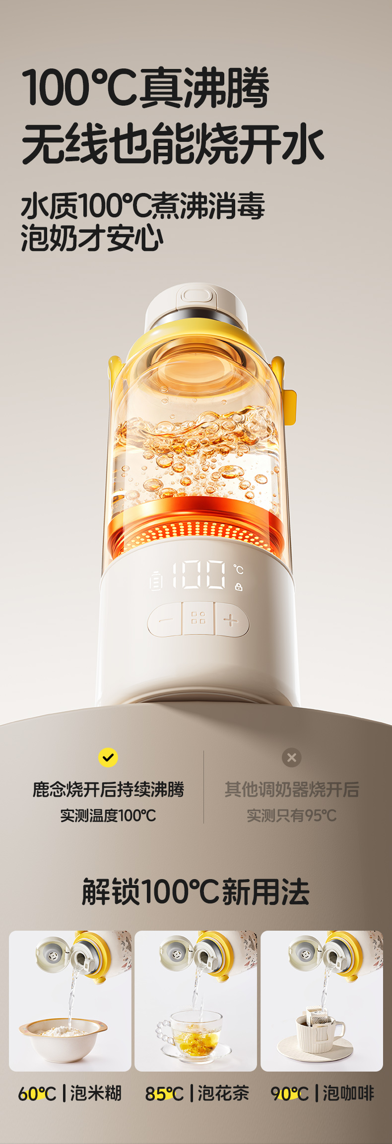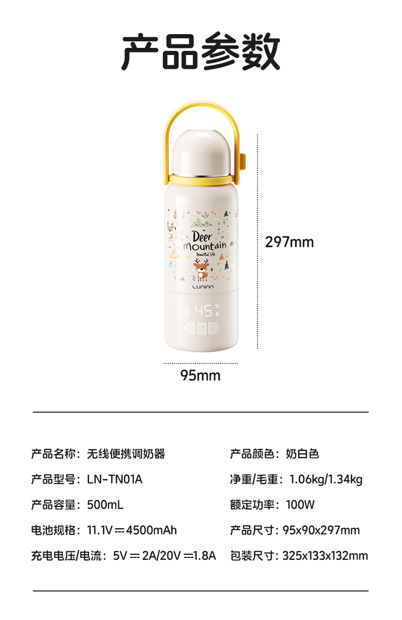 【宝宝一体烧水壶】鹿念一体式无线便携调奶器LN-TN01A 无线烧水100℃ 实时显温 2min速热 满电可冲10-11次奶 断电保温10h 支持边充边烧水 容量500ml