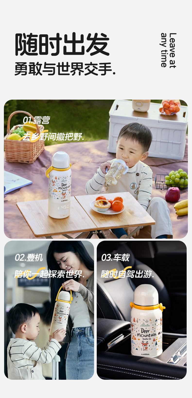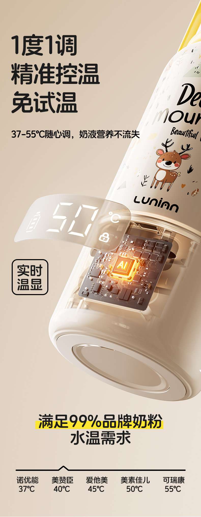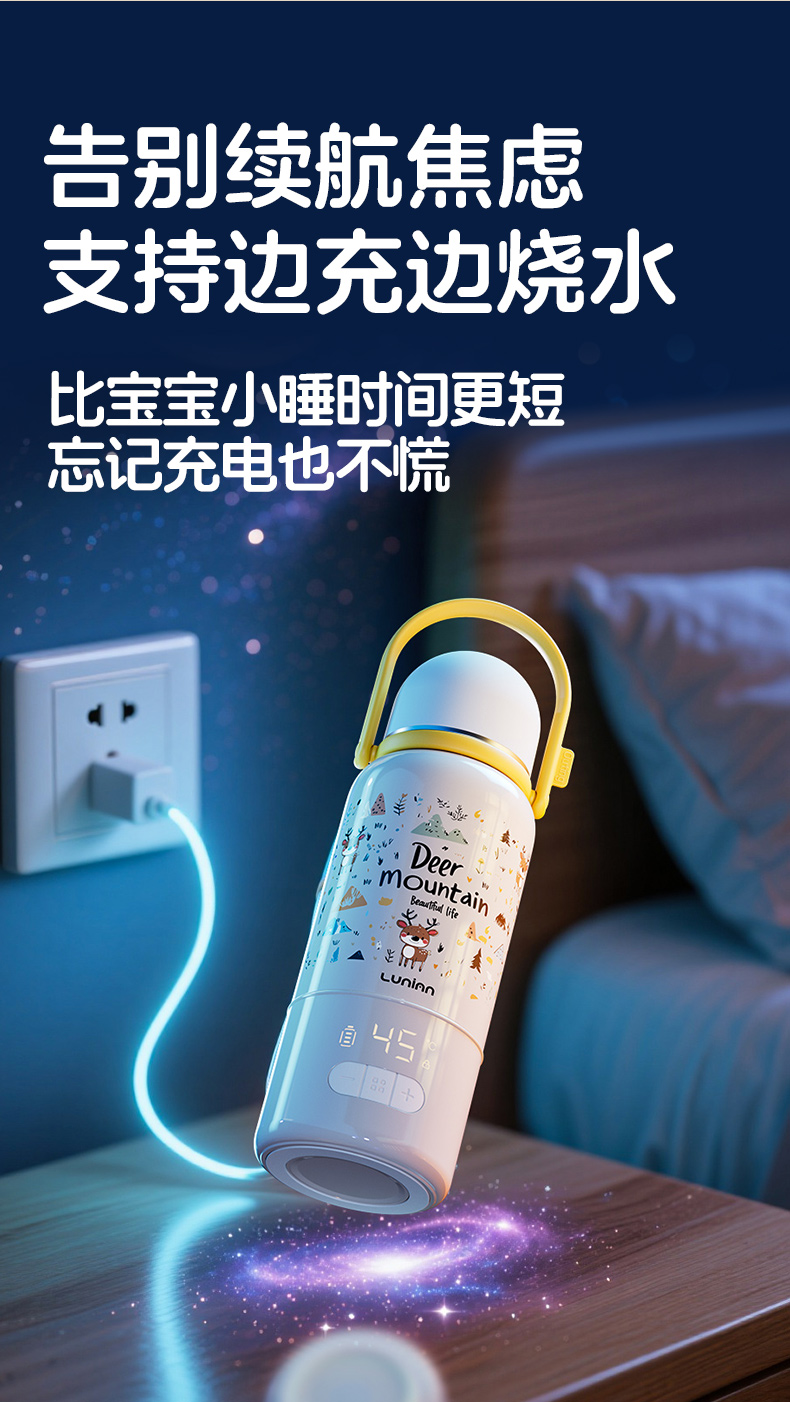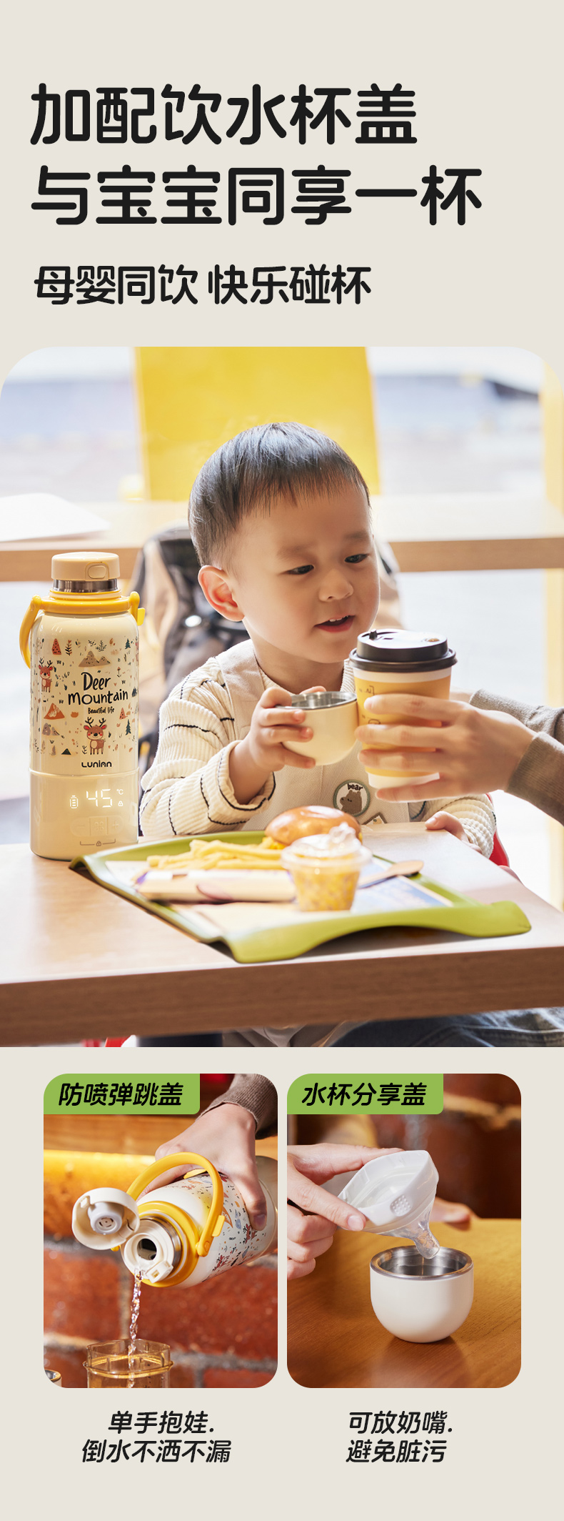 【宝宝一体烧水壶】鹿念一体式无线便携调奶器LN-TN01A 无线烧水100℃ 实时显温 2min速热 满电可冲10-11次奶 断电保温10h 支持边充边烧水 容量500ml