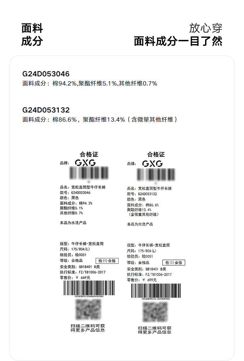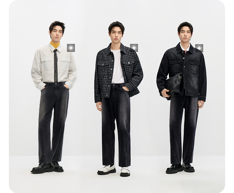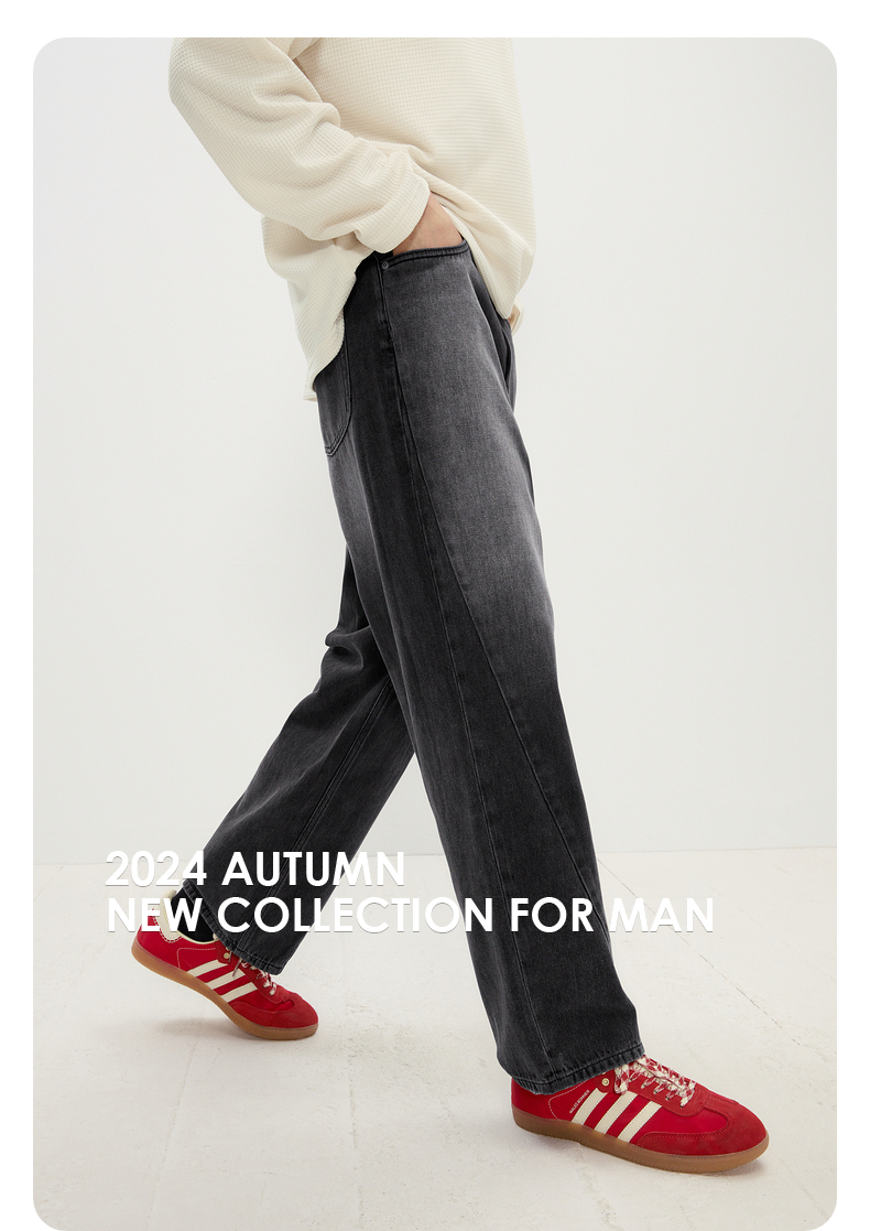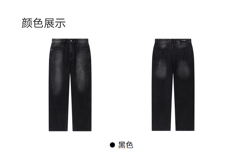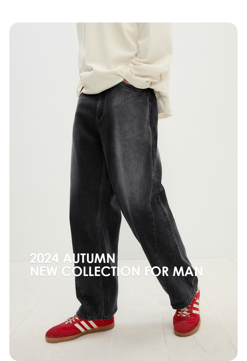 GXG男装 黑色渐变设计牛仔裤宽松直筒长裤男士裤子 2024秋季热卖