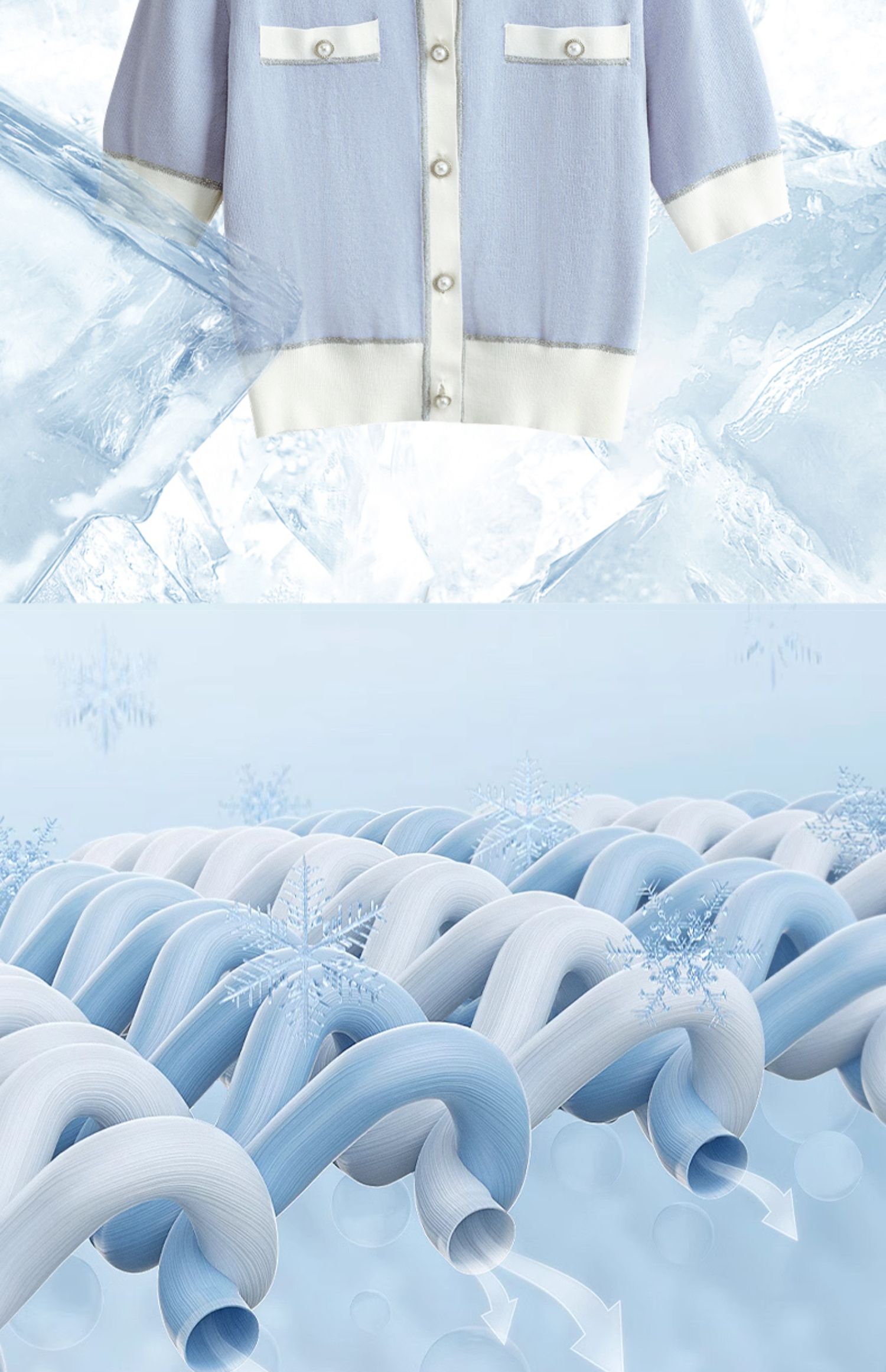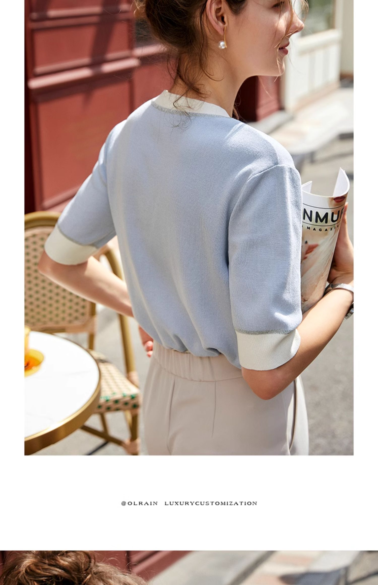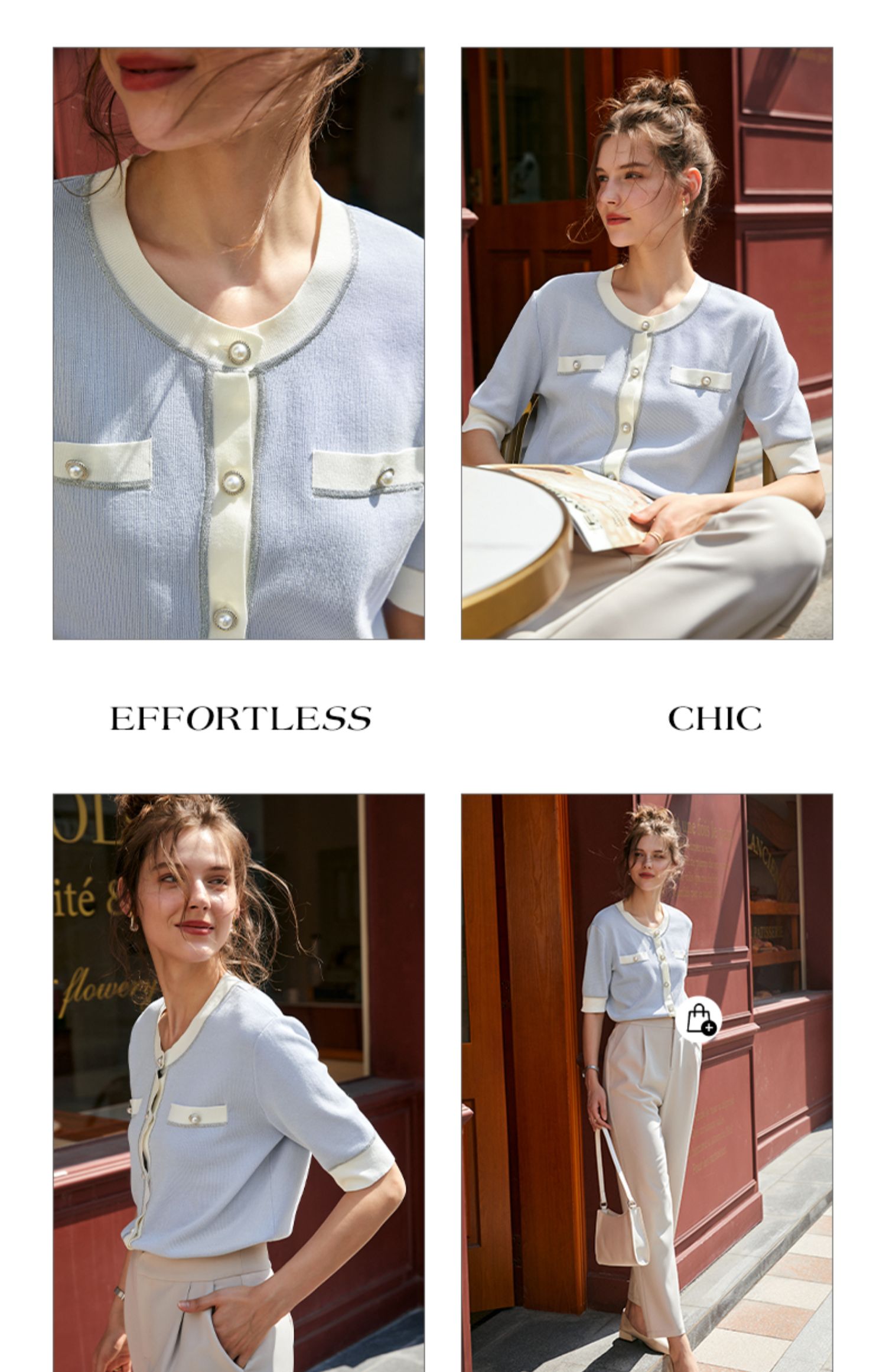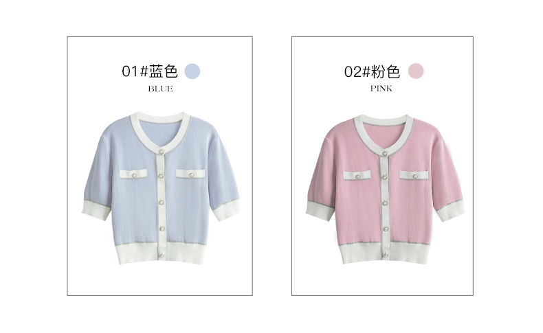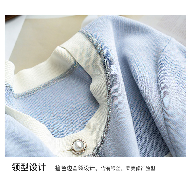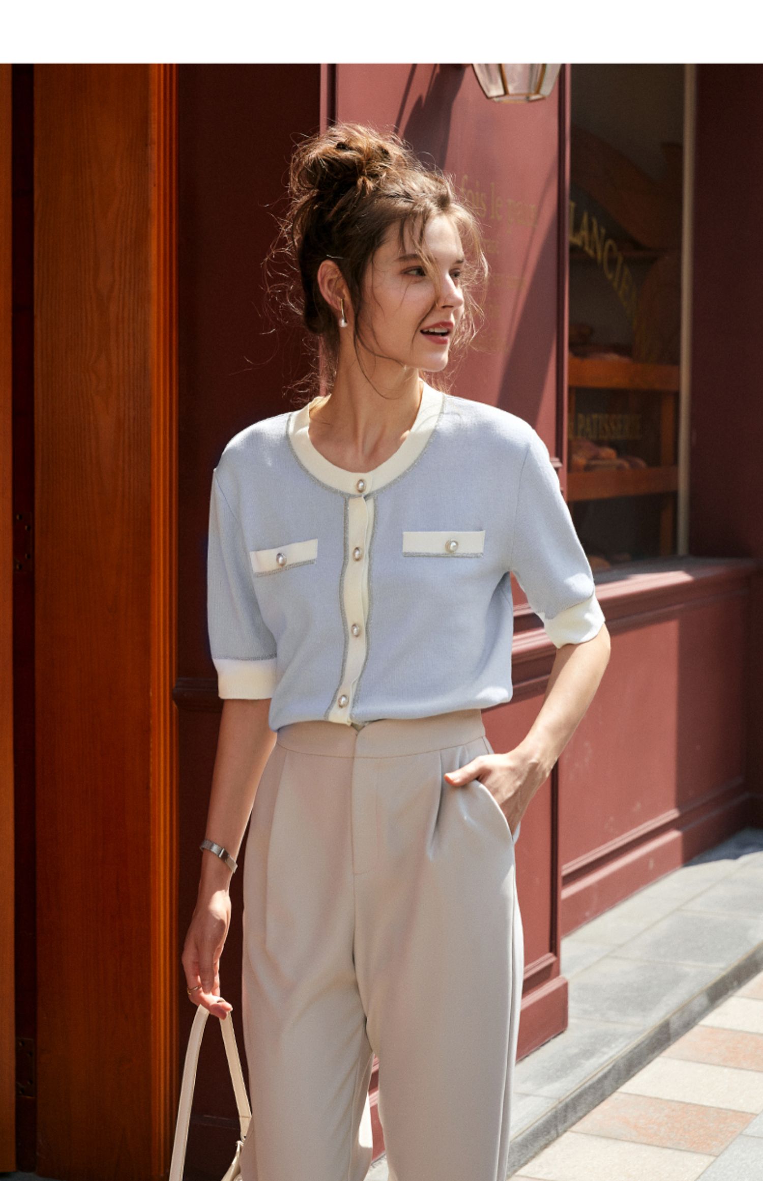 欧芮儿法式小香风针织开衫女夏季2024年新款短袖冰丝撞色毛衣外套