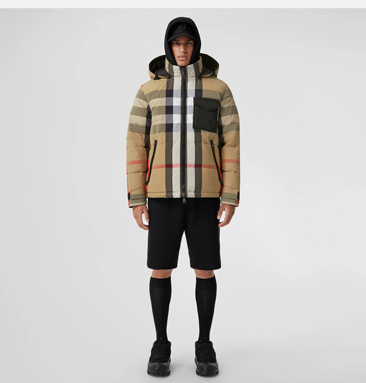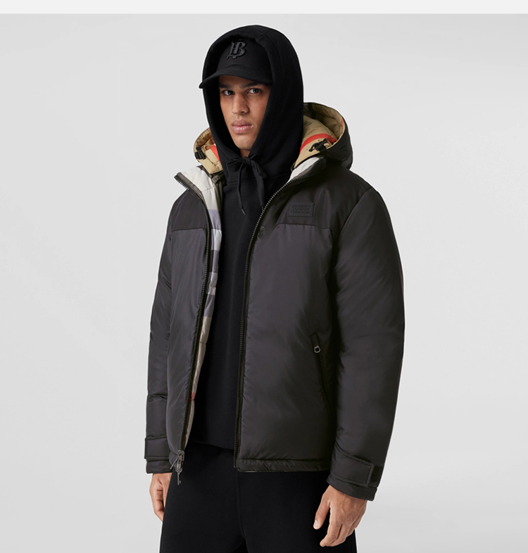 BURBERRY 巴宝莉 男士双面两穿格纹尼龙连帽羽绒服 格子 8064291 A7028