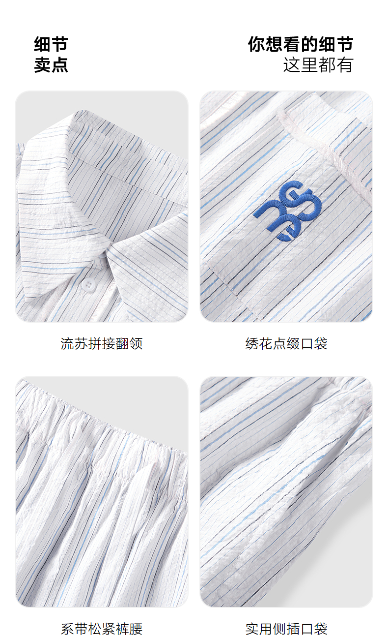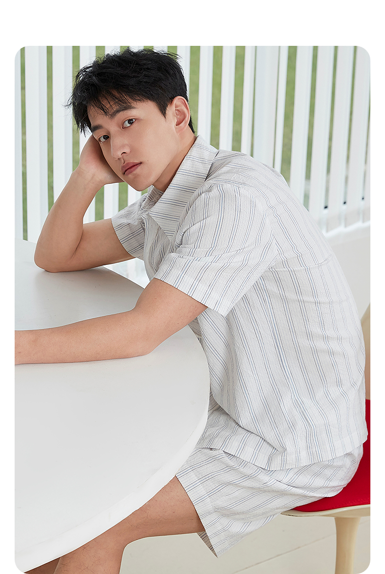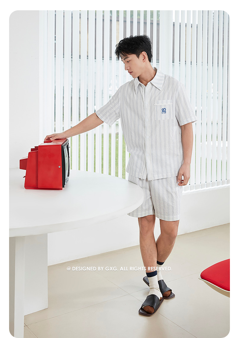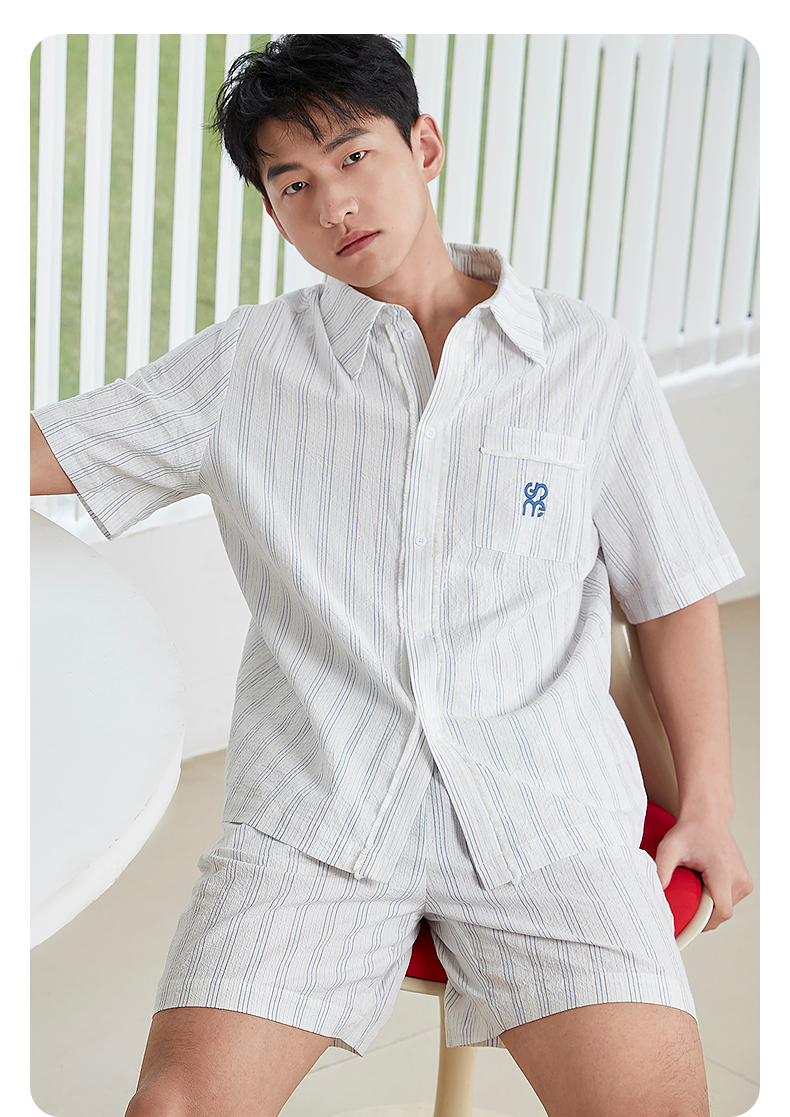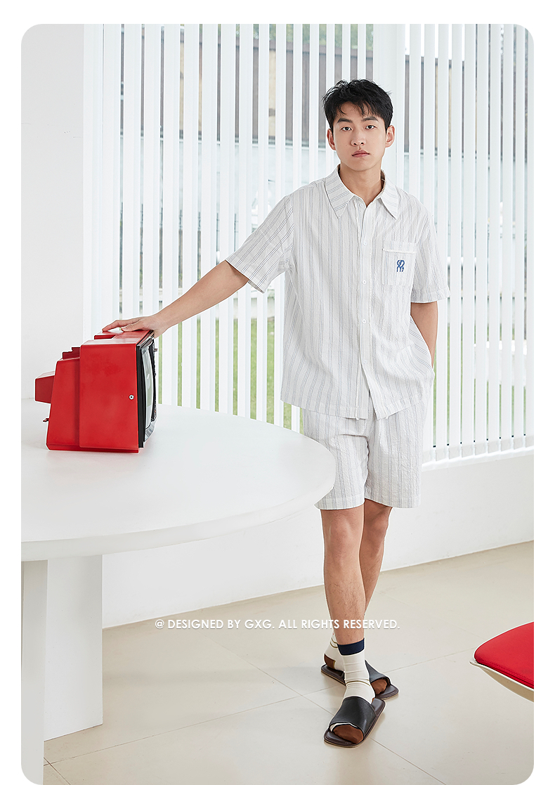 GXG男士家居服 清新条纹短袖睡衣套装男 25年春夏新品