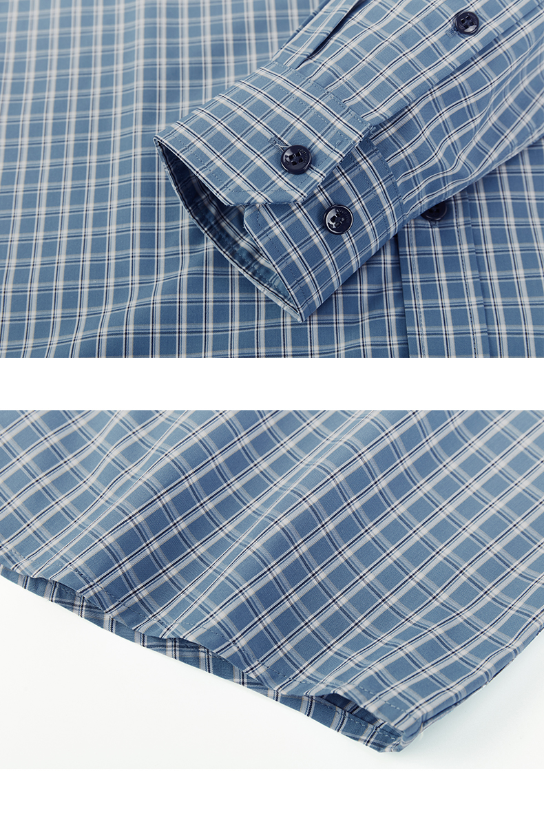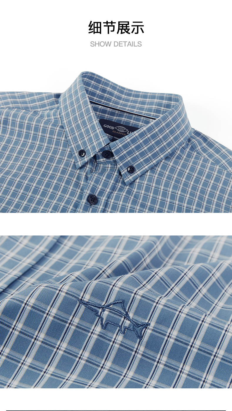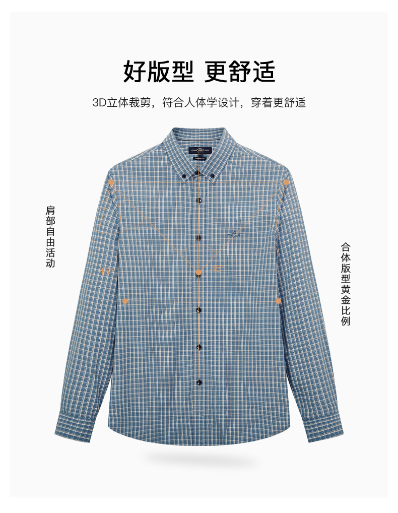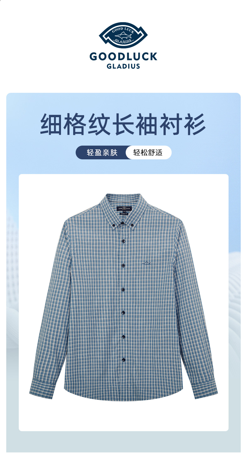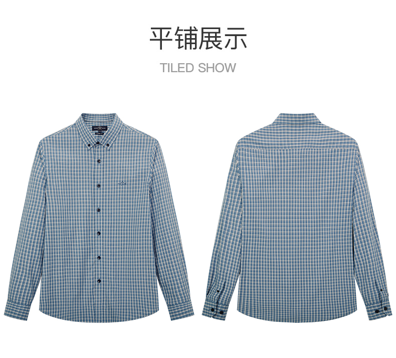 德鲨春新款蓝色格子衬衫男青年时尚休闲上衣男装长袖衬衣