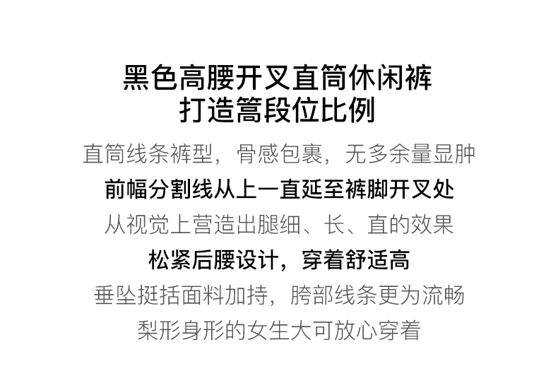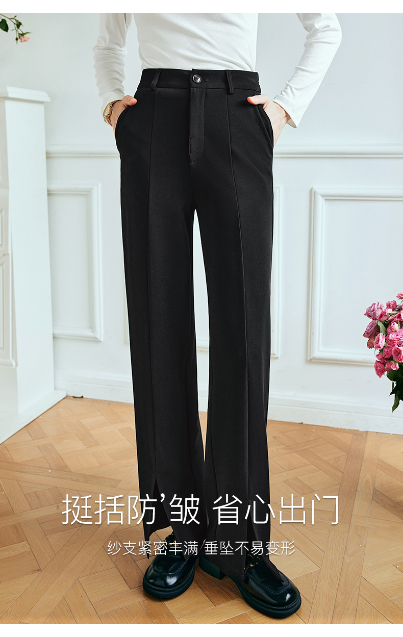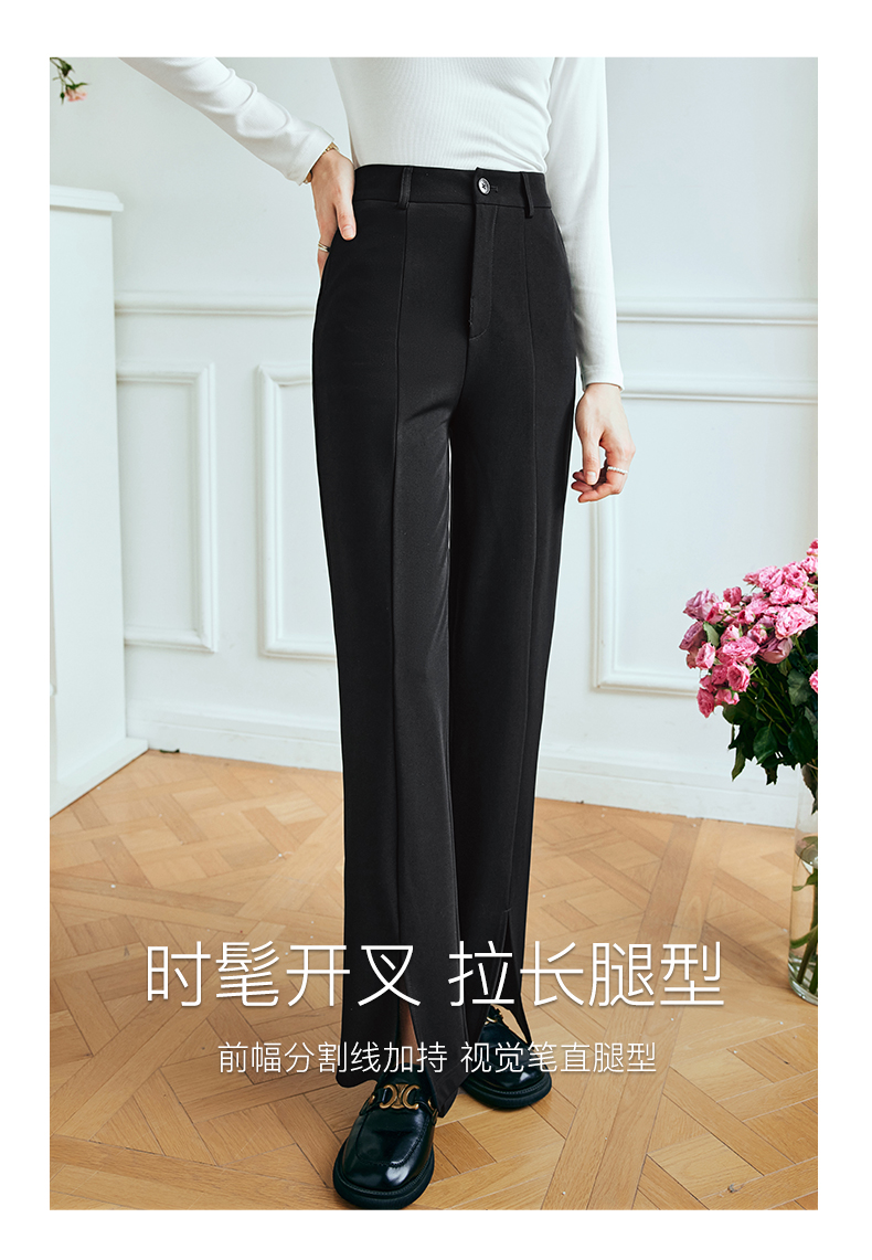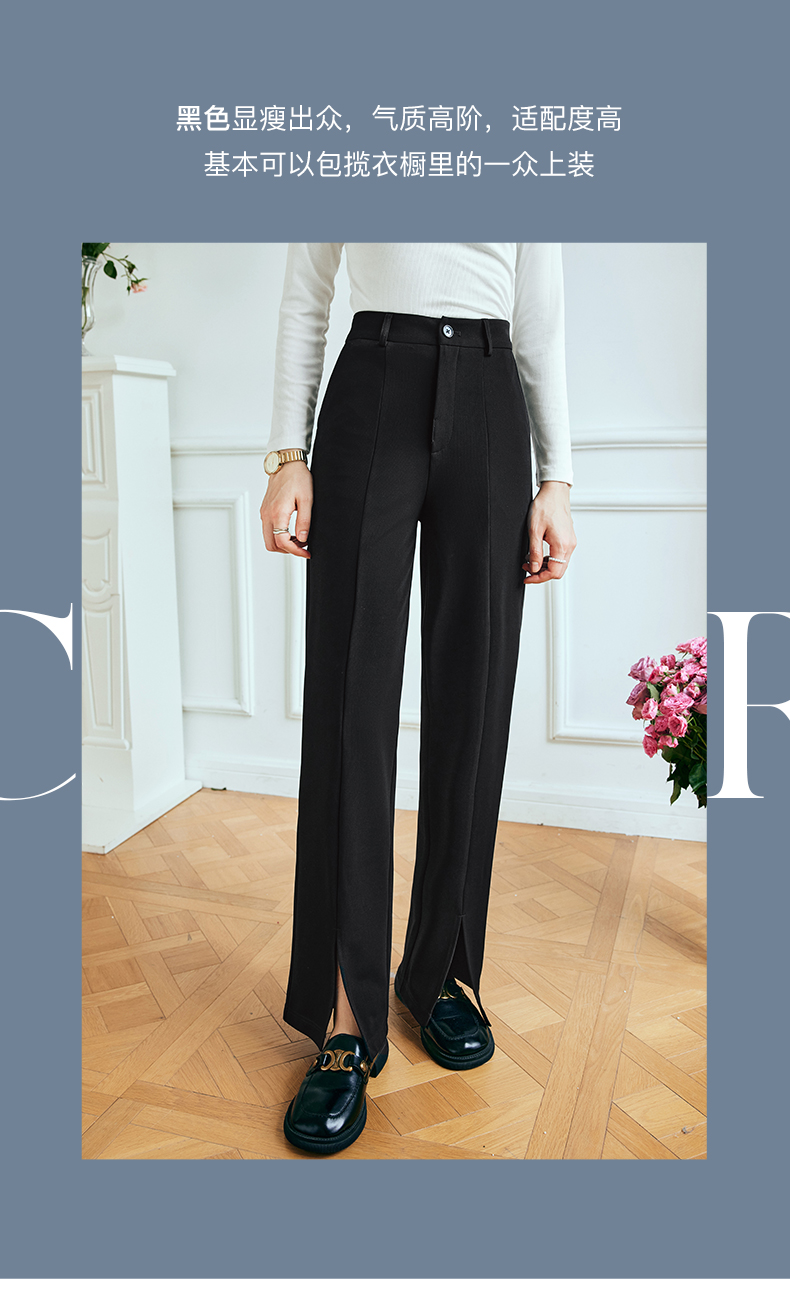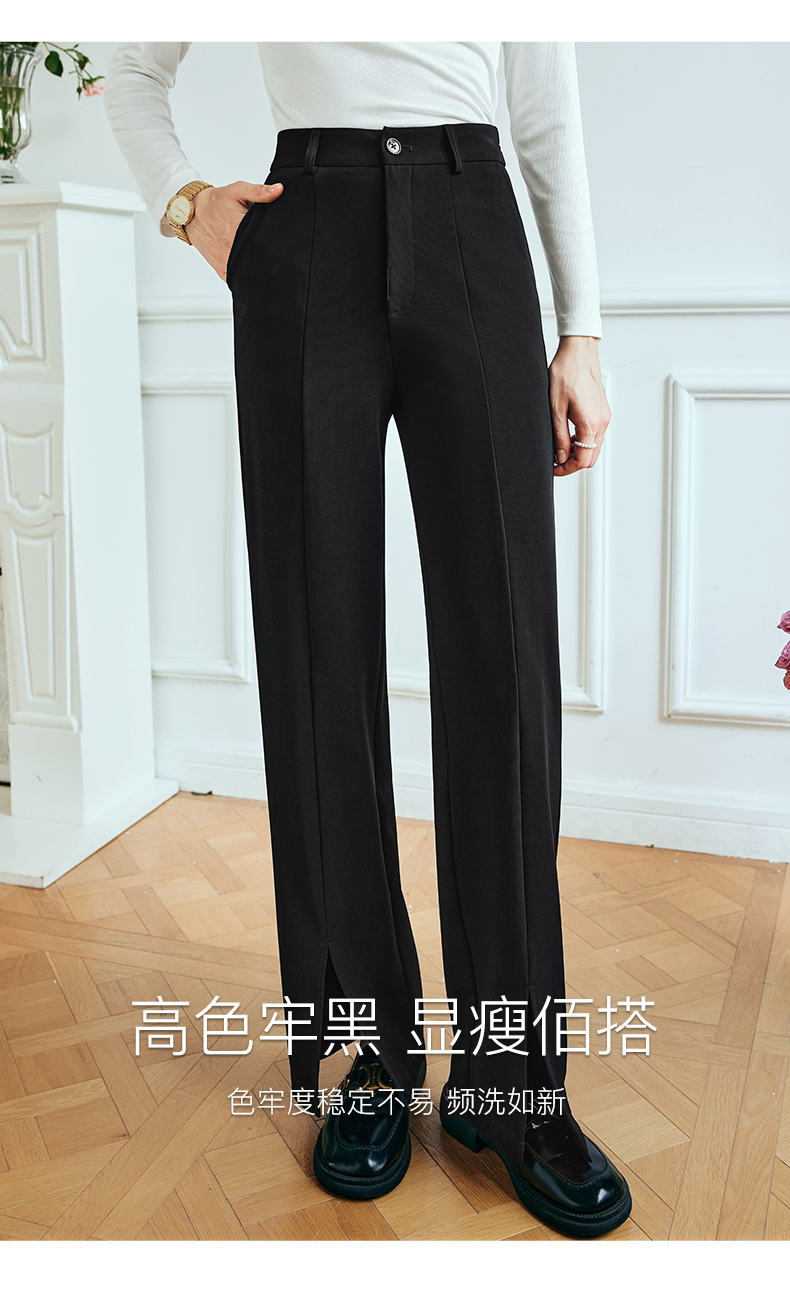 OLrain欧芮儿法式黑色休闲裤女夏季2023新款高腰直筒开叉遮胯裤子