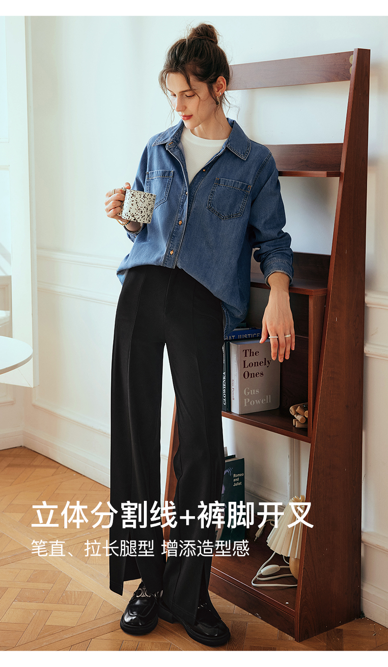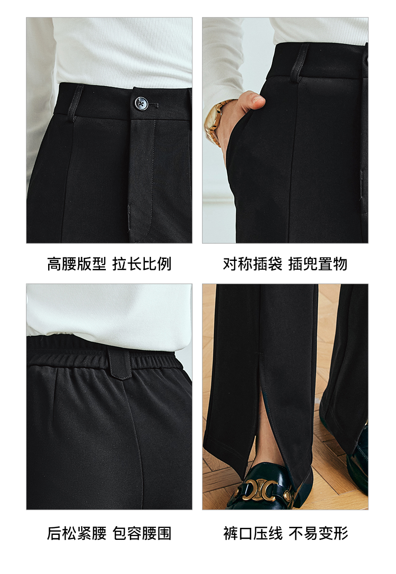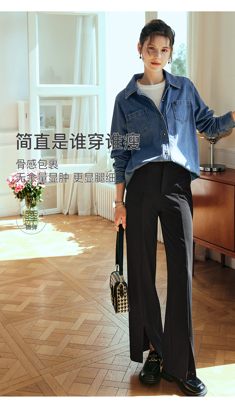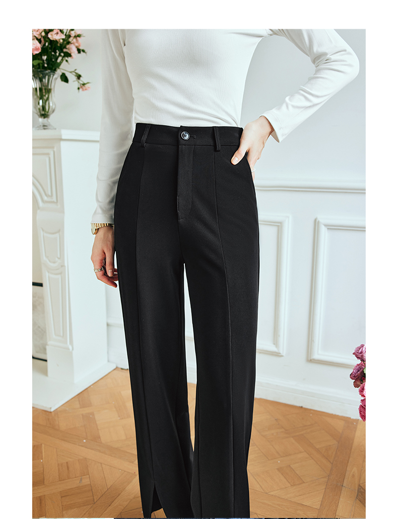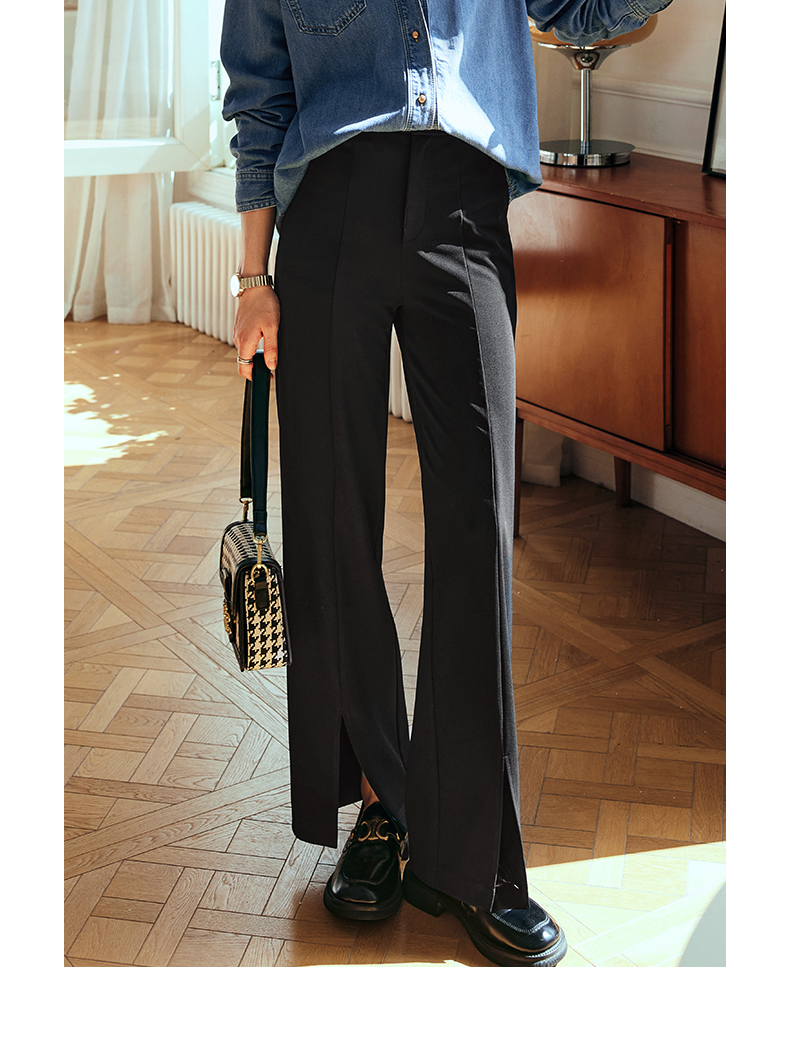 OLrain欧芮儿法式黑色休闲裤女夏季2023新款高腰直筒开叉遮胯裤子