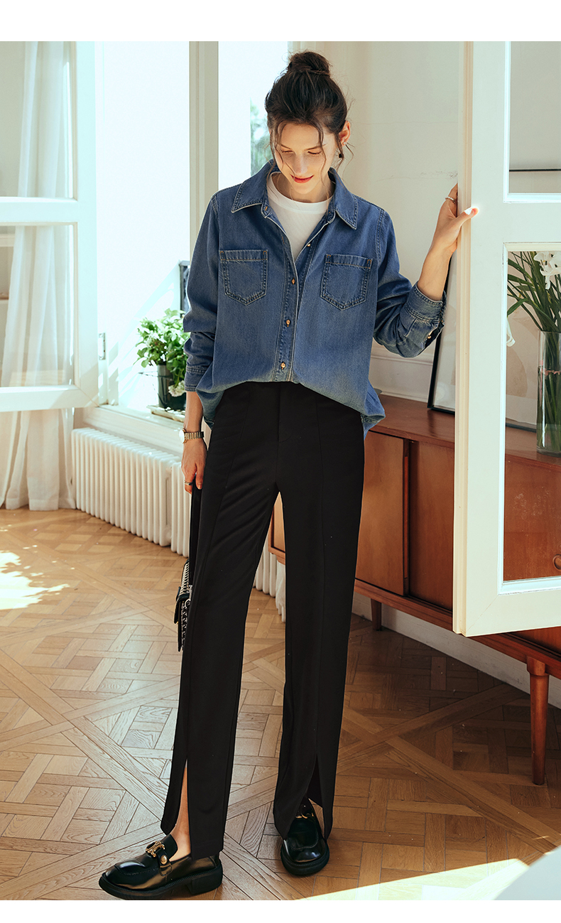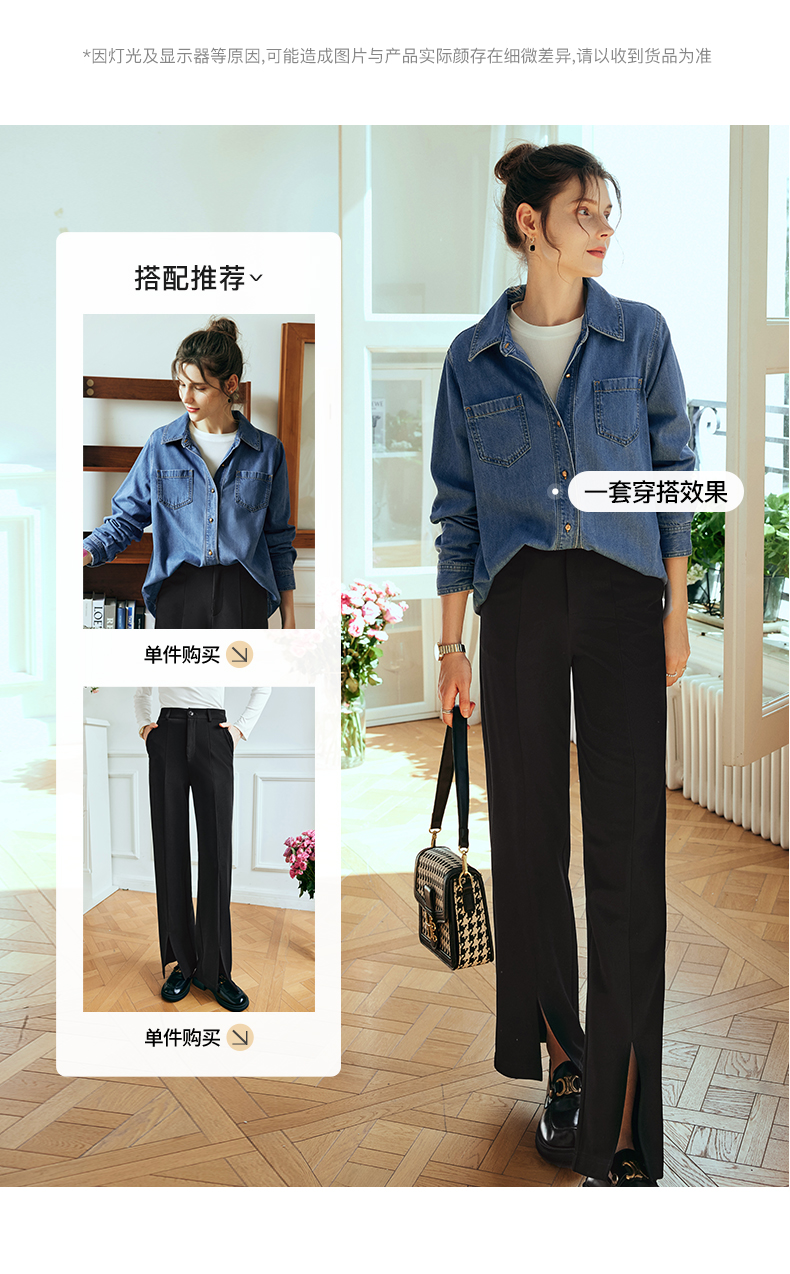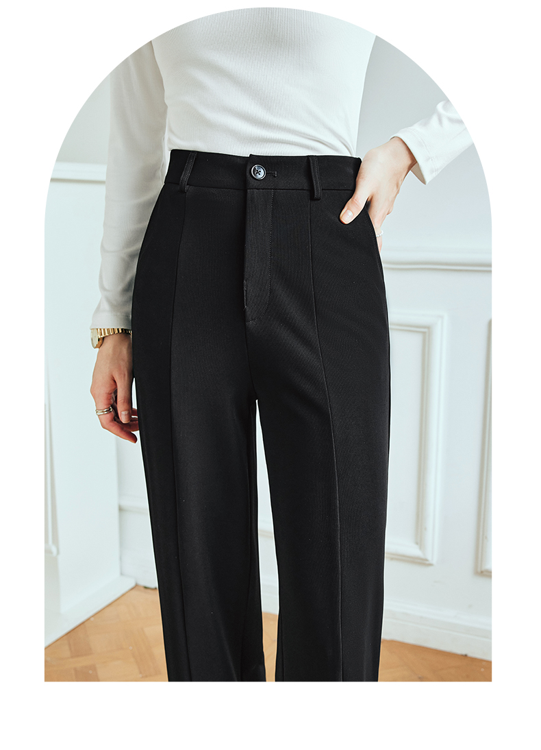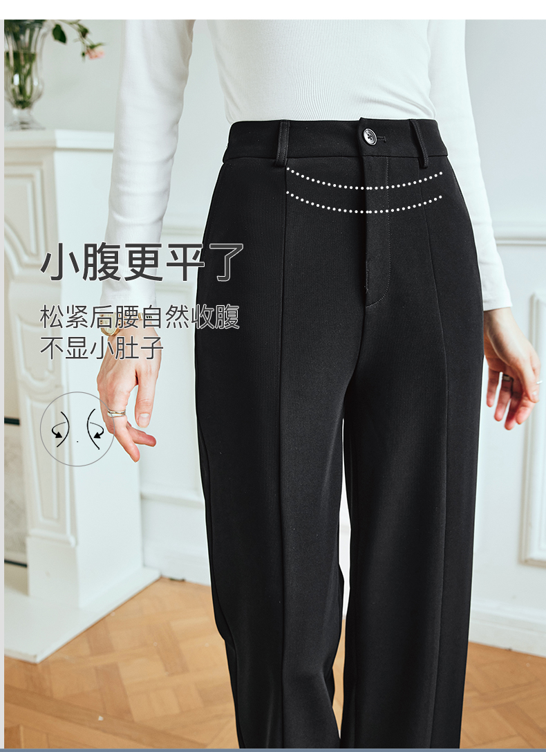 OLrain欧芮儿法式黑色休闲裤女夏季2023新款高腰直筒开叉遮胯裤子