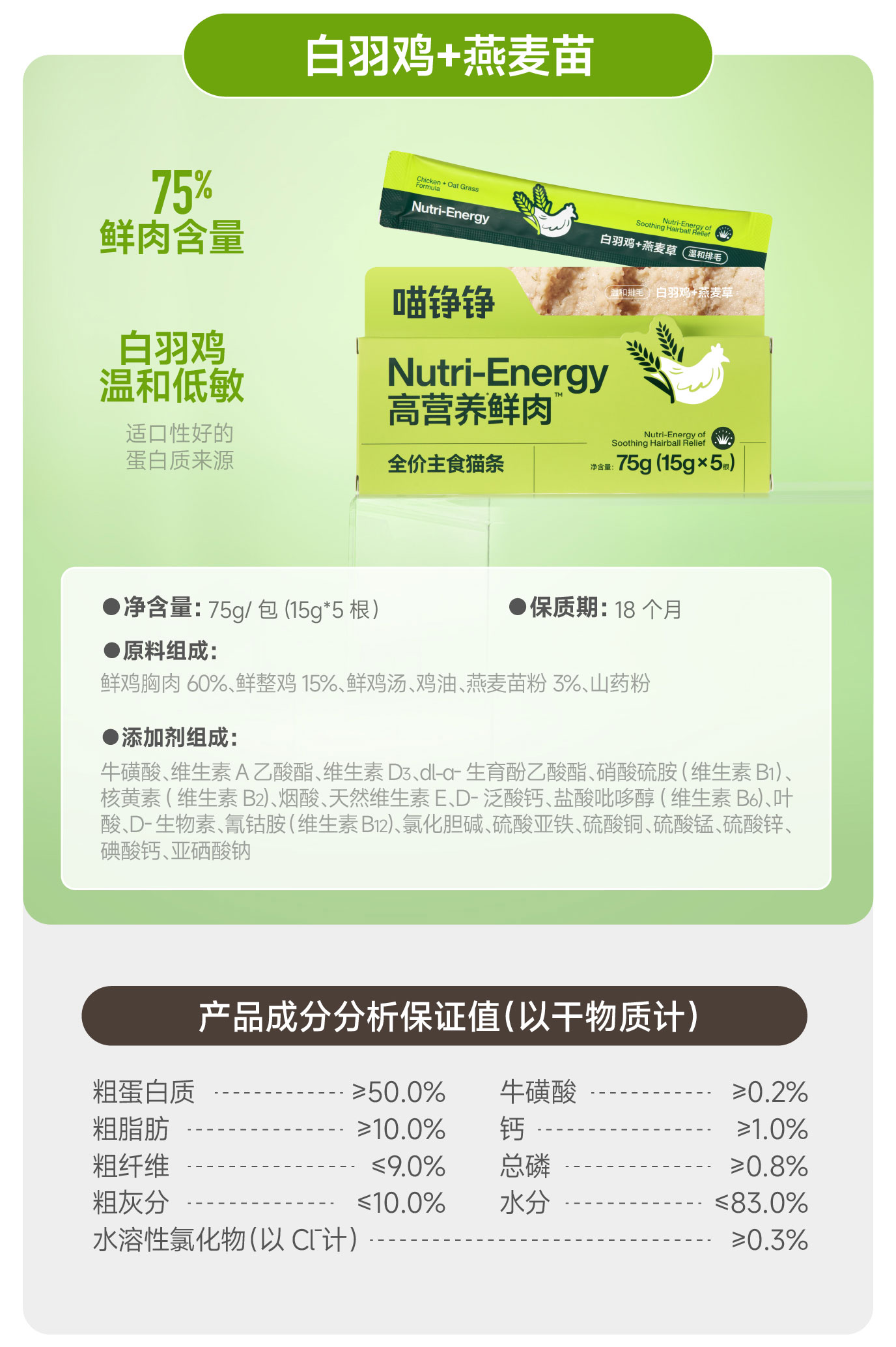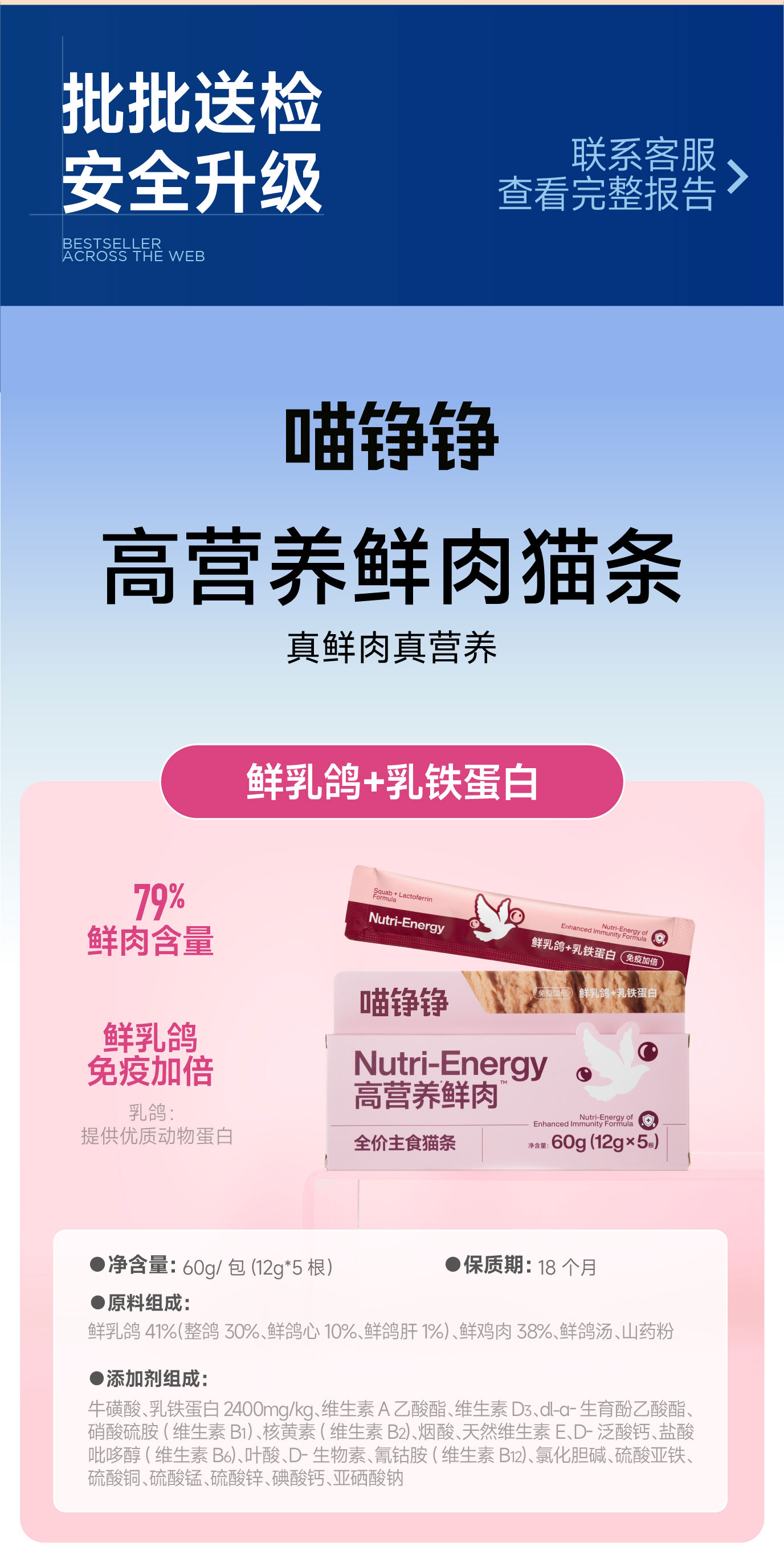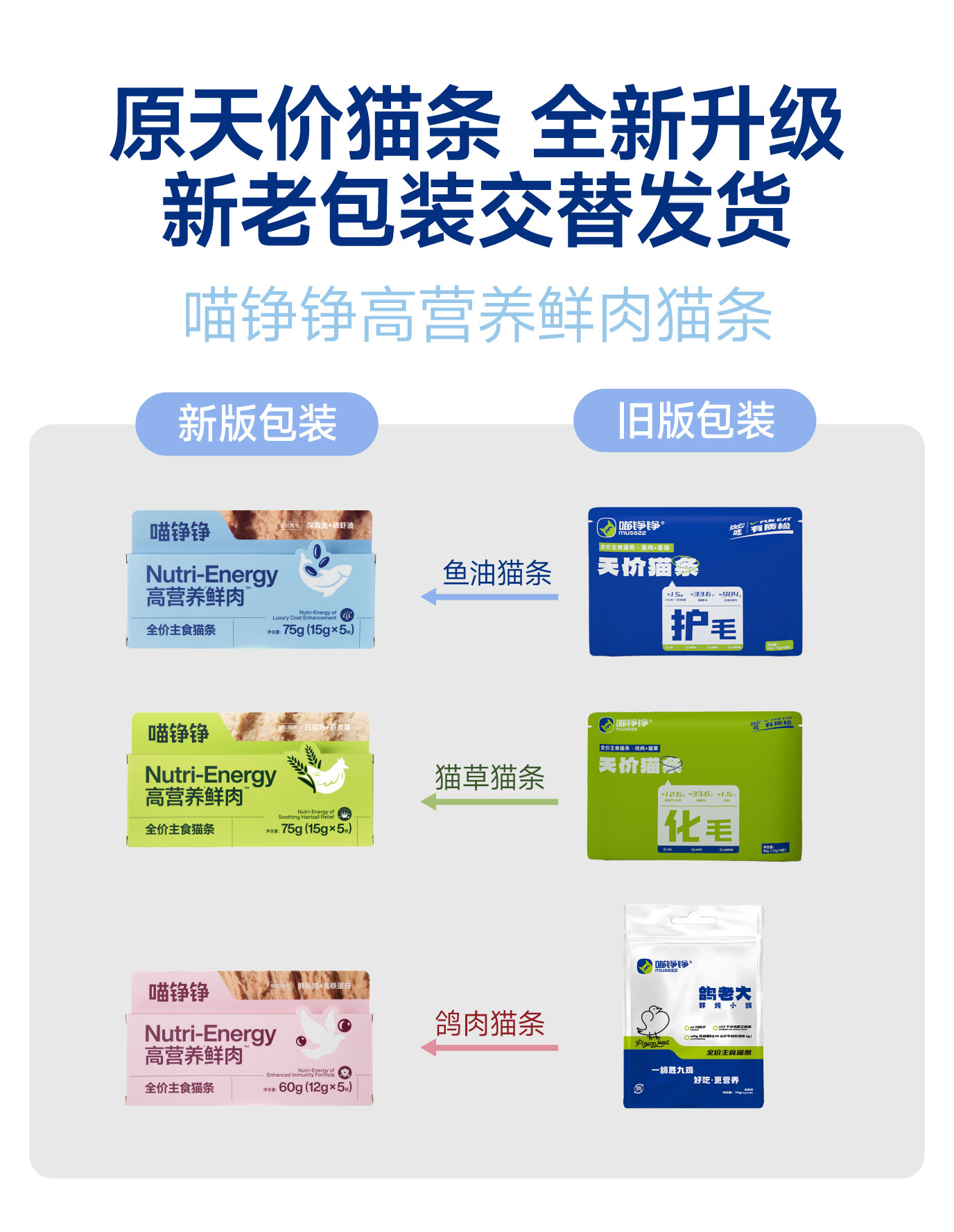 喵铮铮高营养鲜肉全价猫条鸽肉鱼肉鸡肉营养湿粮
